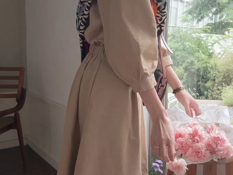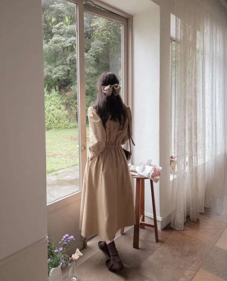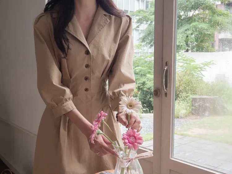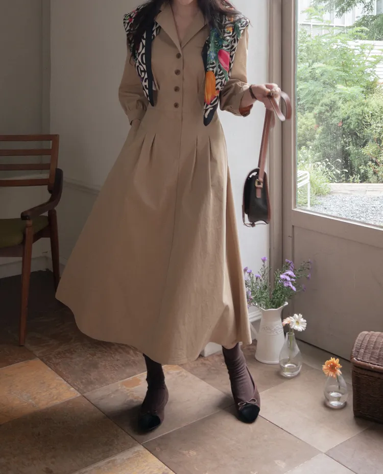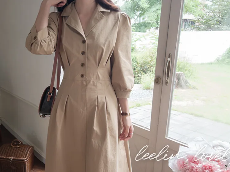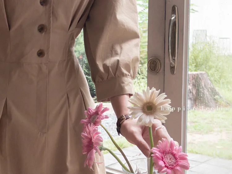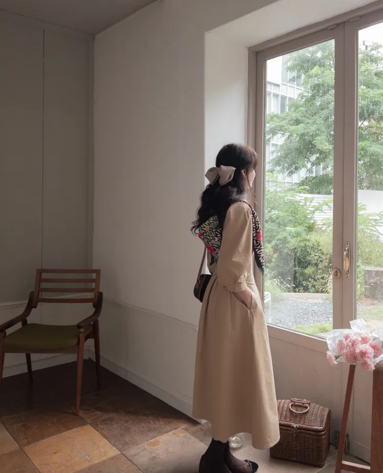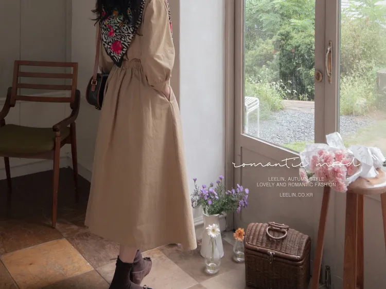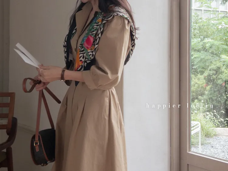 【秋季必備單品!風衣裙,優雅女人味♥】 [腰部針摺線條和背部飾帶細節讓你舒適又漂亮! ] [傘擺廓形修飾的體型]