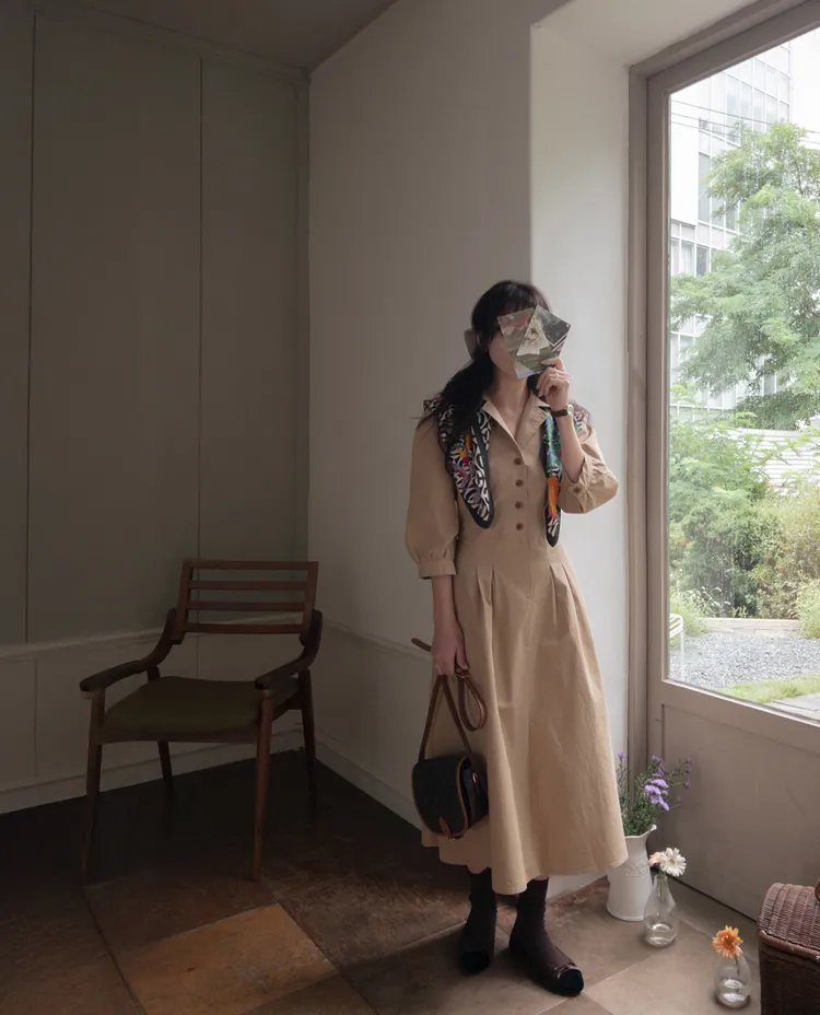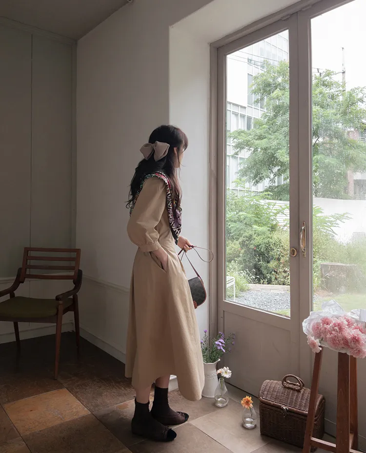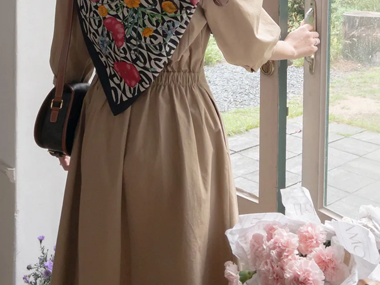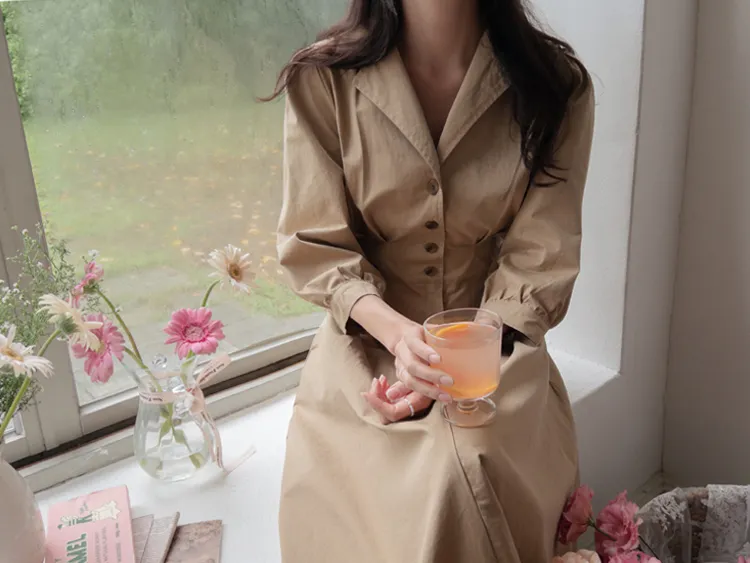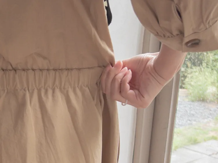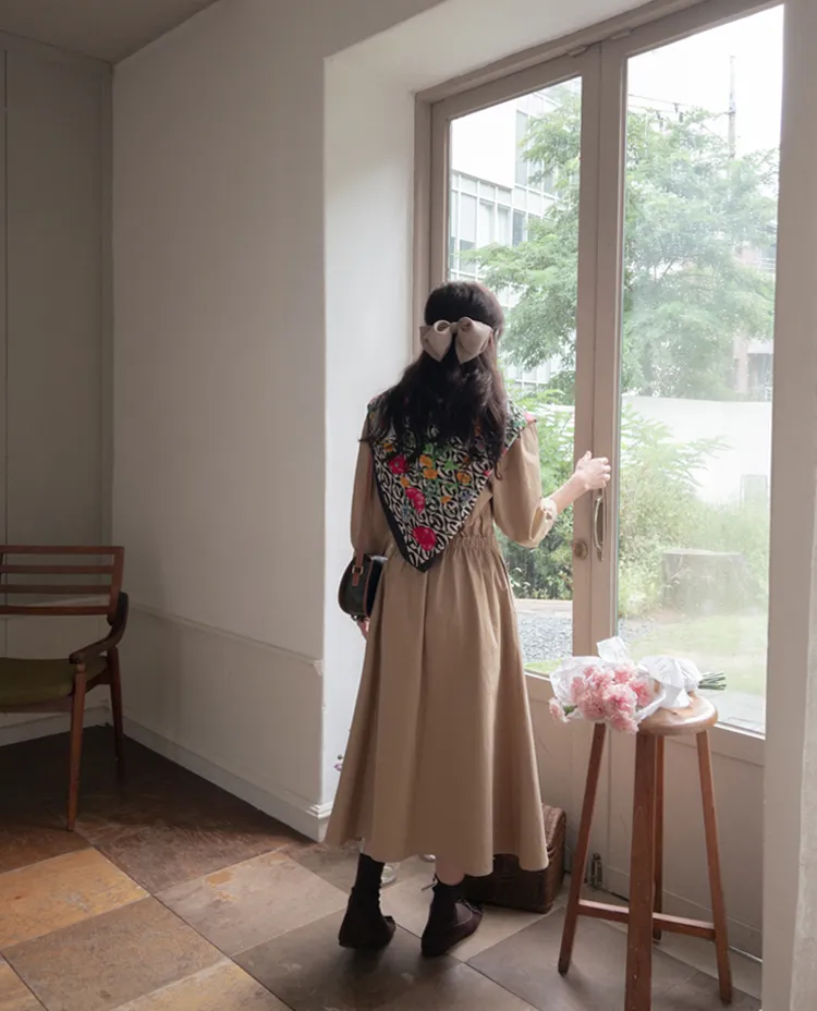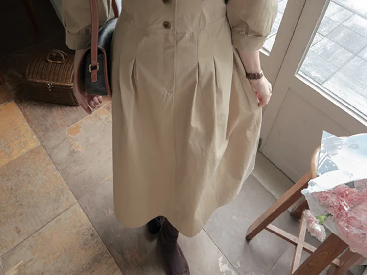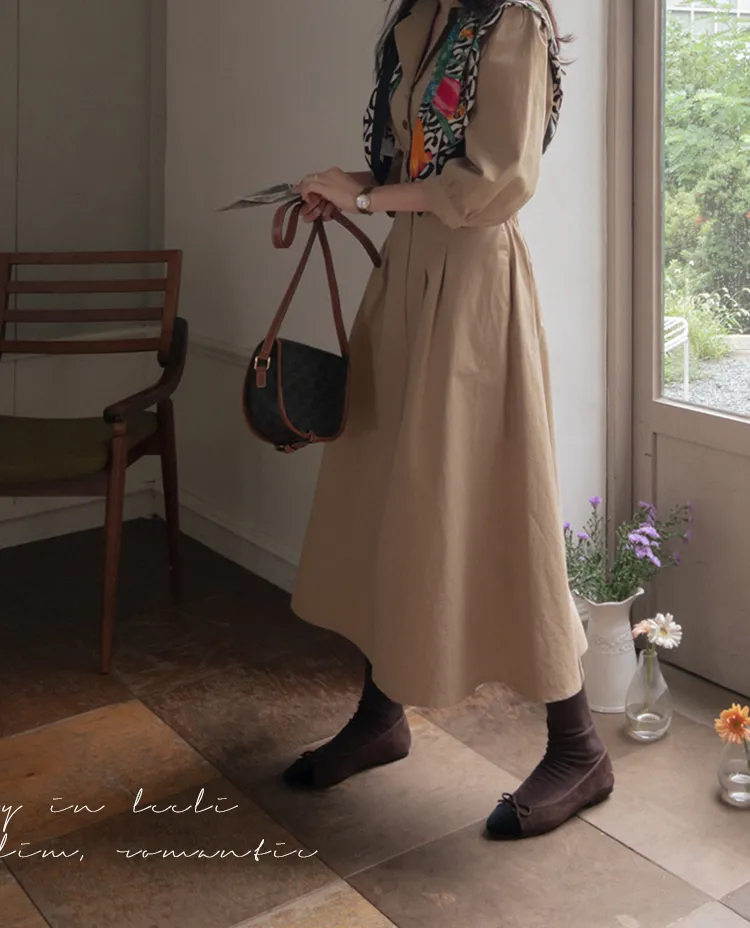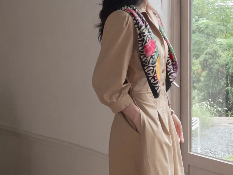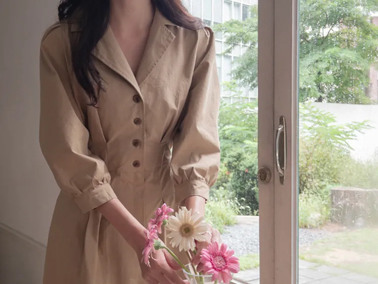 【秋季必備單品!風衣裙,優雅女人味♥】 [腰部針摺線條和背部飾帶細節讓你舒適又漂亮! ] [傘擺廓形修飾的體型]