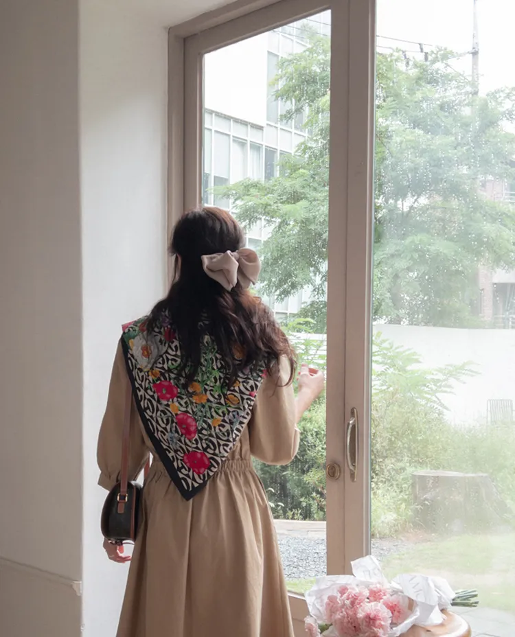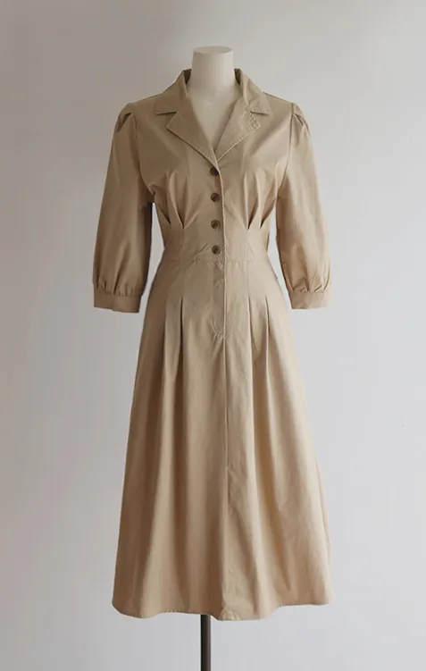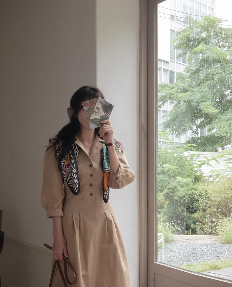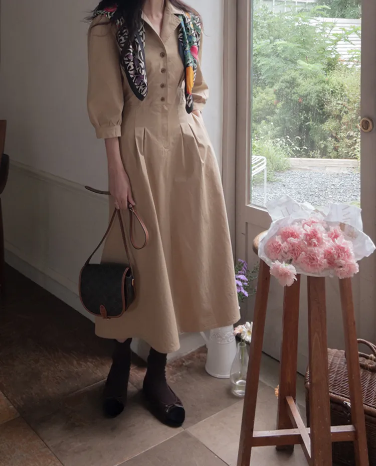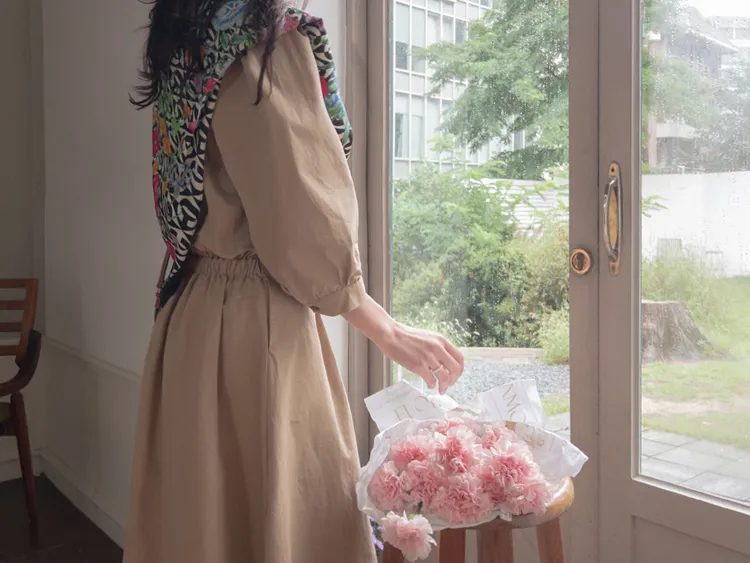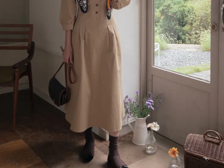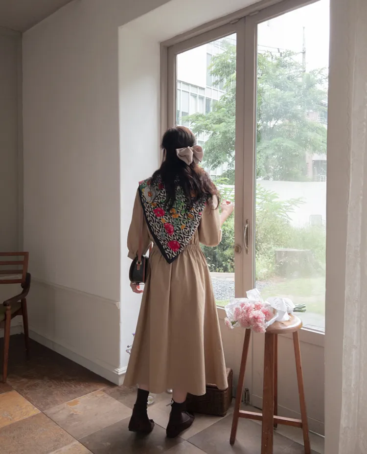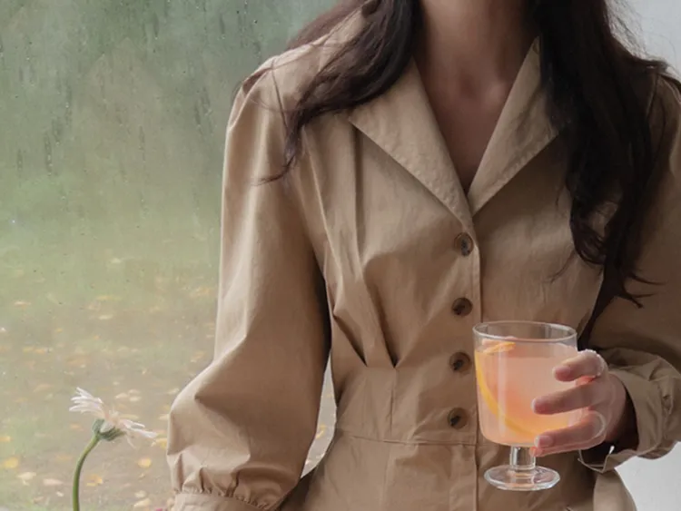 【秋季必備單品!風衣裙,優雅女人味♥】 [腰部針摺線條和背部飾帶細節讓你舒適又漂亮! ] [傘擺廓形修飾的體型]