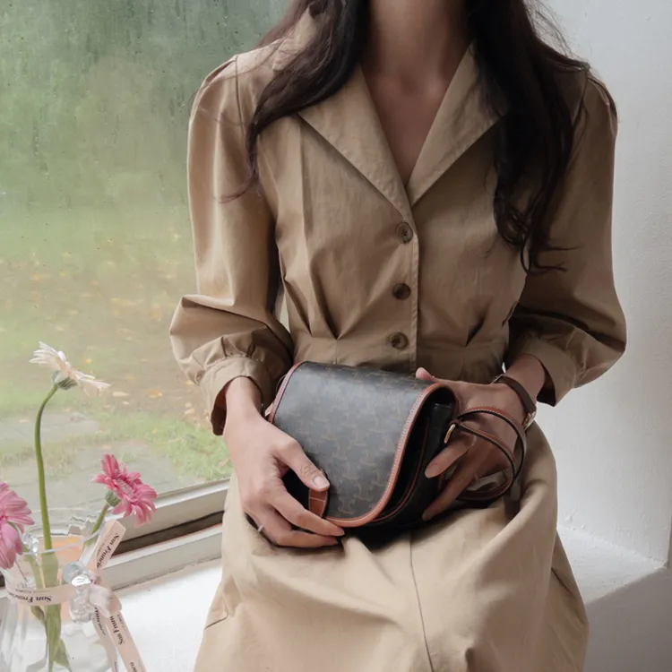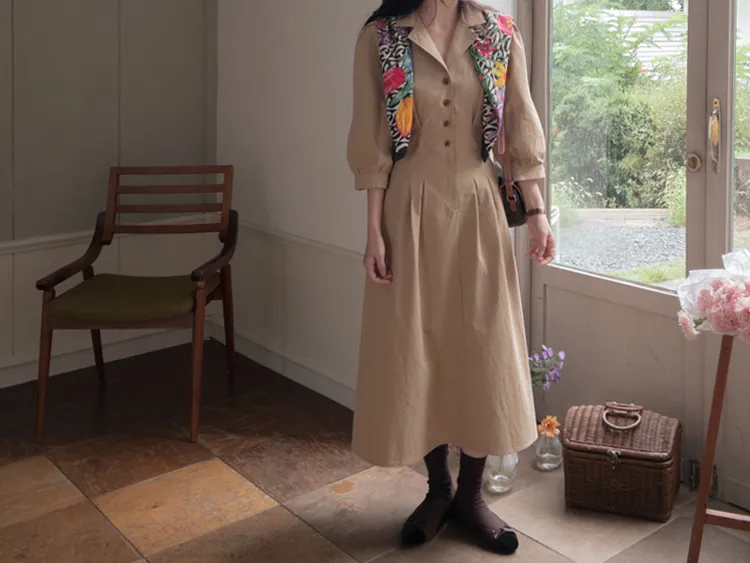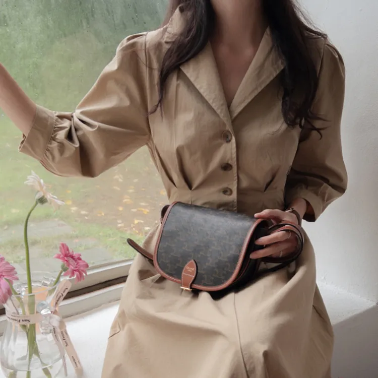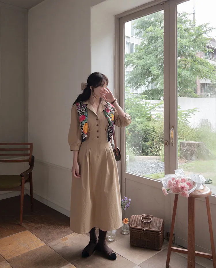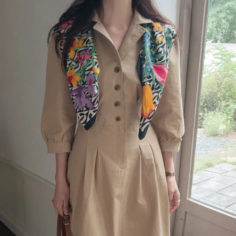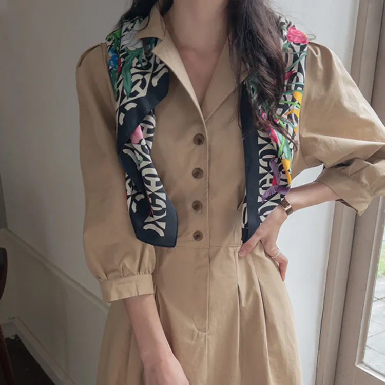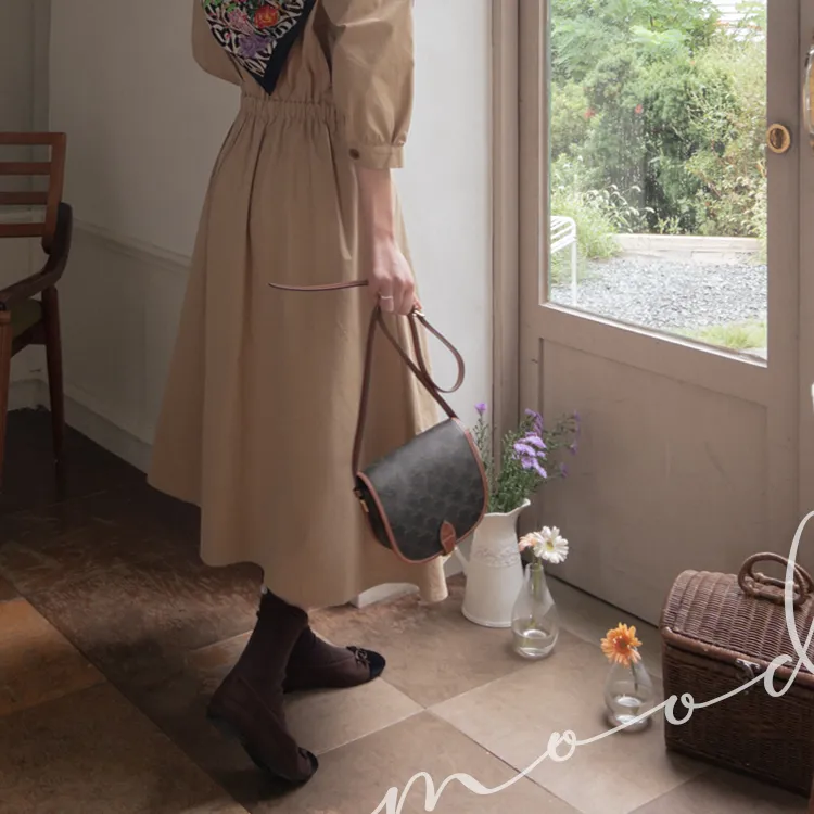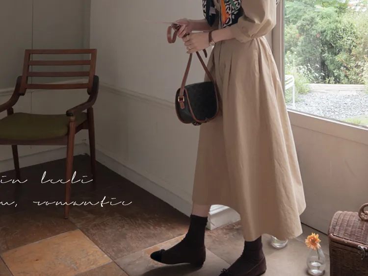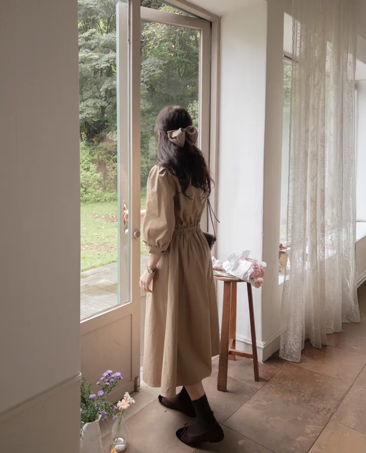 【秋季必備單品!風衣裙,優雅女人味♥】 [腰部針摺線條和背部飾帶細節讓你舒適又漂亮! ] [傘擺廓形修飾的體型]