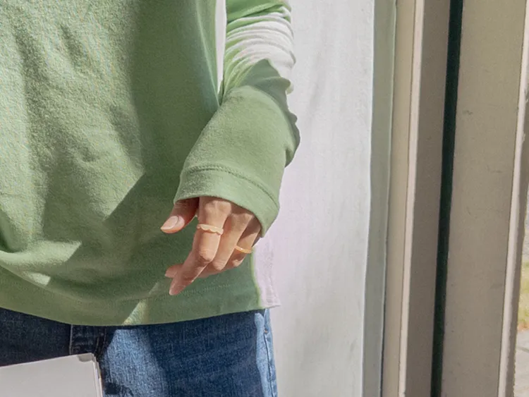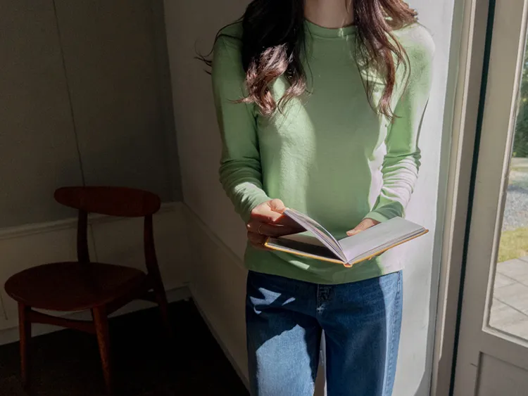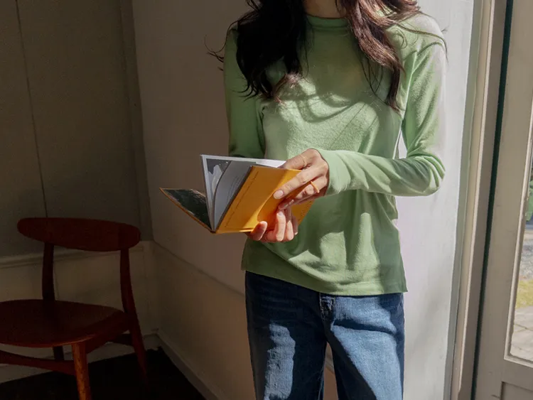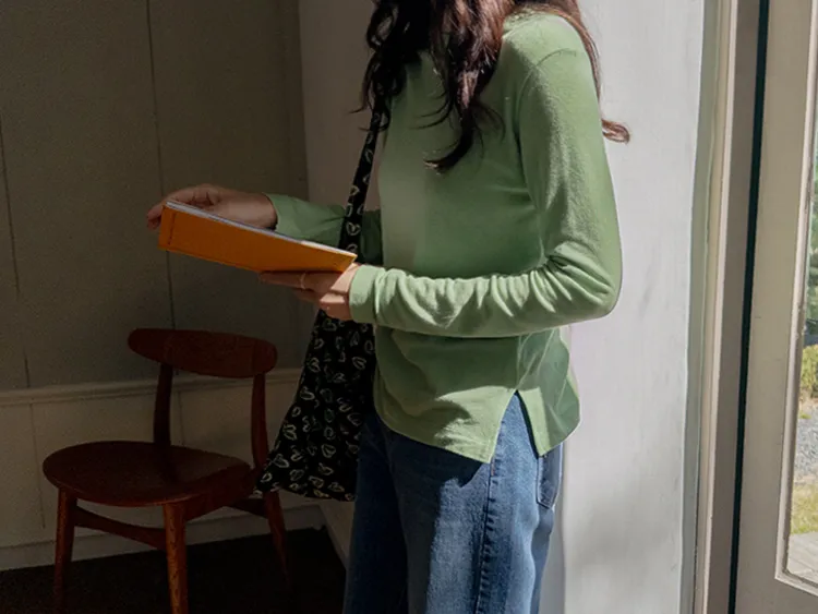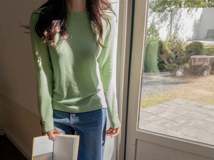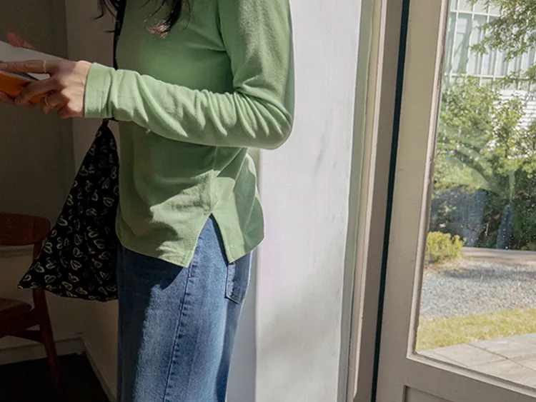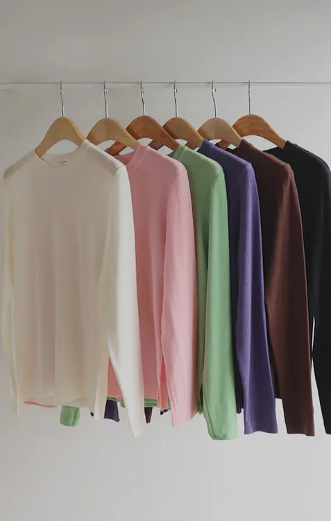 [可以單穿也可以疊穿的彩色T卹♡][羊毛和天絲混紡,柔軟舒適~][側擺開叉細節和伸展的彈性!顏色組合]