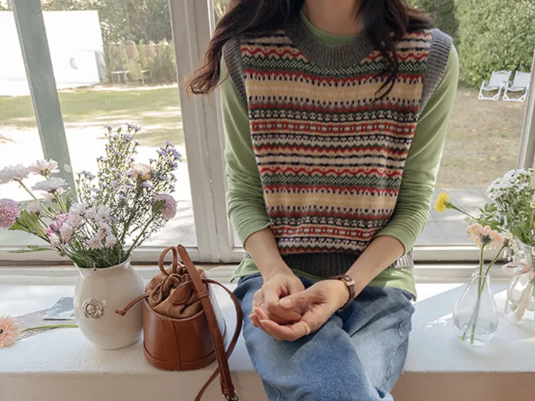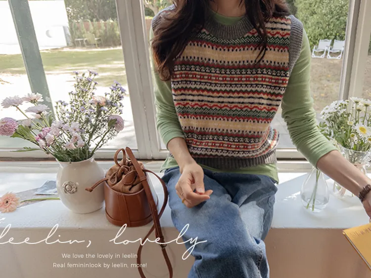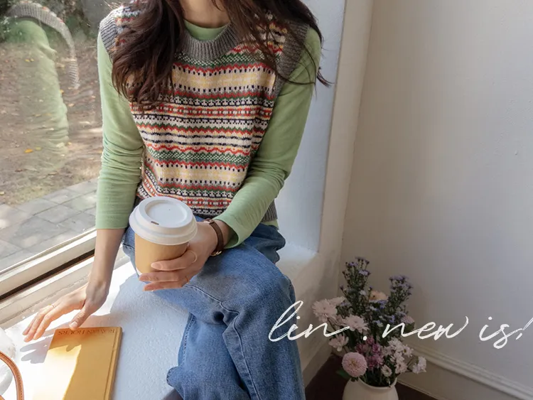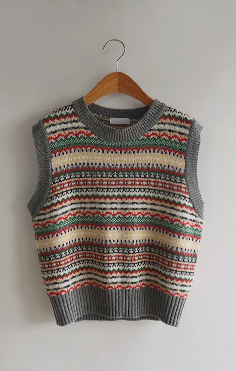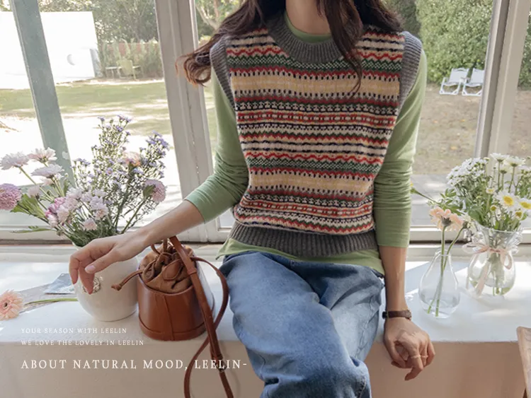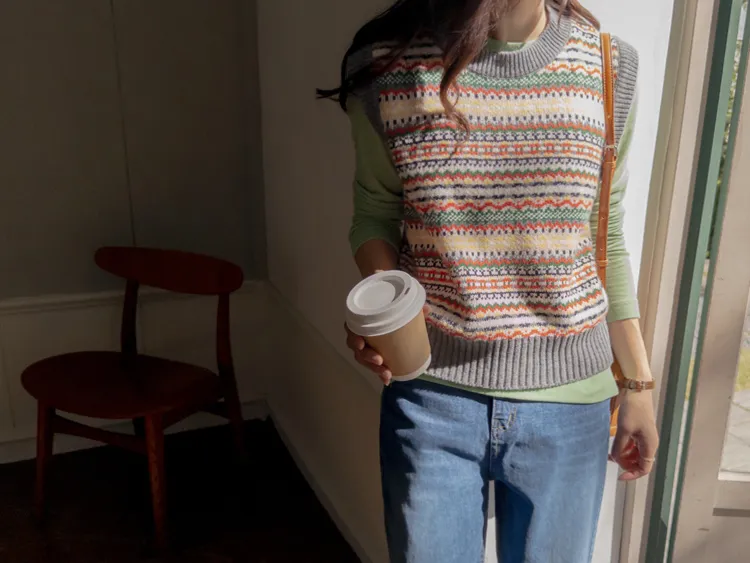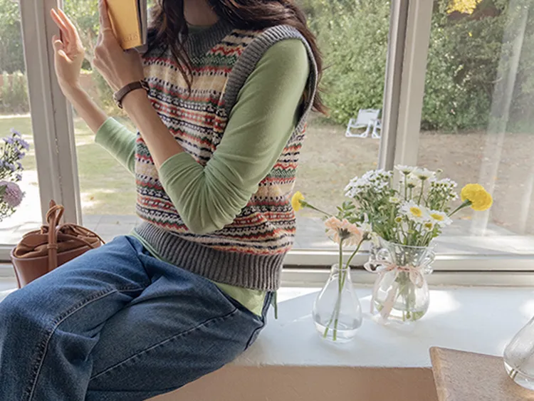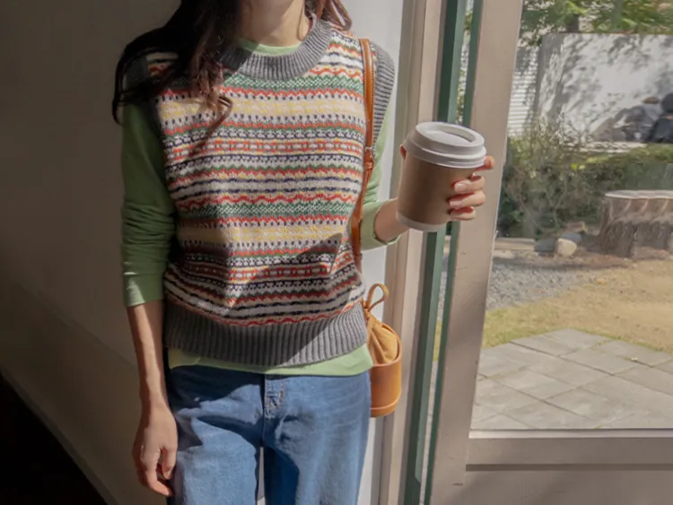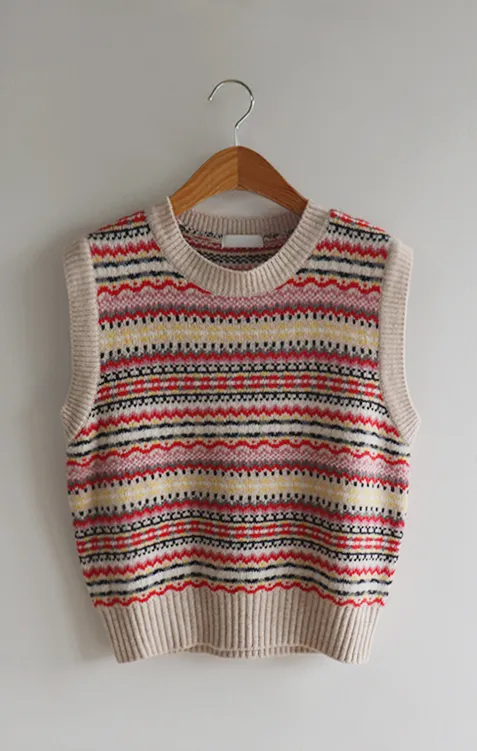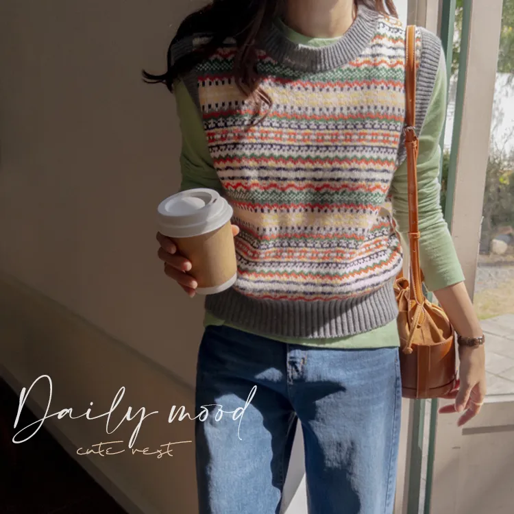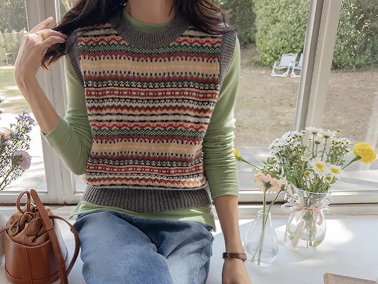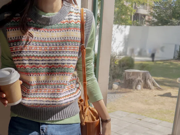 【充滿魅力的彩色緹花圖案背心♡】【含有30%羊毛,四季溫暖~】【圖案細節為造型增添獨特魅力】【搭配基本款T恤和襯衫!只要穿上它,造型就完成了!