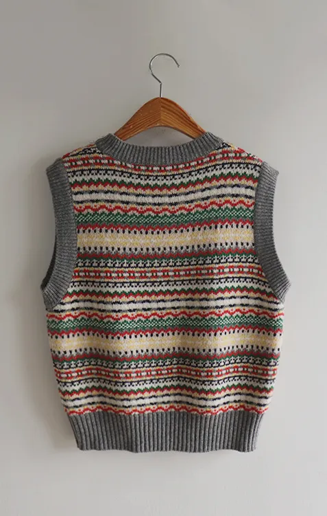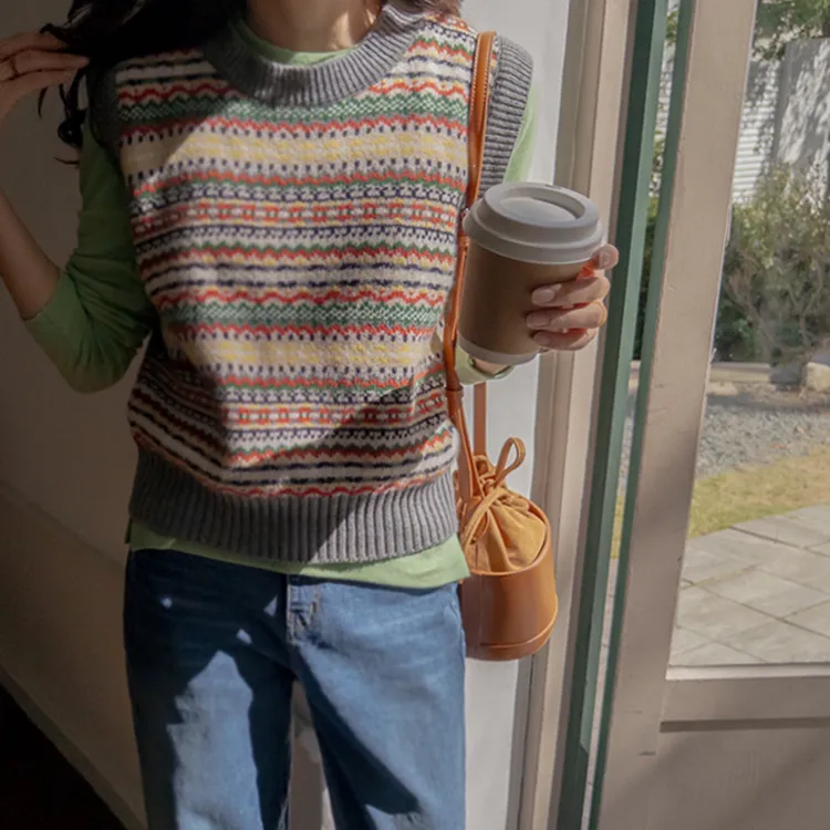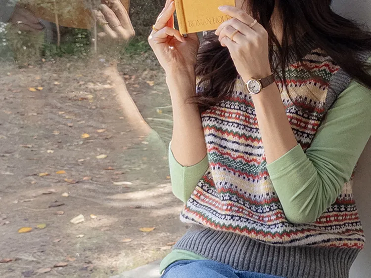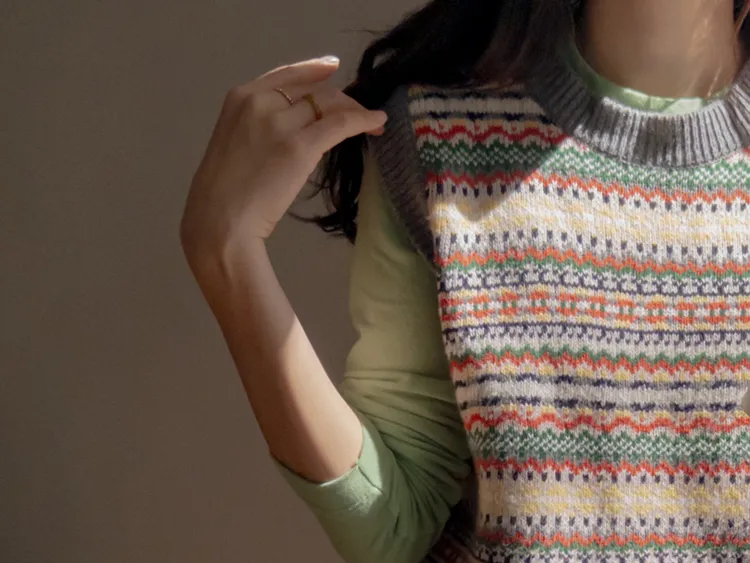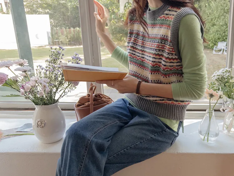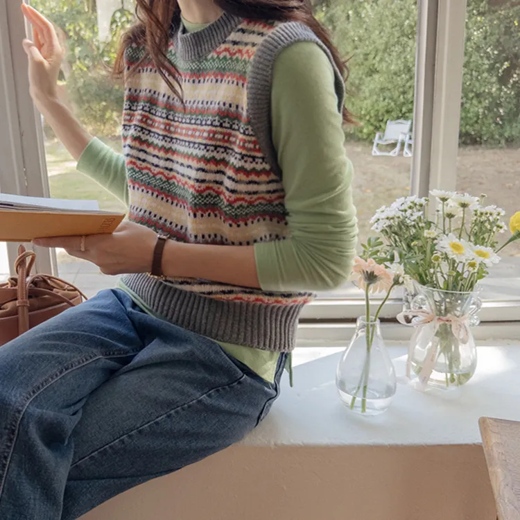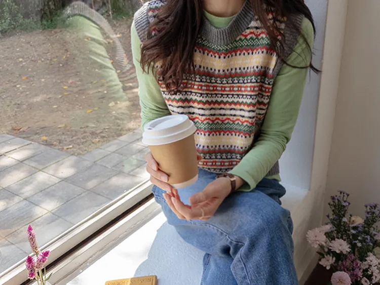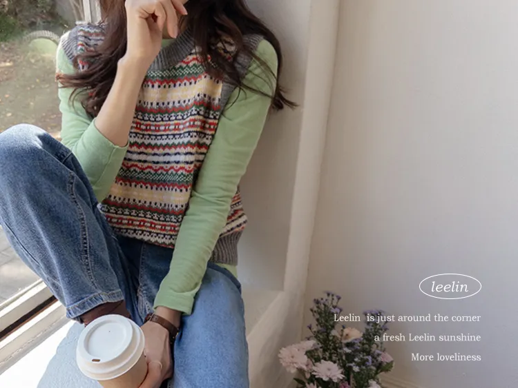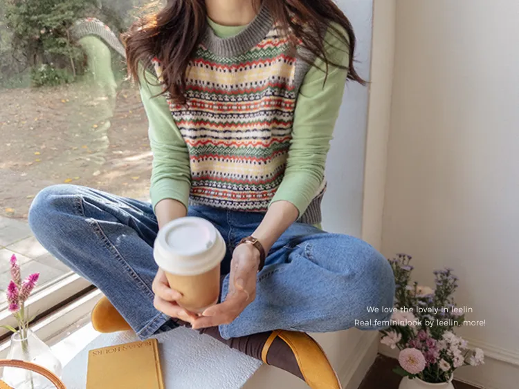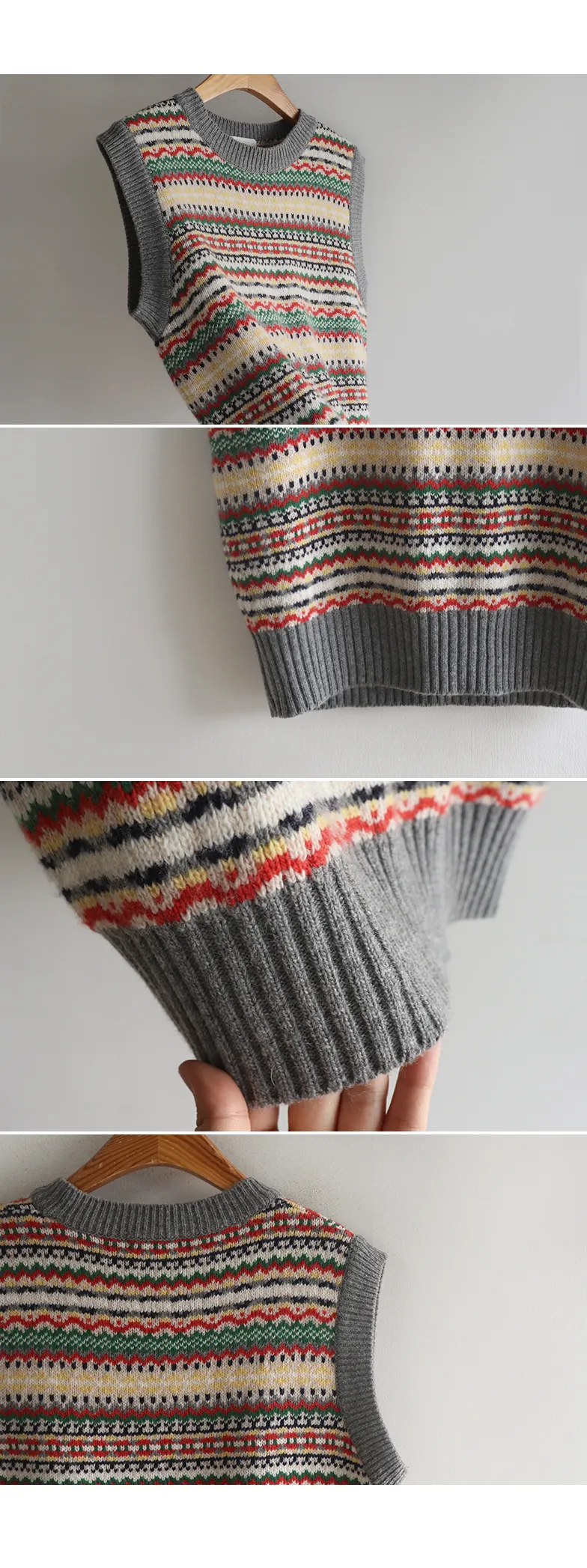 【充滿魅力的彩色緹花圖案背心♡】【含有30%羊毛,四季溫暖~】【圖案細節為造型增添獨特魅力】【搭配基本款T恤和襯衫!只要穿上它,造型就完成了!