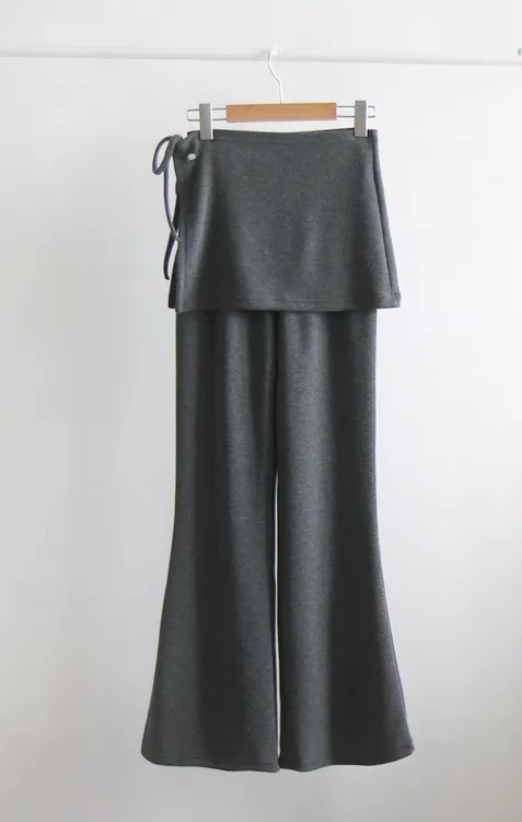 附側綁帶銀釦裝飾裙修飾彈性舒適休閒褲