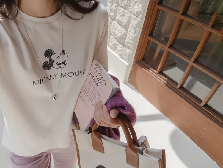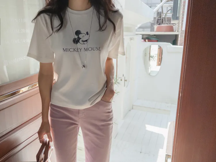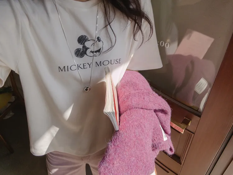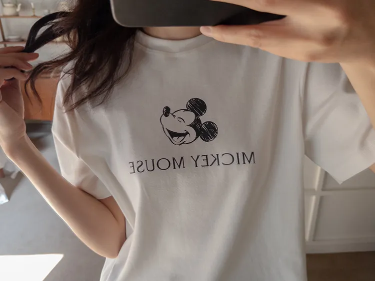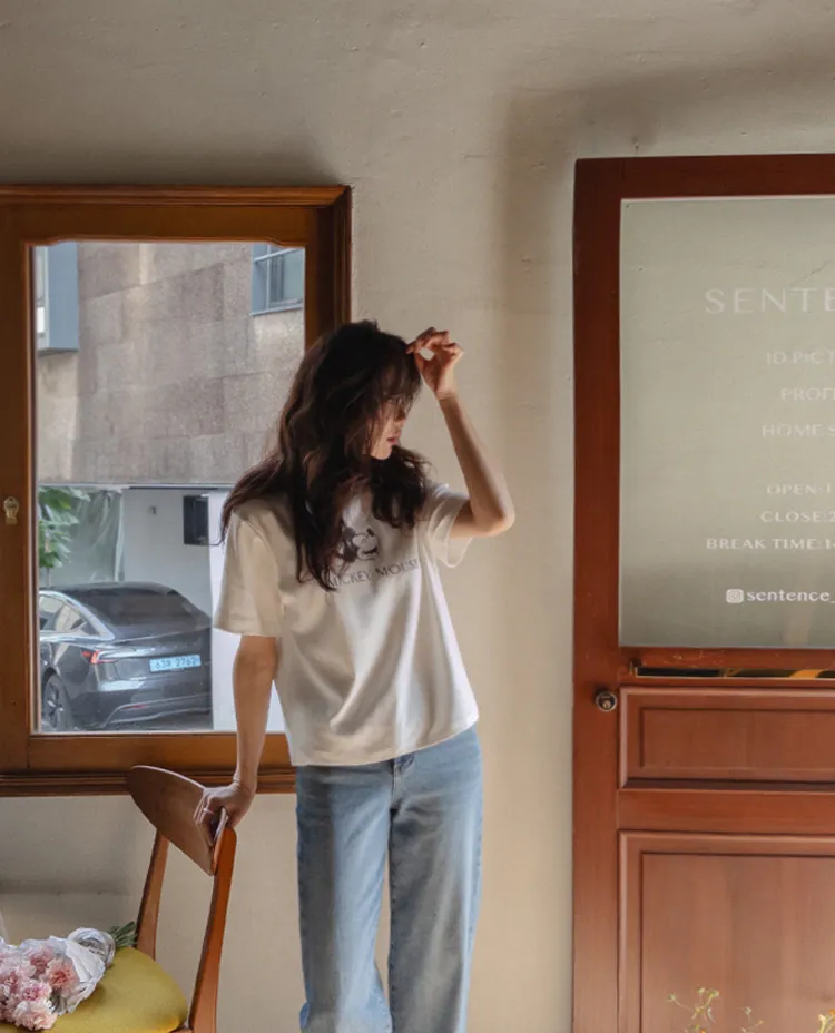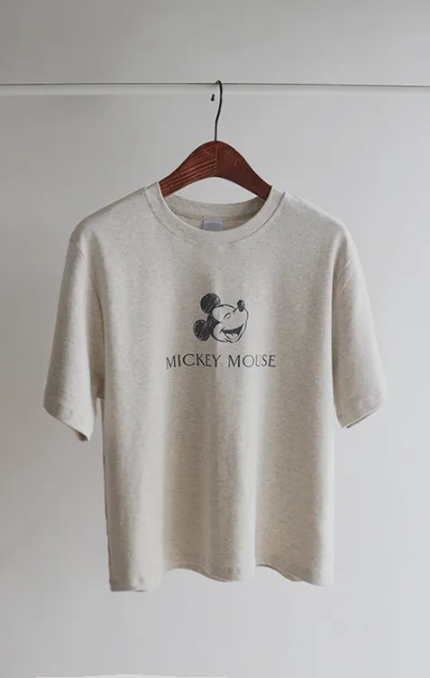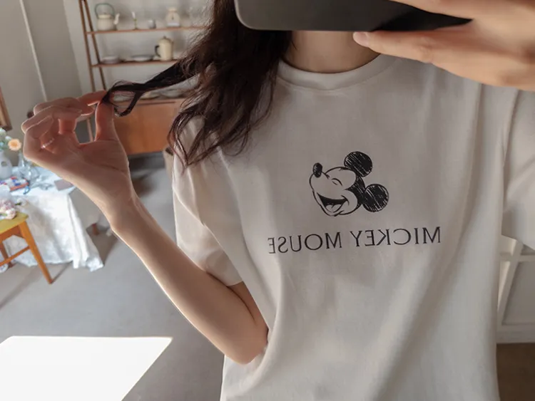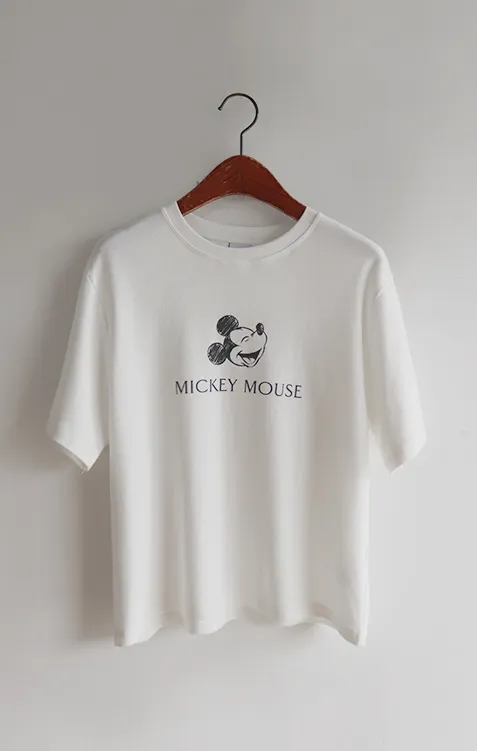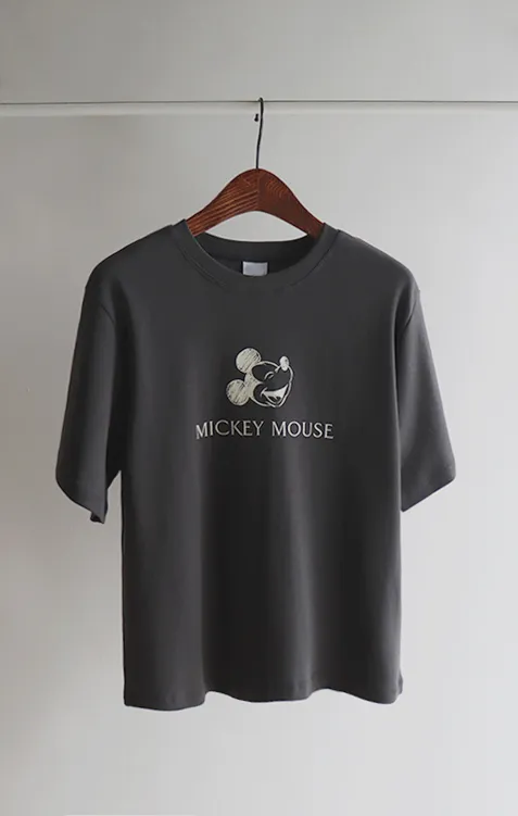 【手繪感米奇印花T卹】【純棉布料,穿著舒適舒服】【強烈推薦,作為基本款T卹,看起來簡單!