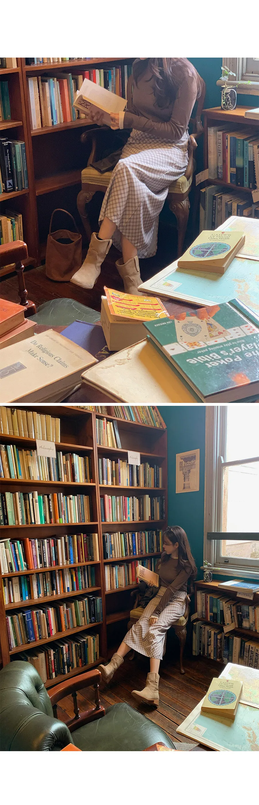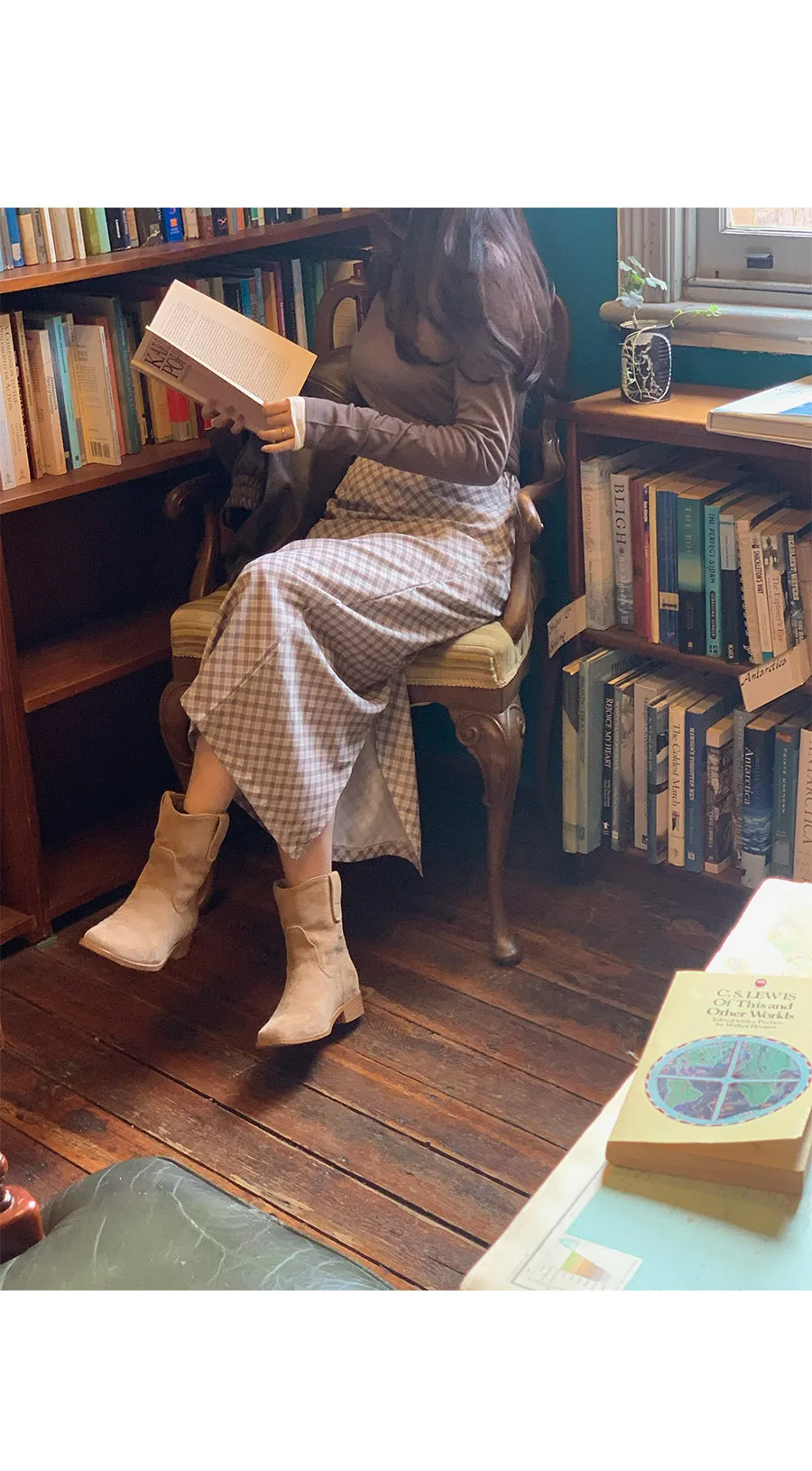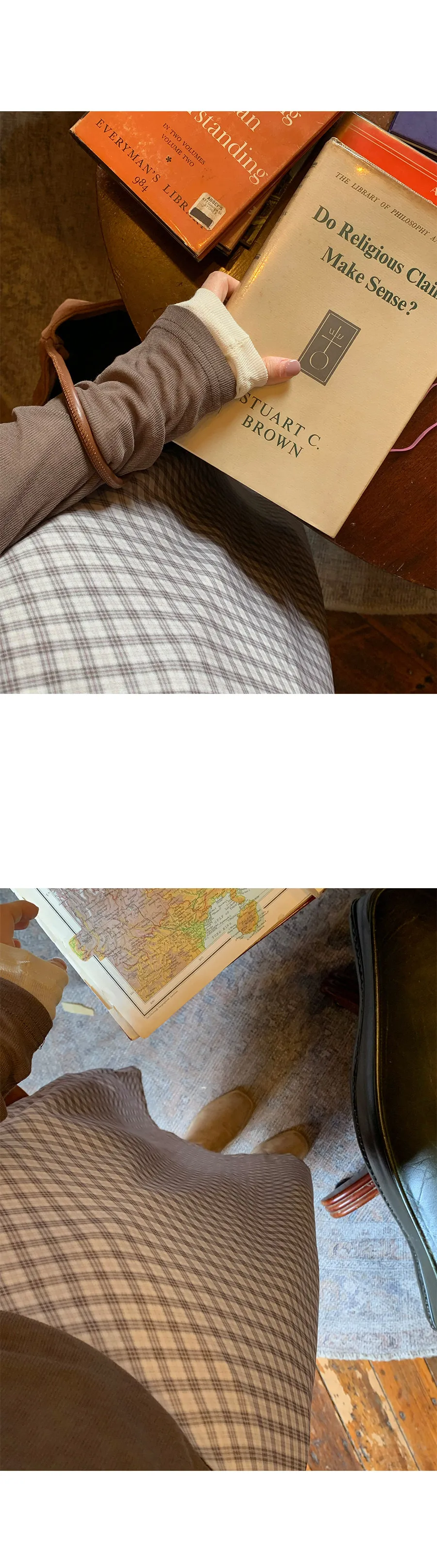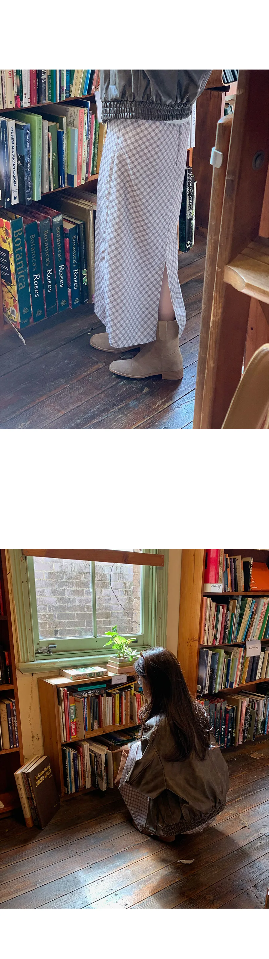 復古時尚H剪裁後開衩格紋中長裙