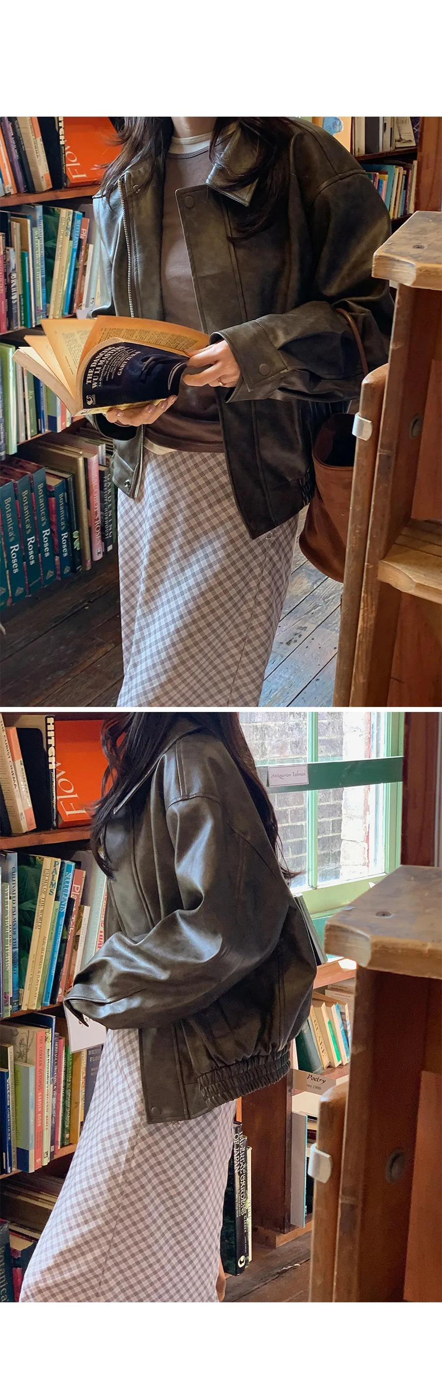 別緻時尚下擺鑲邊貼合皮革外套