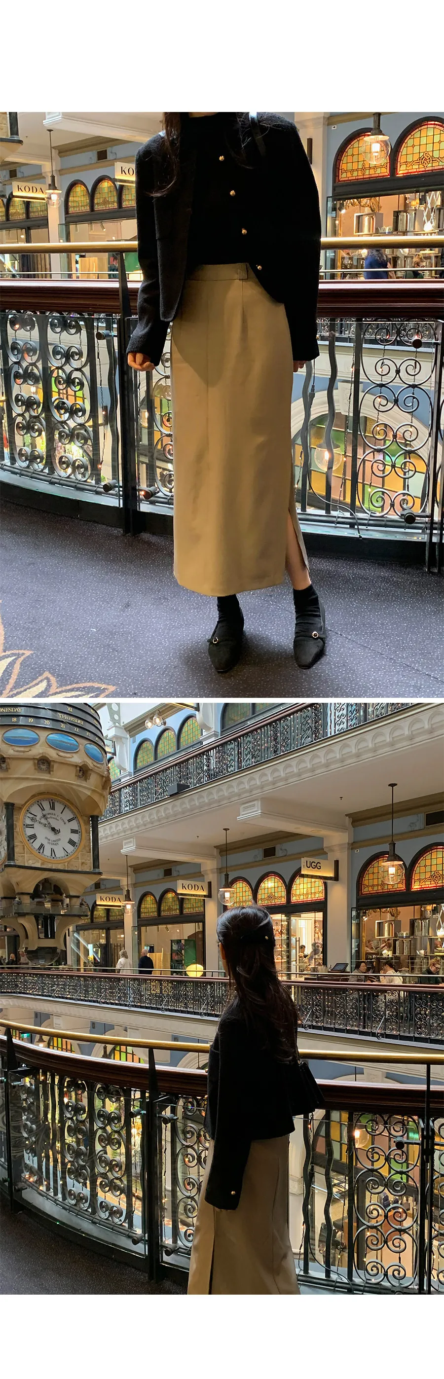 現代魅力腰線雙帶孔設計側開衩H剪裁中長裙