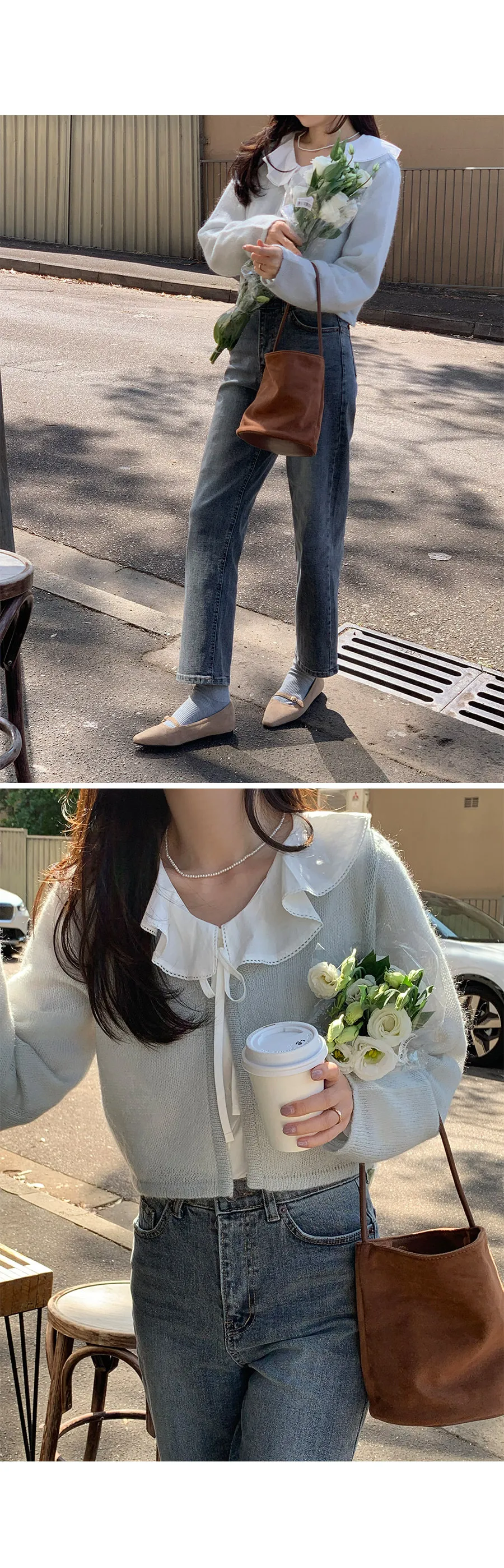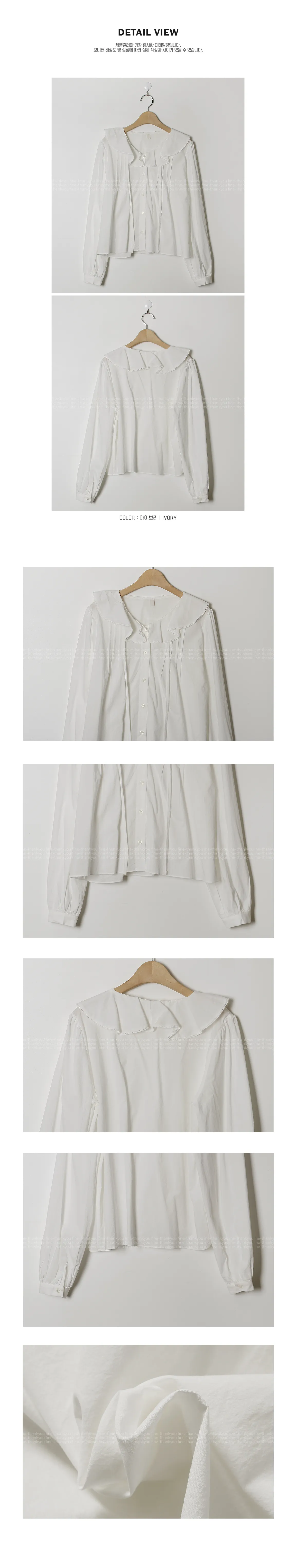 浪漫情調摺邊領口針摺綁帶設計排扣上衣