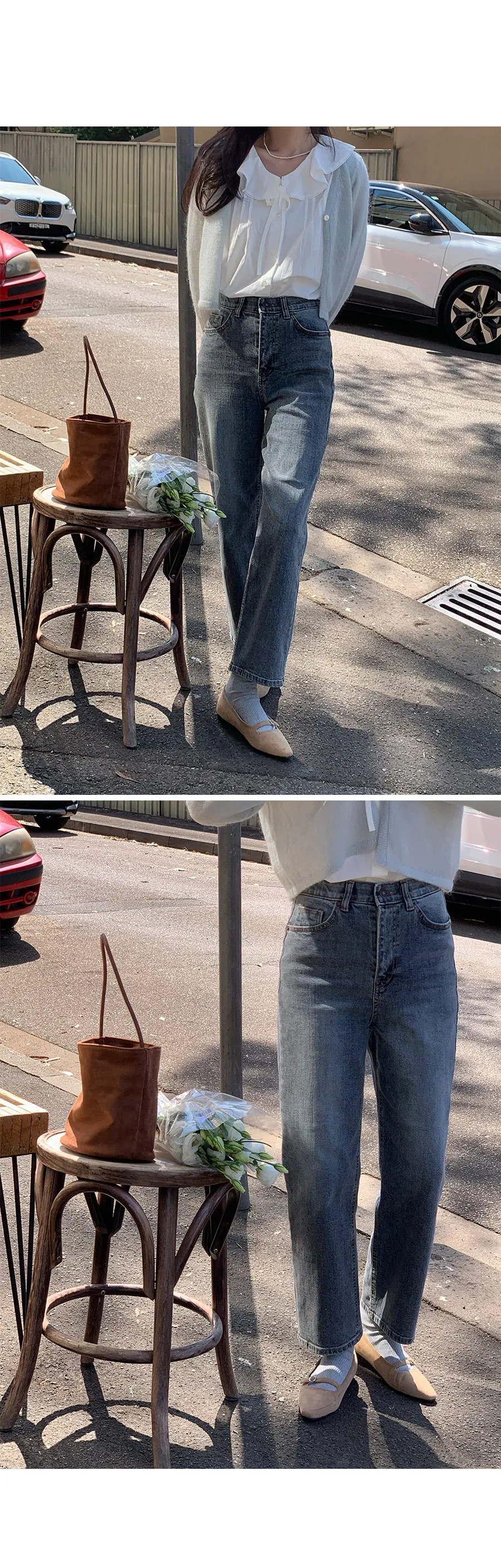 獨特色感水洗腰部隱藏鬆緊牛仔褲