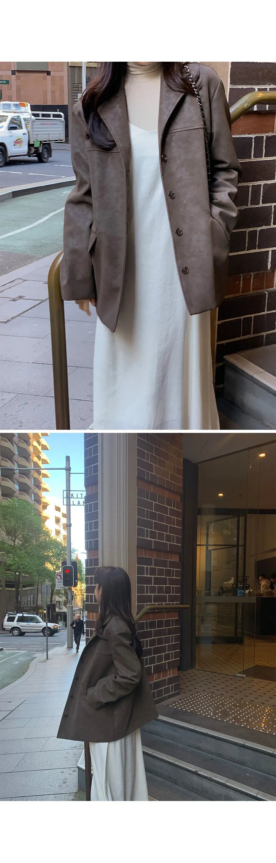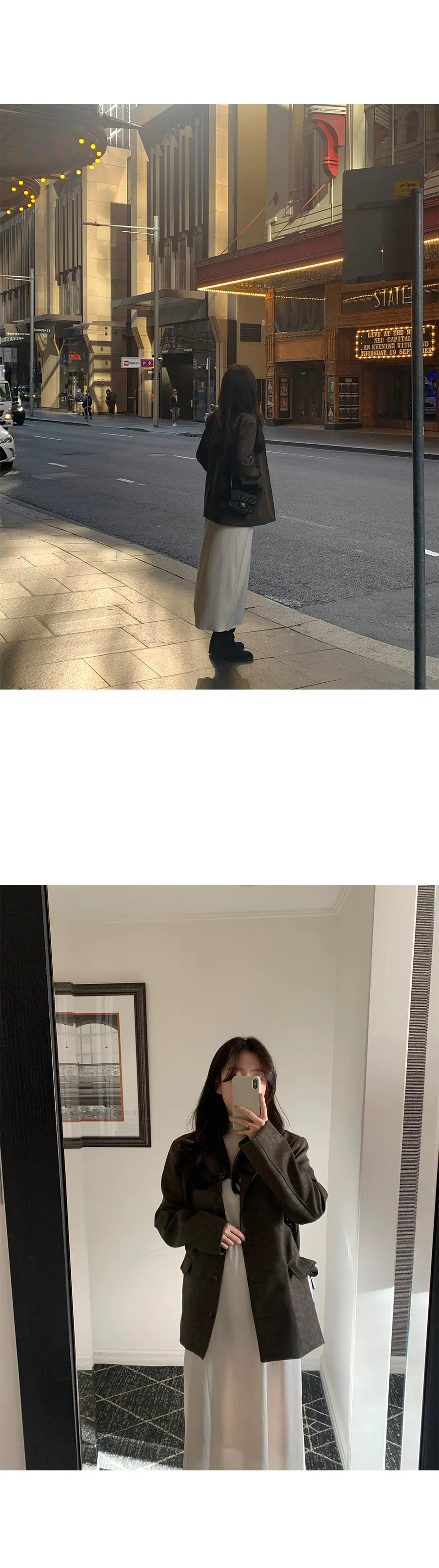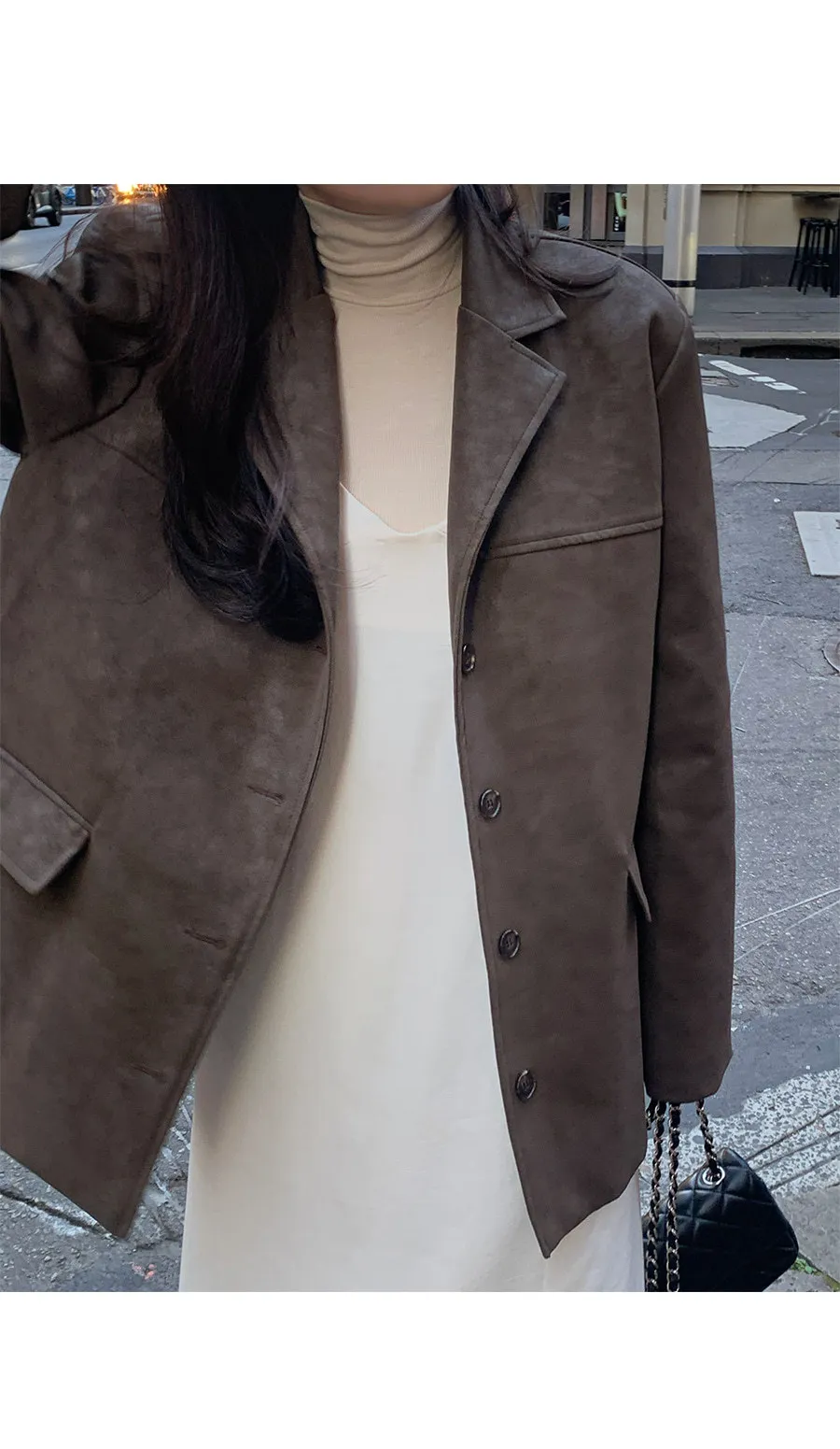 時尚情調遮臀長度柔軟麂皮般皮革外套