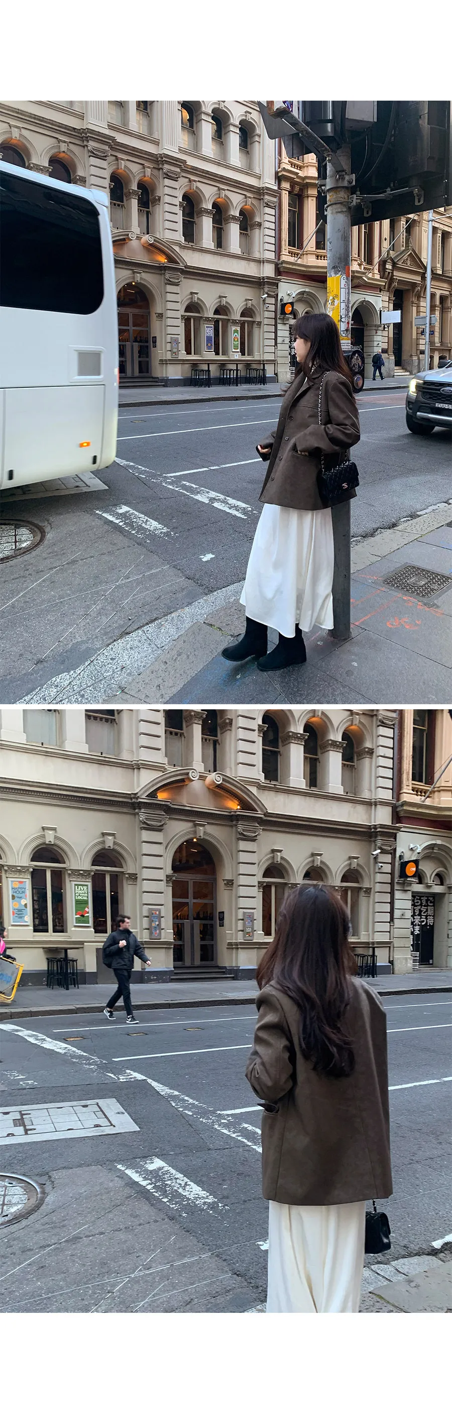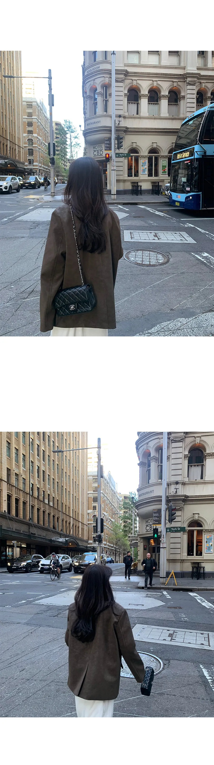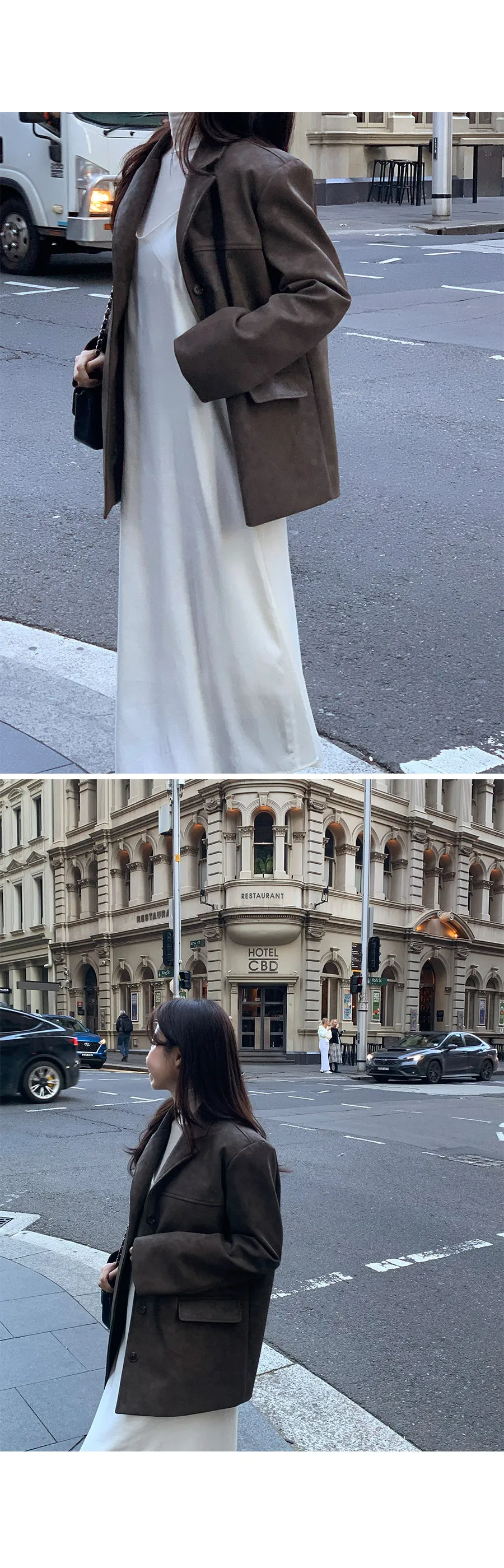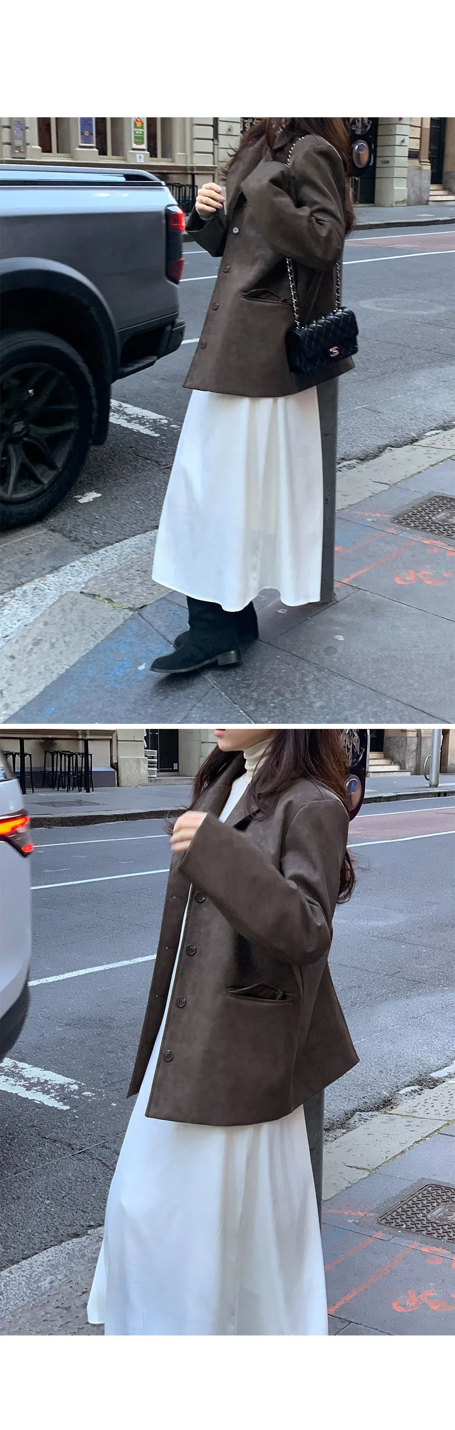 時尚情調遮臀長度柔軟麂皮般皮革外套