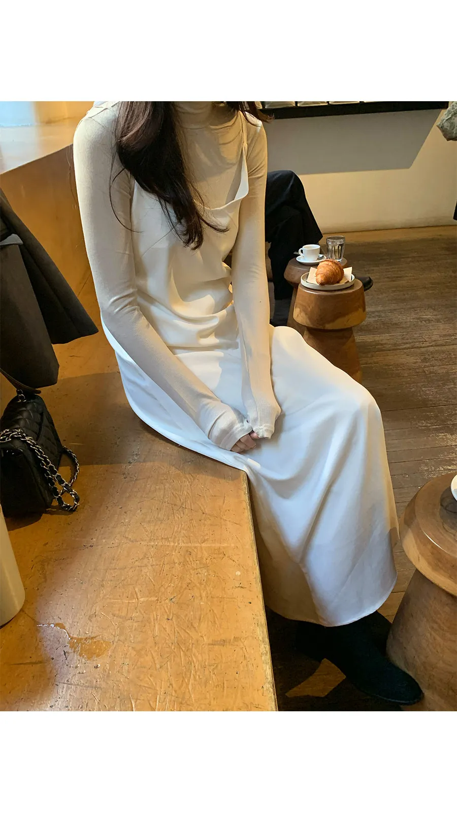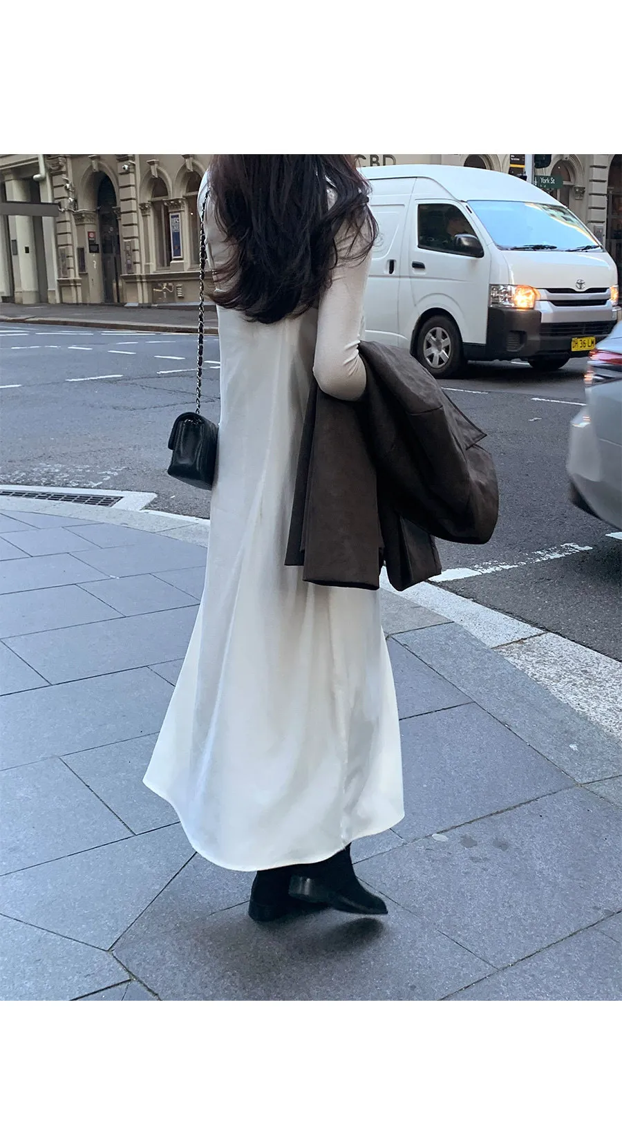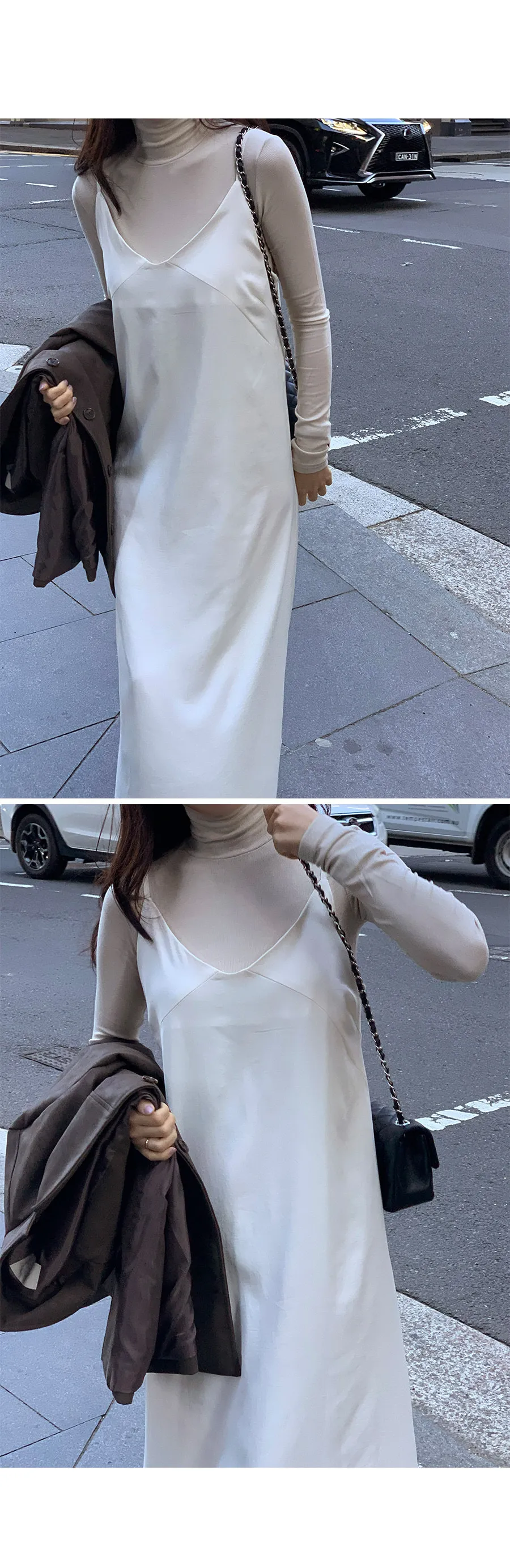 柔美胸線縫線疊穿可調肩帶緞面連身裙