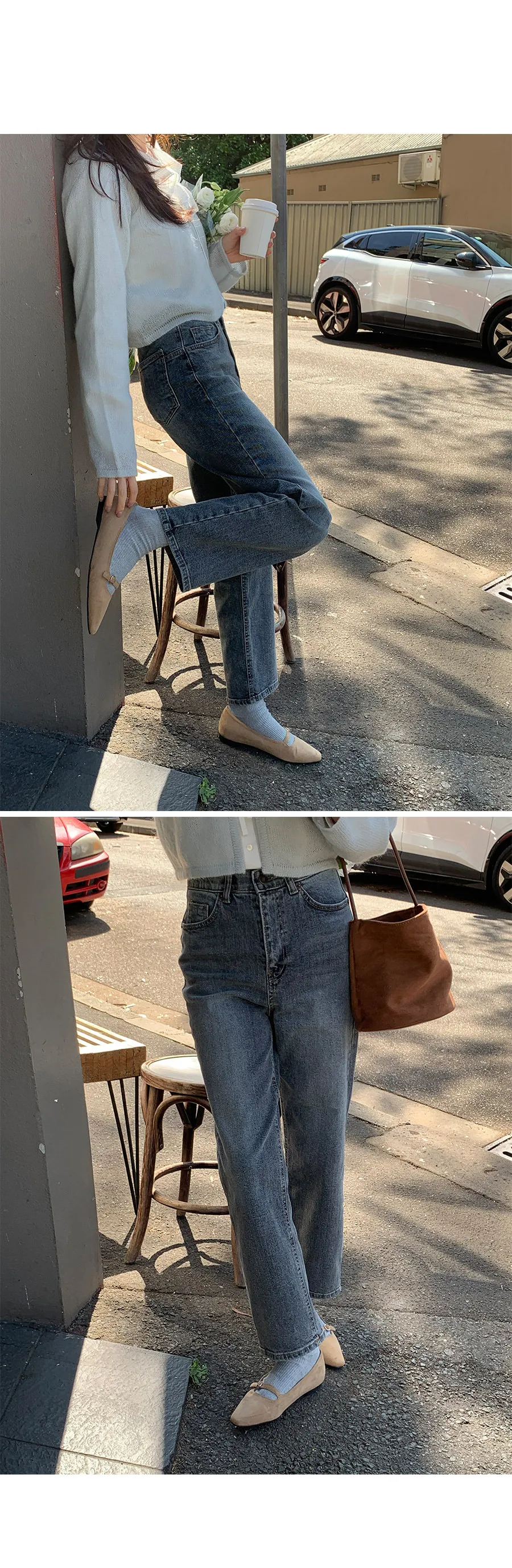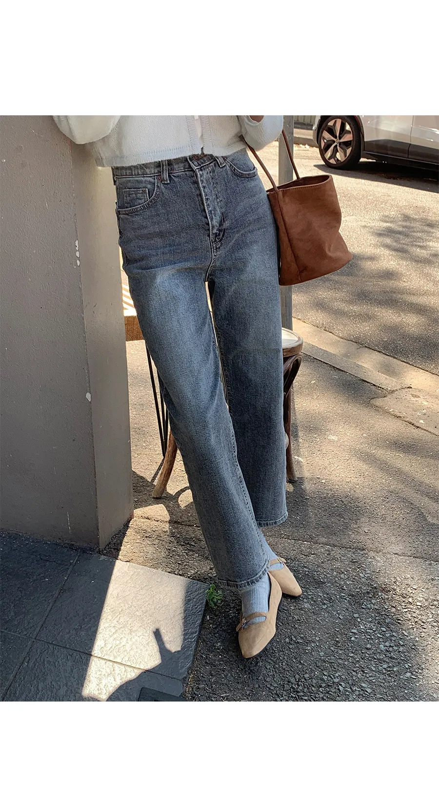 獨特色感水洗腰部隱藏鬆緊牛仔褲