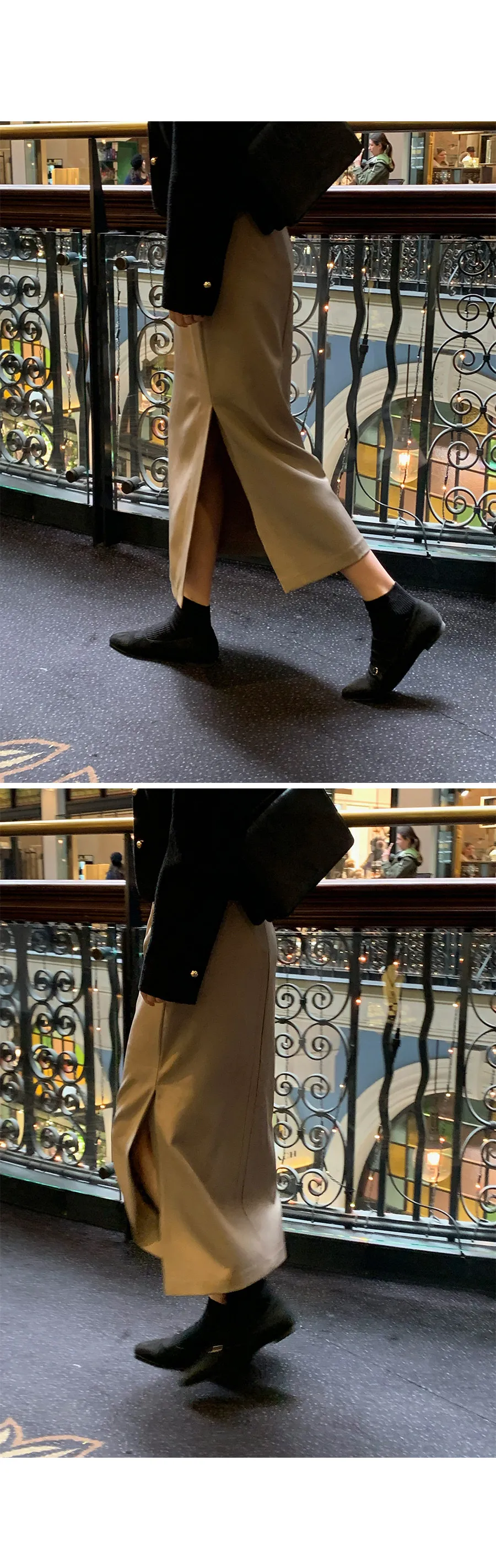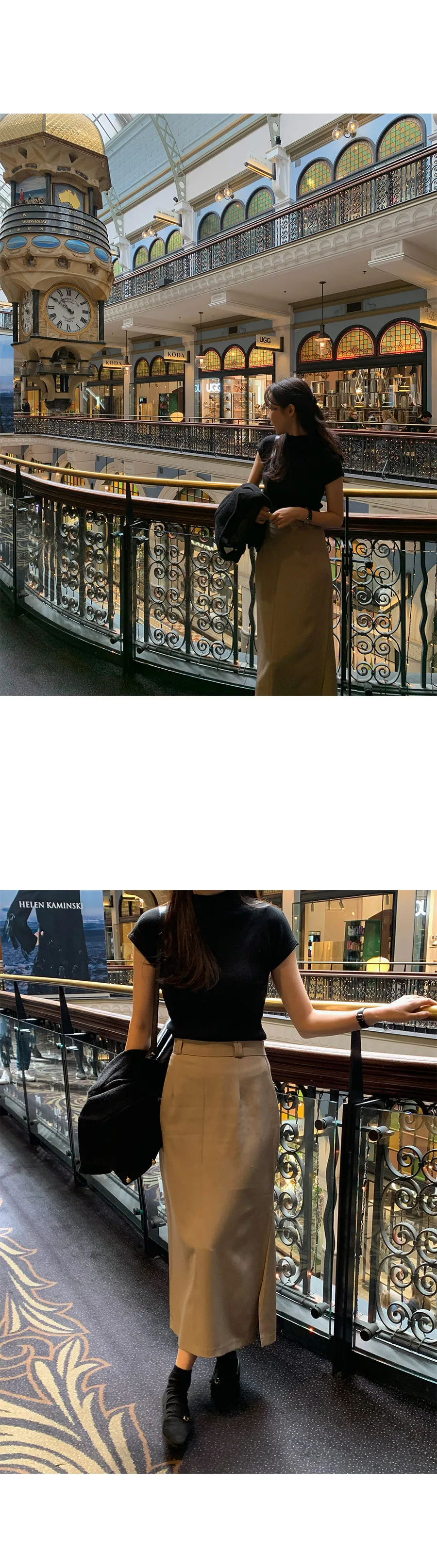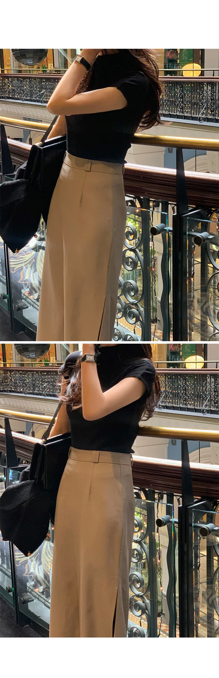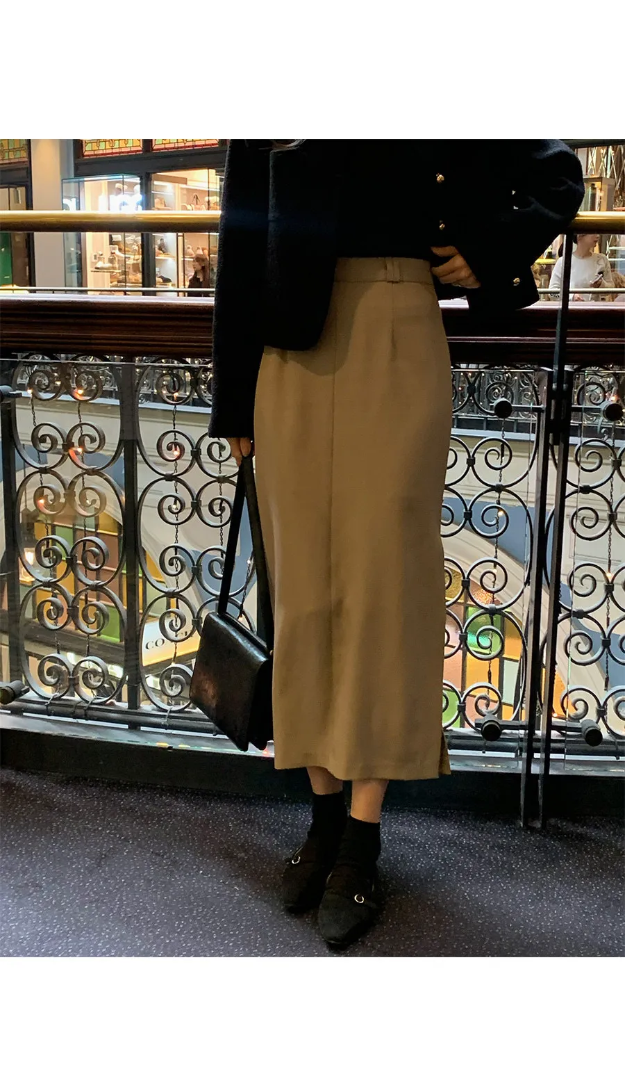 現代魅力腰線雙帶孔設計側開衩H剪裁中長裙