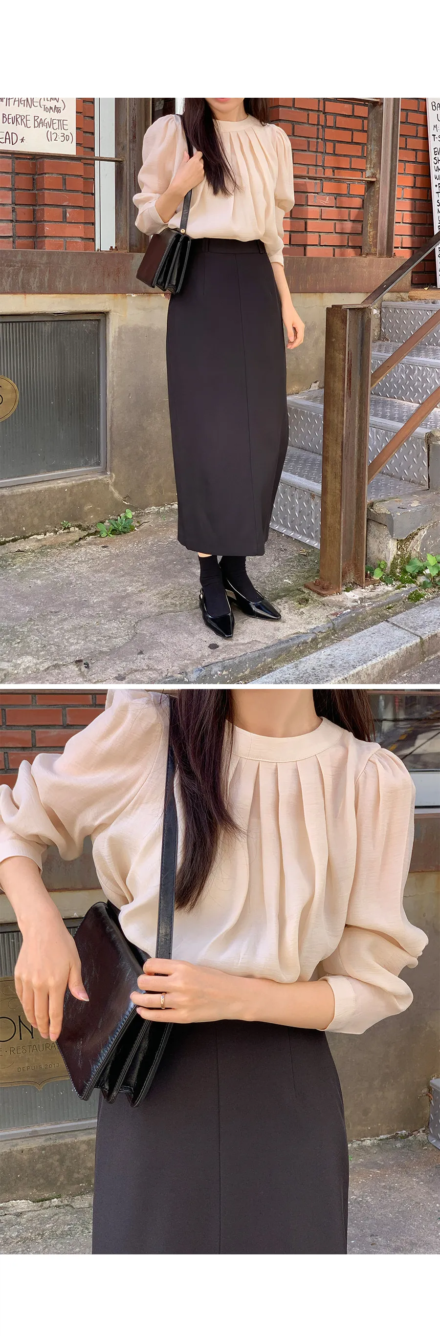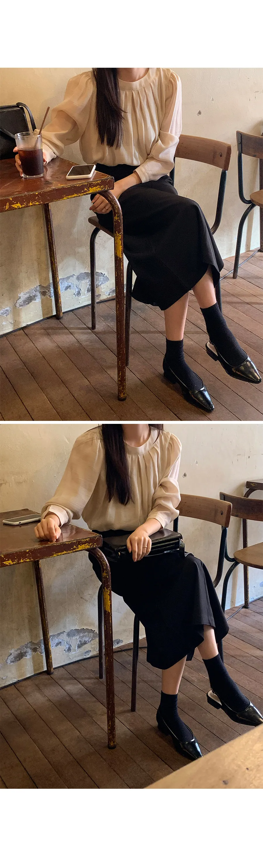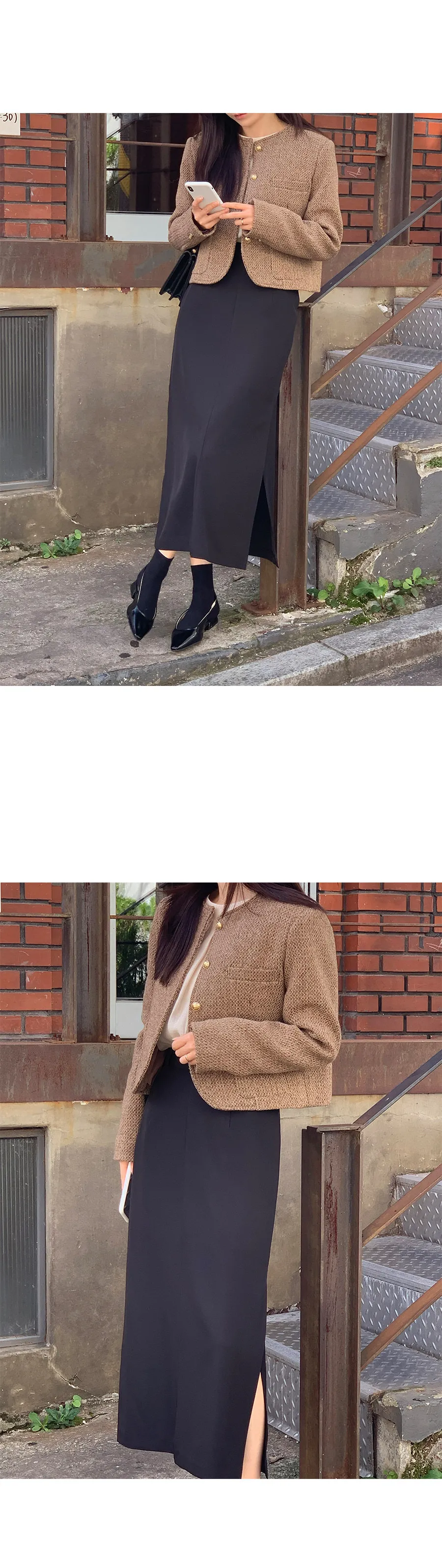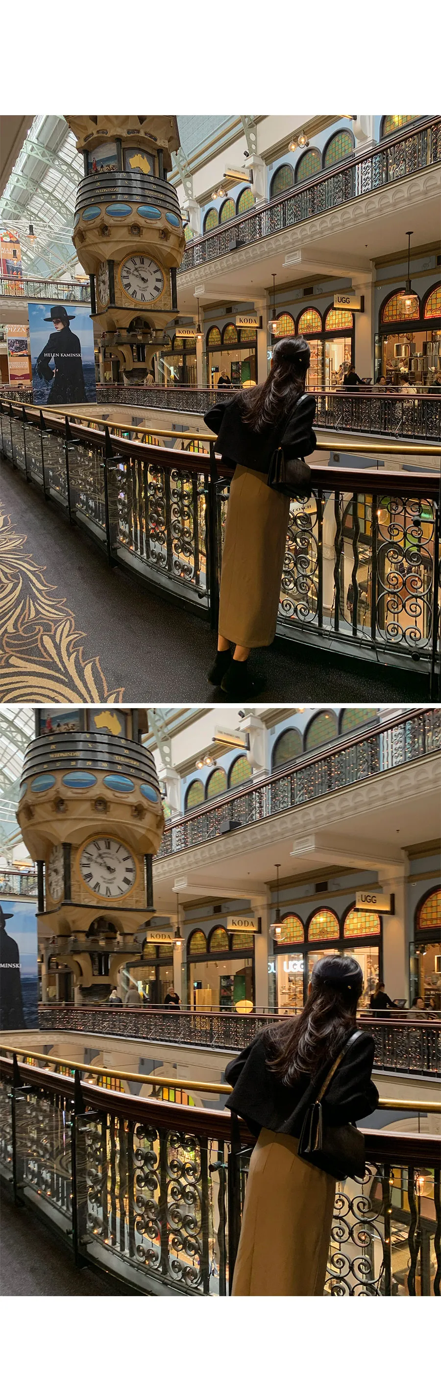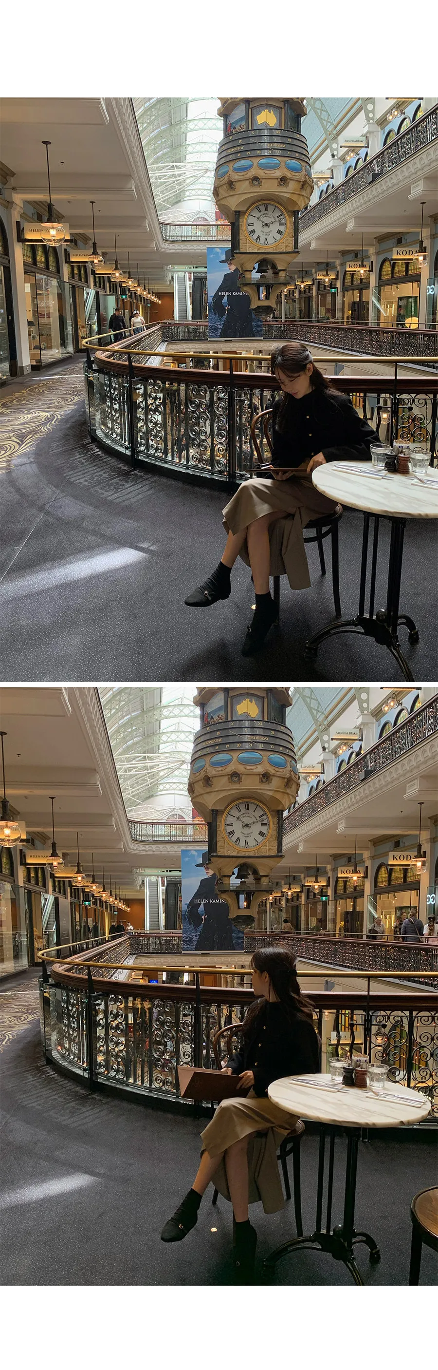 現代魅力腰線雙帶孔設計側開衩H剪裁中長裙