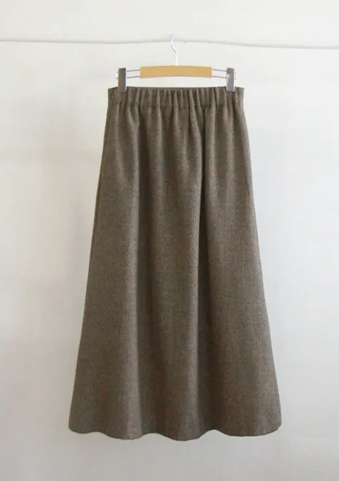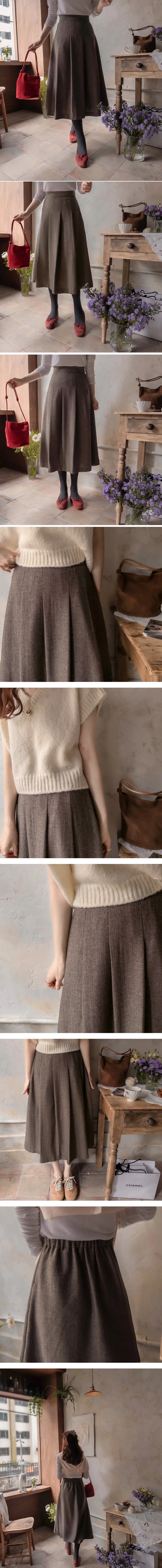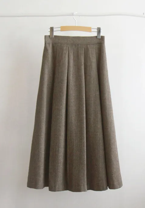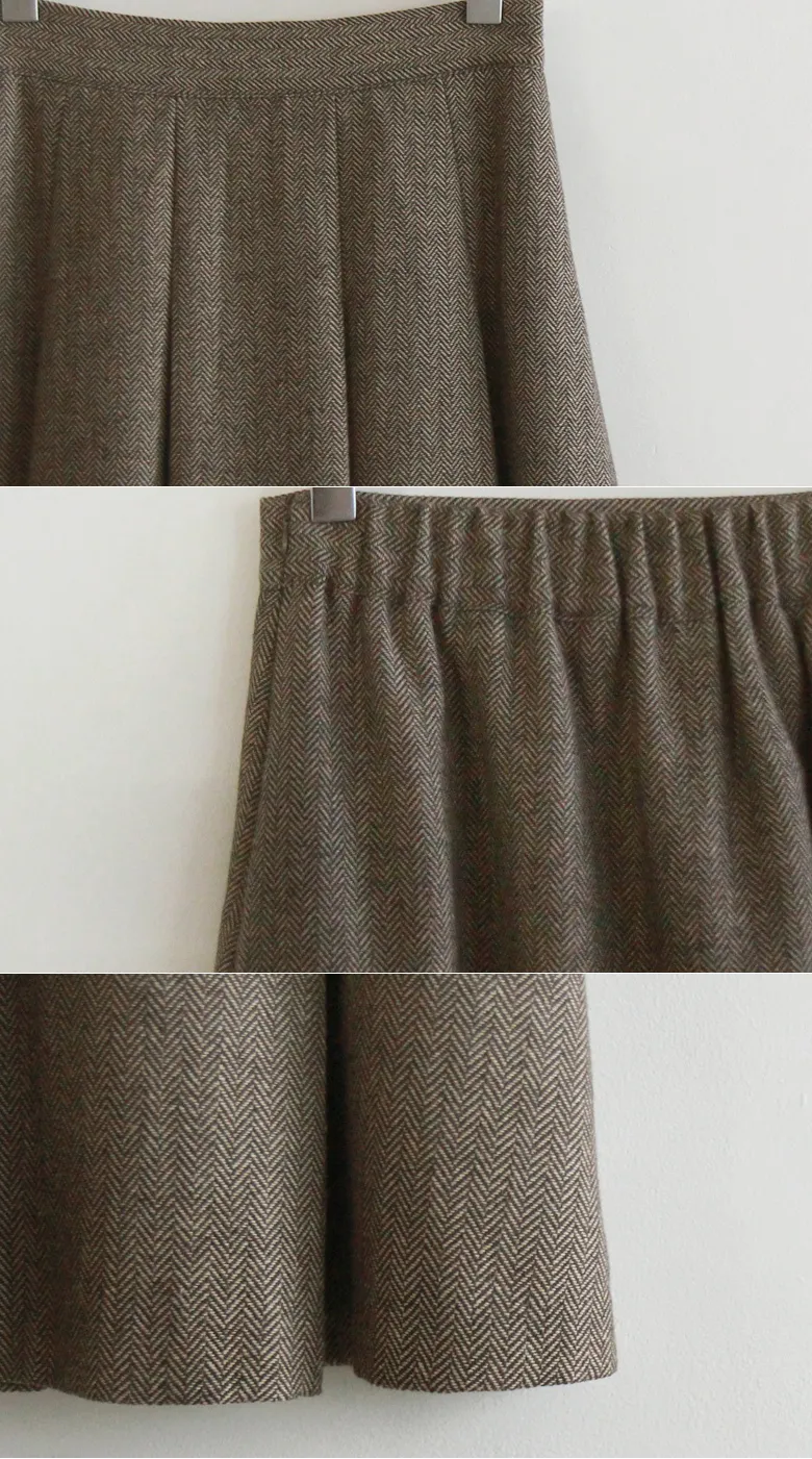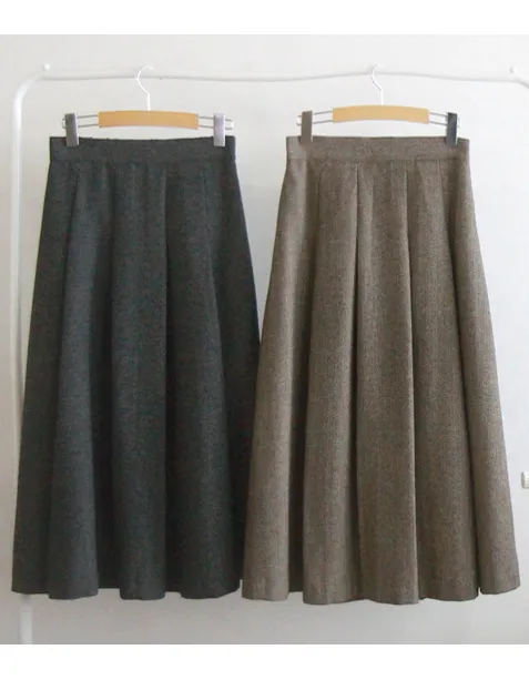 [聚酯纖維襯裡][後部拉鍊結構][腰部後部的帶子處理][質量,長度適中的裙子][時尚的針褶形成褶皺線][季節性的人字紋給人一種季節性的感覺][推薦作為易於穿著的邊緣貼合裙子]