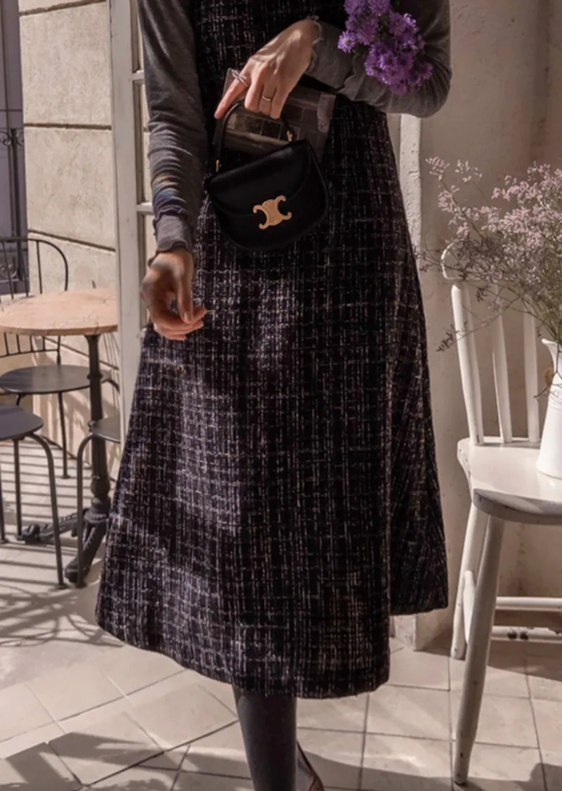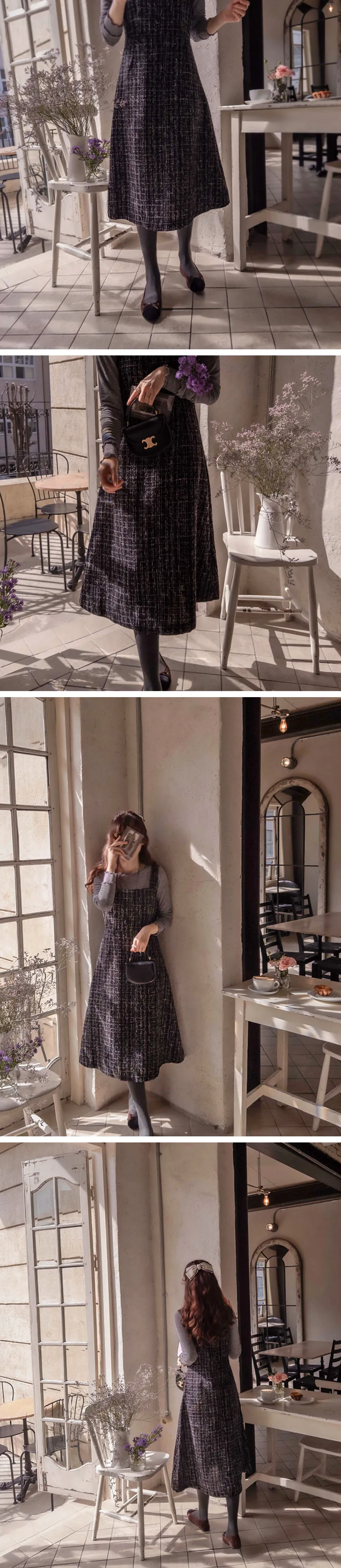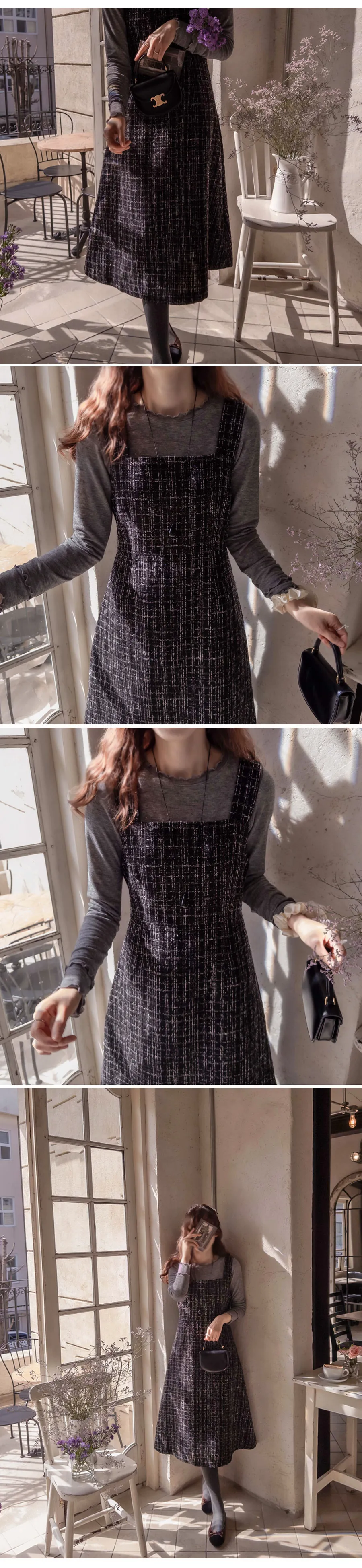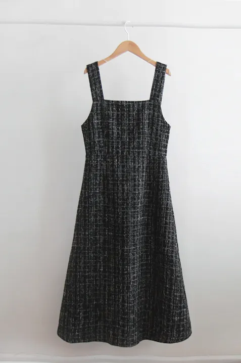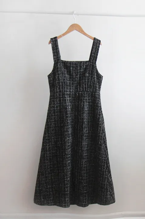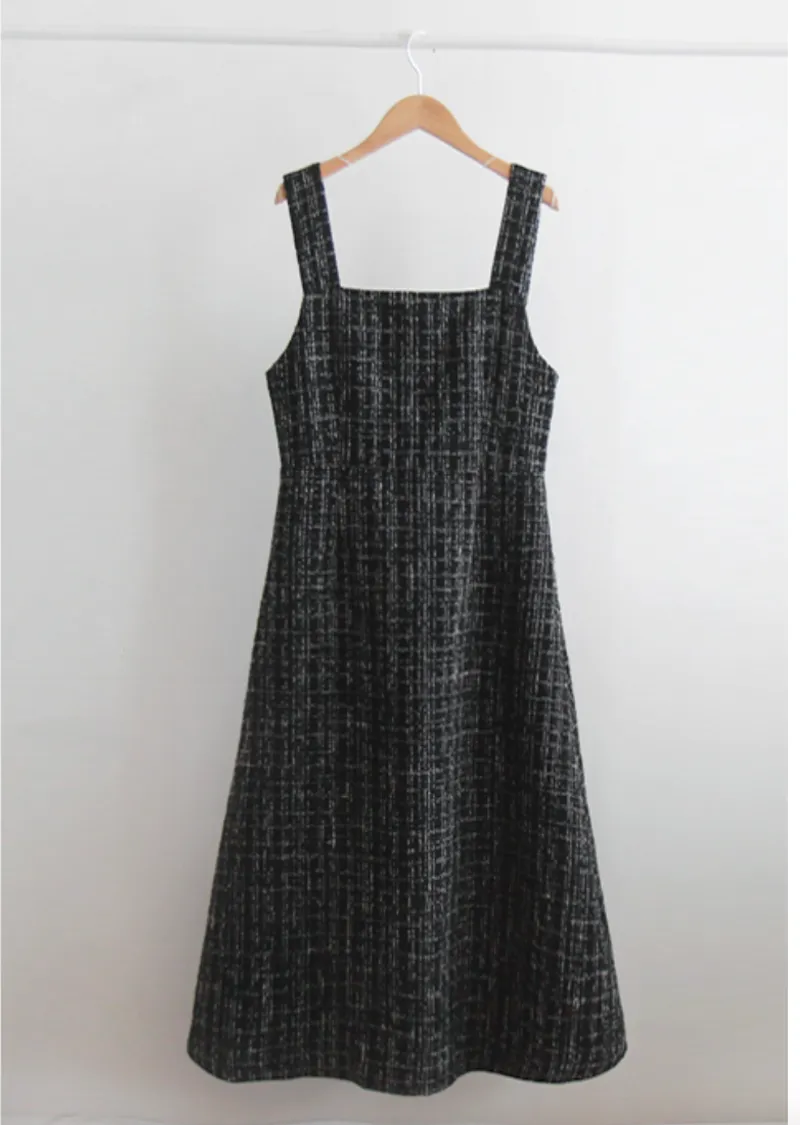 [後拉鍊結構][聚酯襯裡][柔軟珍珠花呢面料製成的連身裙][修身穿著,腰線適當,不緊貼身體][時尚花呢編織連身裙][有吸引力的花呢優雅合身