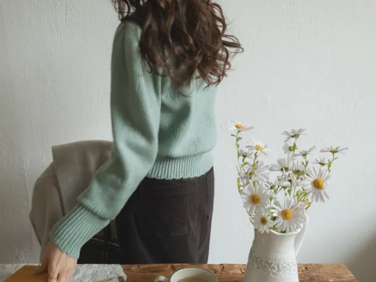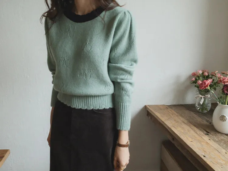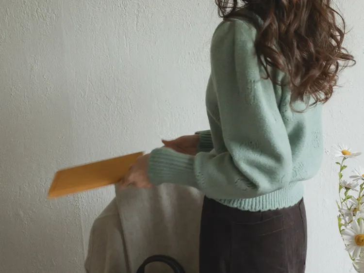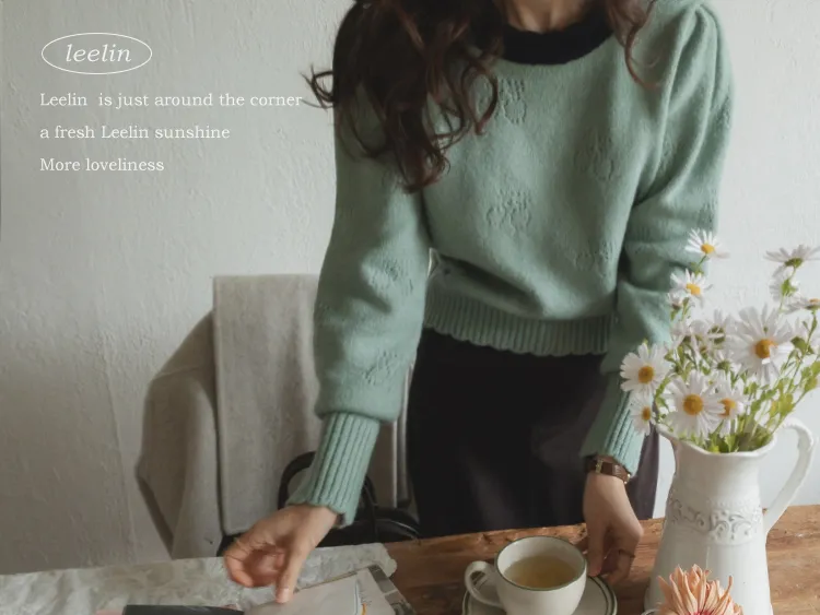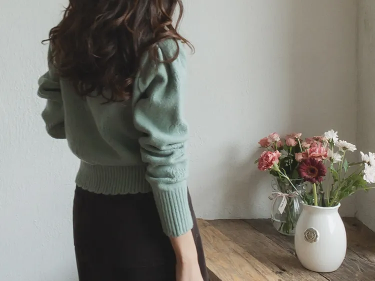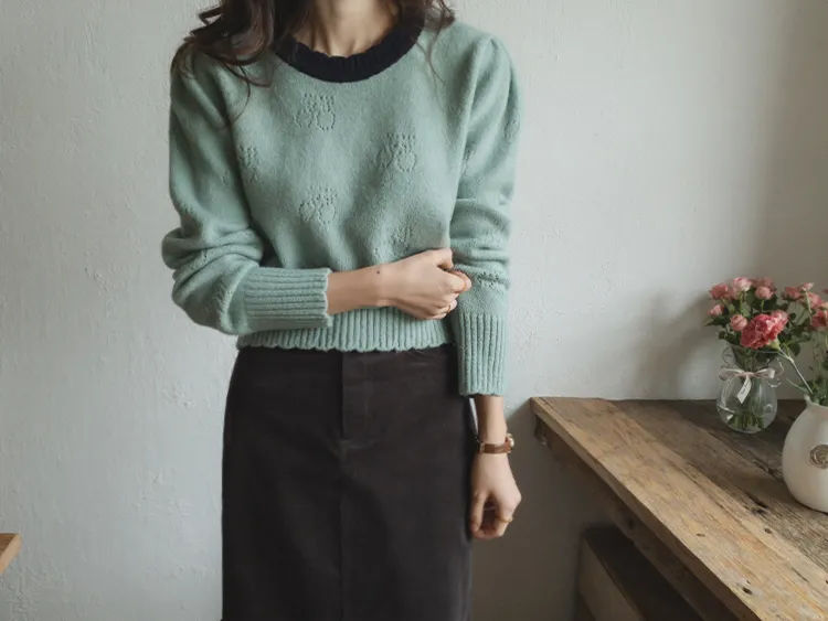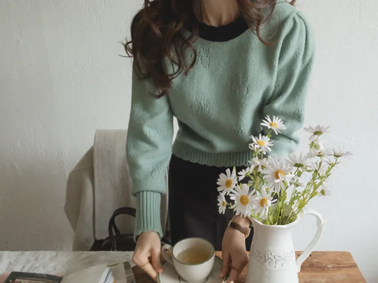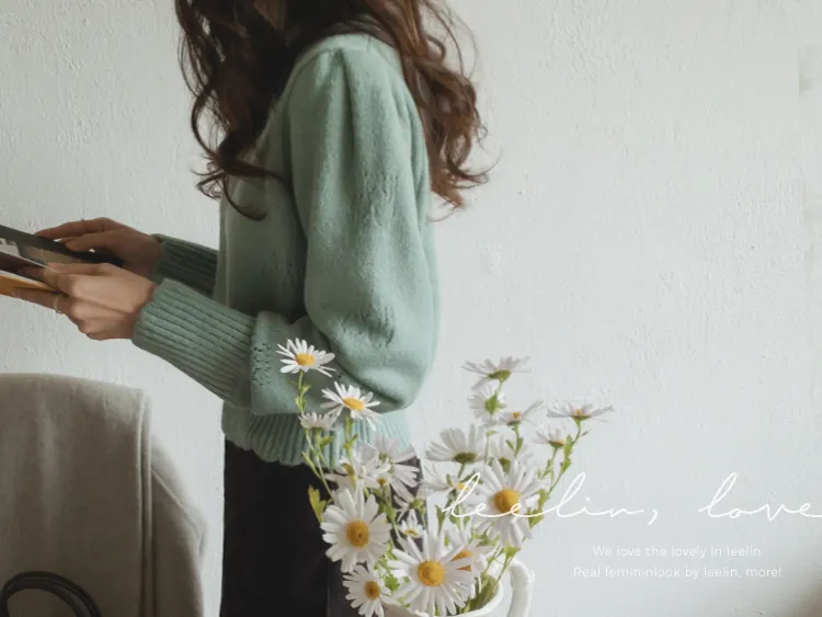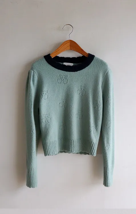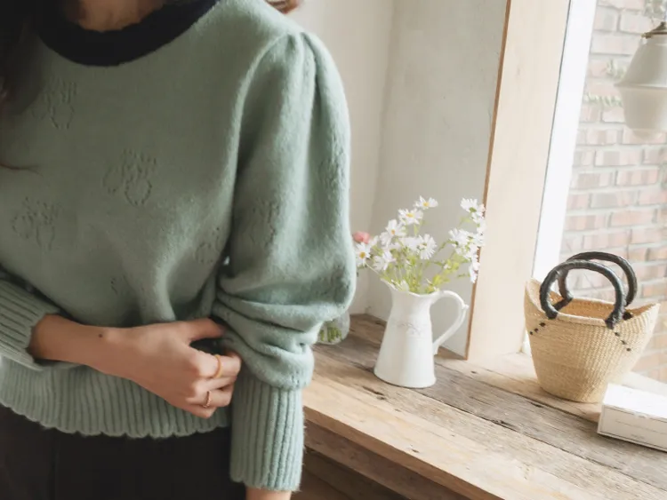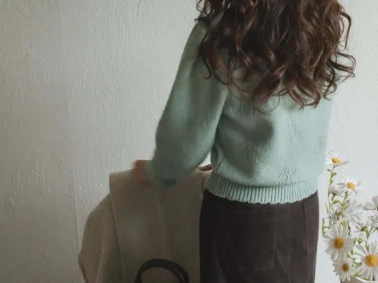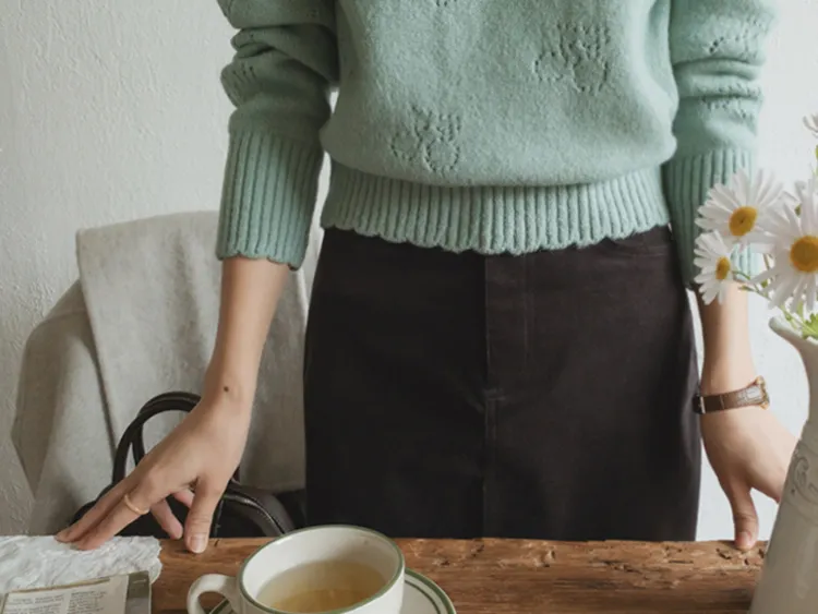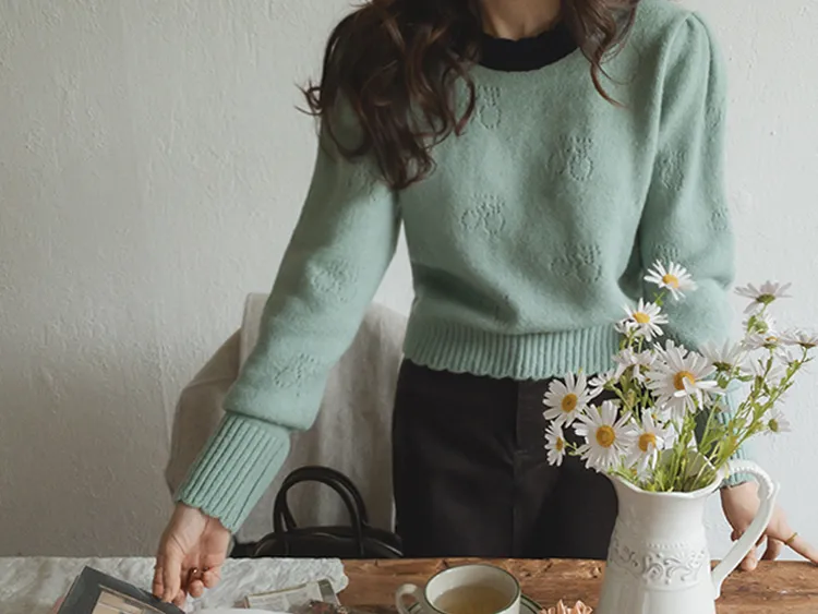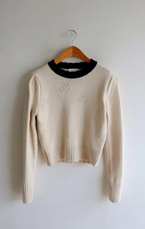 【可愛優雅的針織衫♥】【領口的波浪設計別具一格~】【半剪裁的長度讓腿部看起來更長! 】【櫻桃鏤空設計很可愛-
