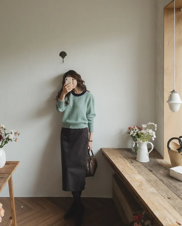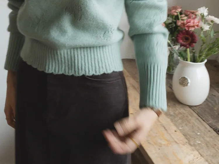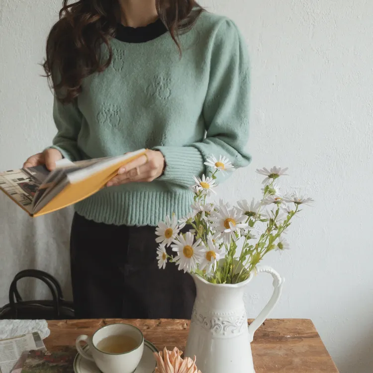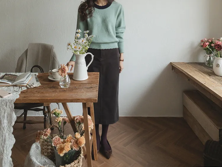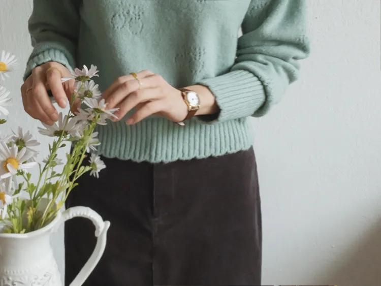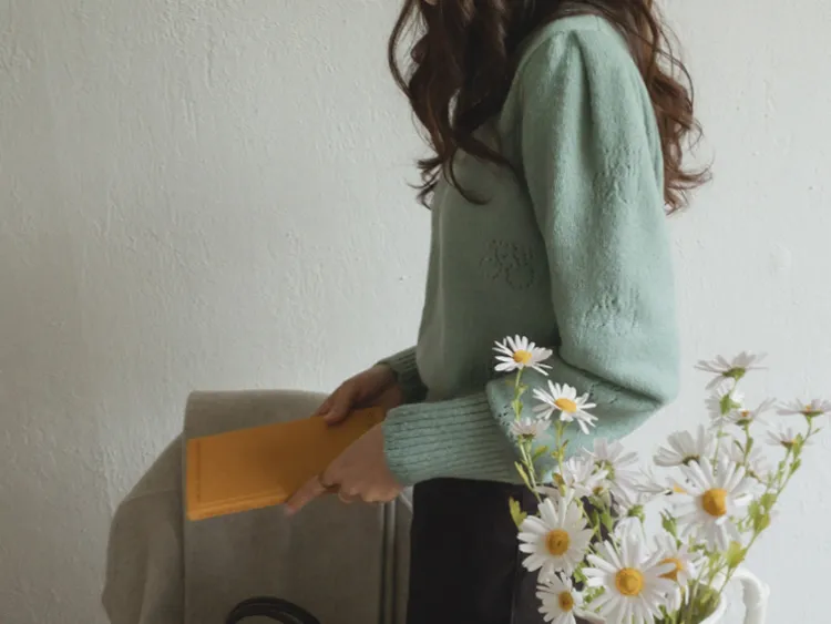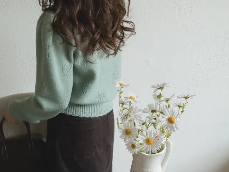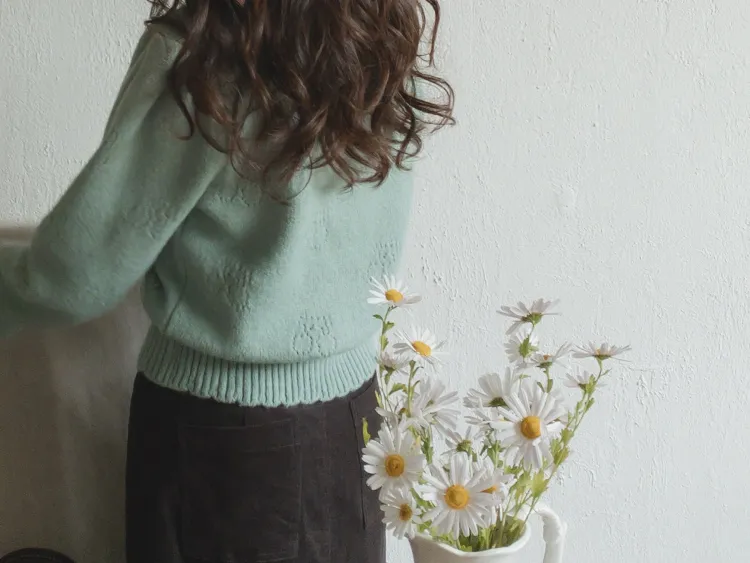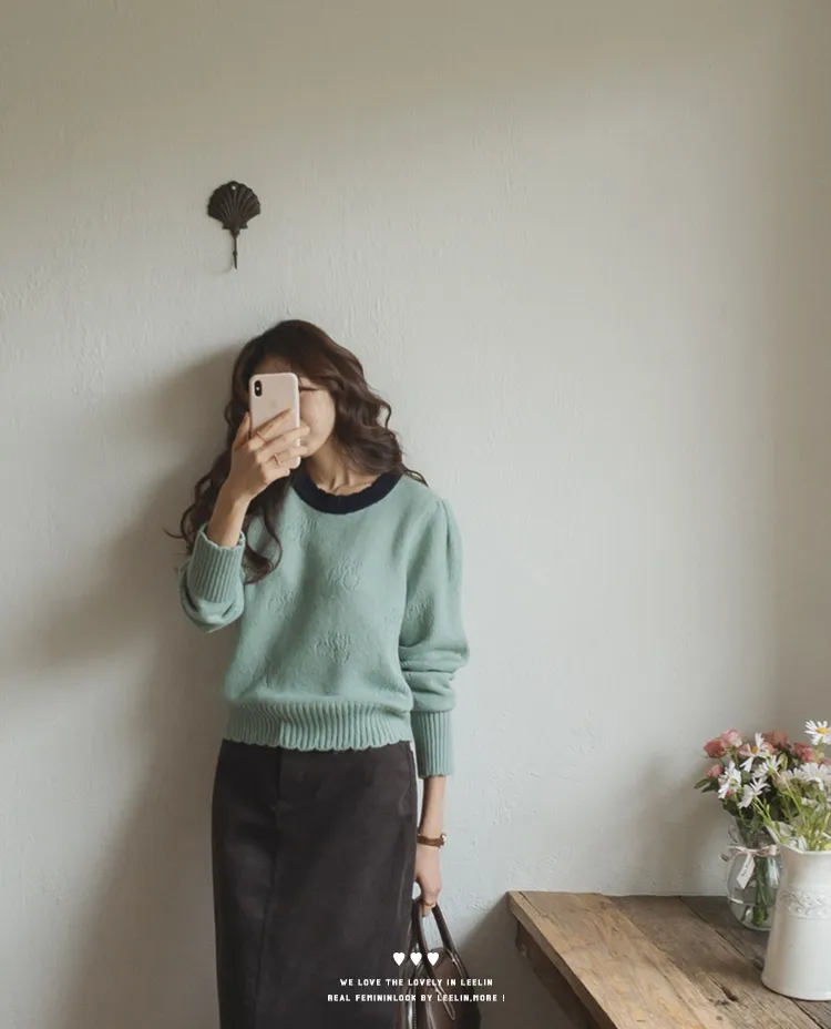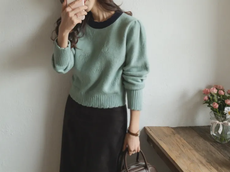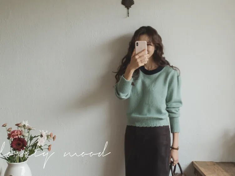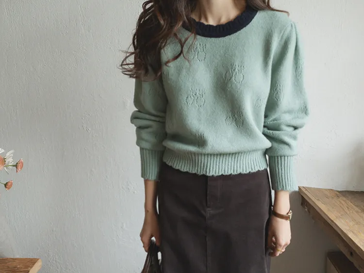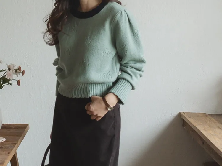 【可愛優雅的針織衫♥】【領口的波浪設計別具一格~】【半剪裁的長度讓腿部看起來更長! 】【櫻桃鏤空設計很可愛-