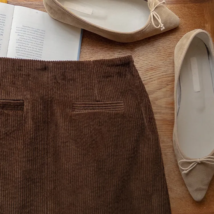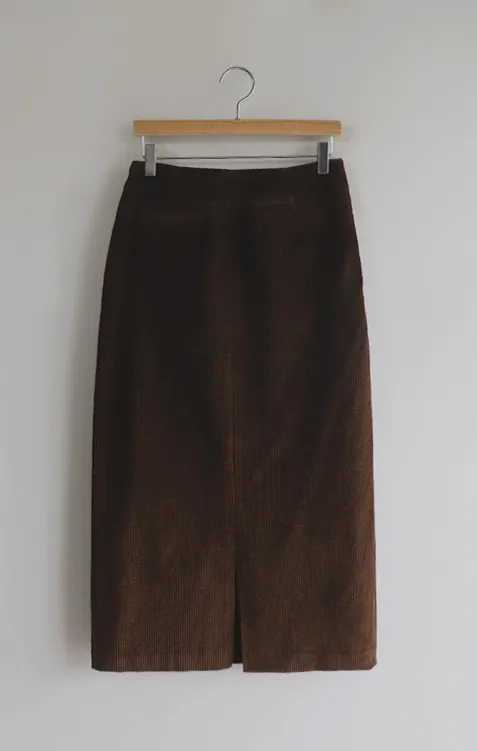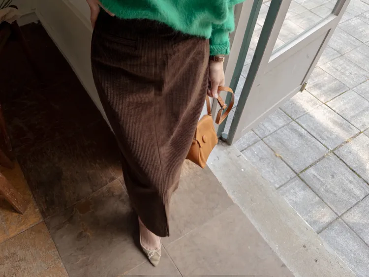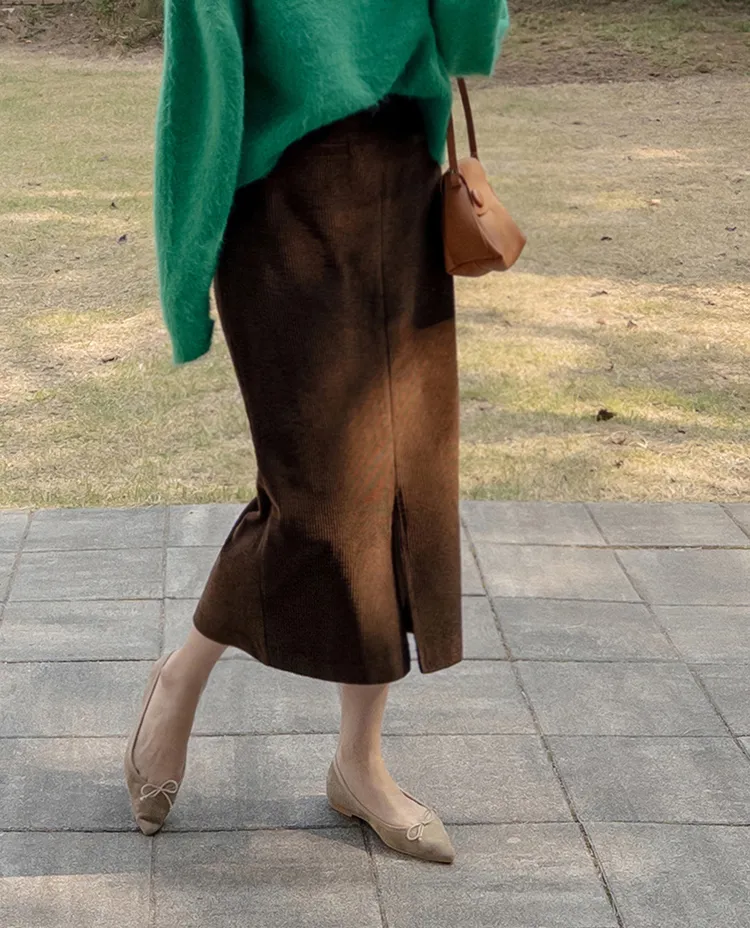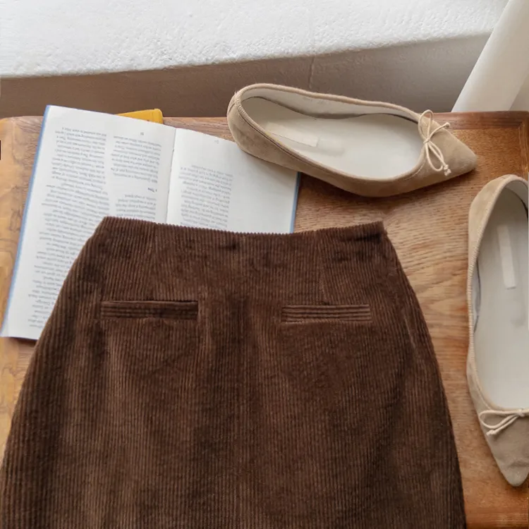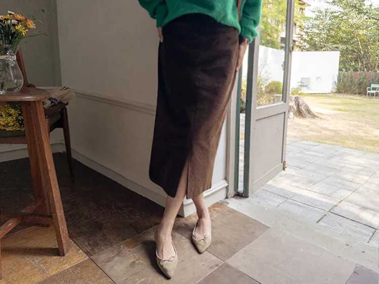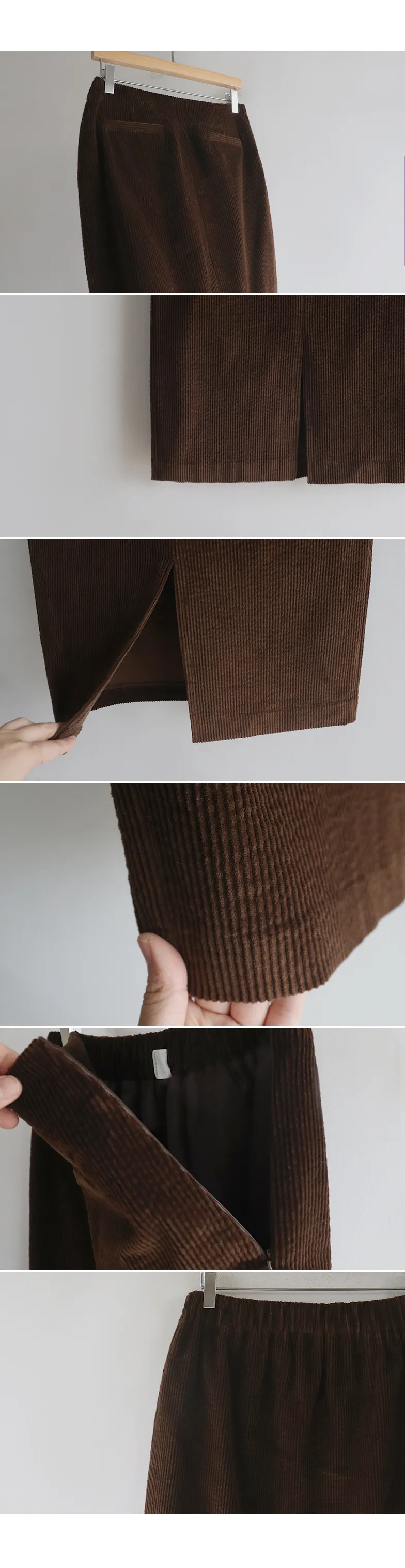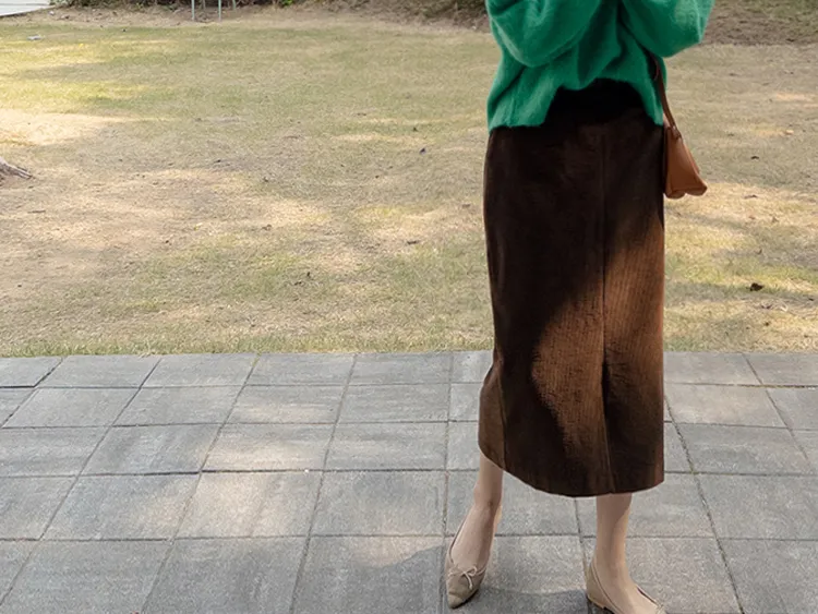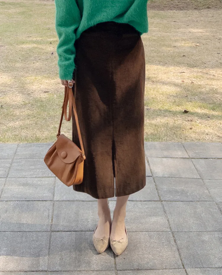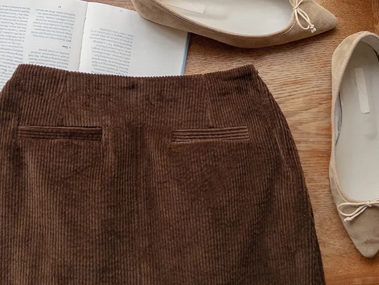 沉穩簡約H剪裁開衩燈芯絨中長裙