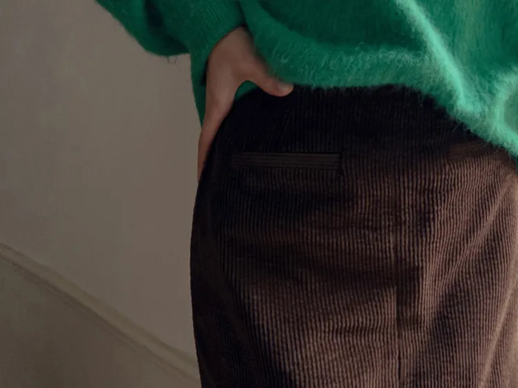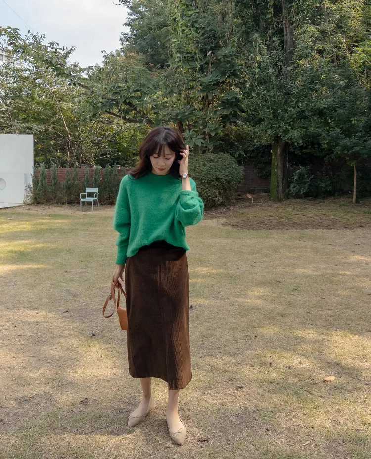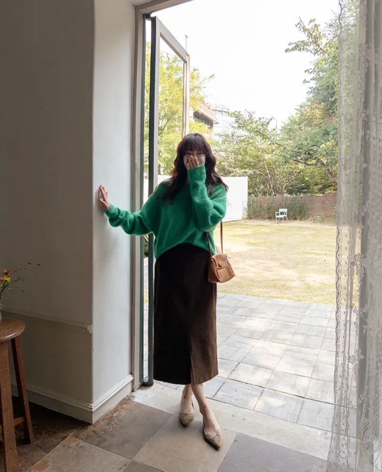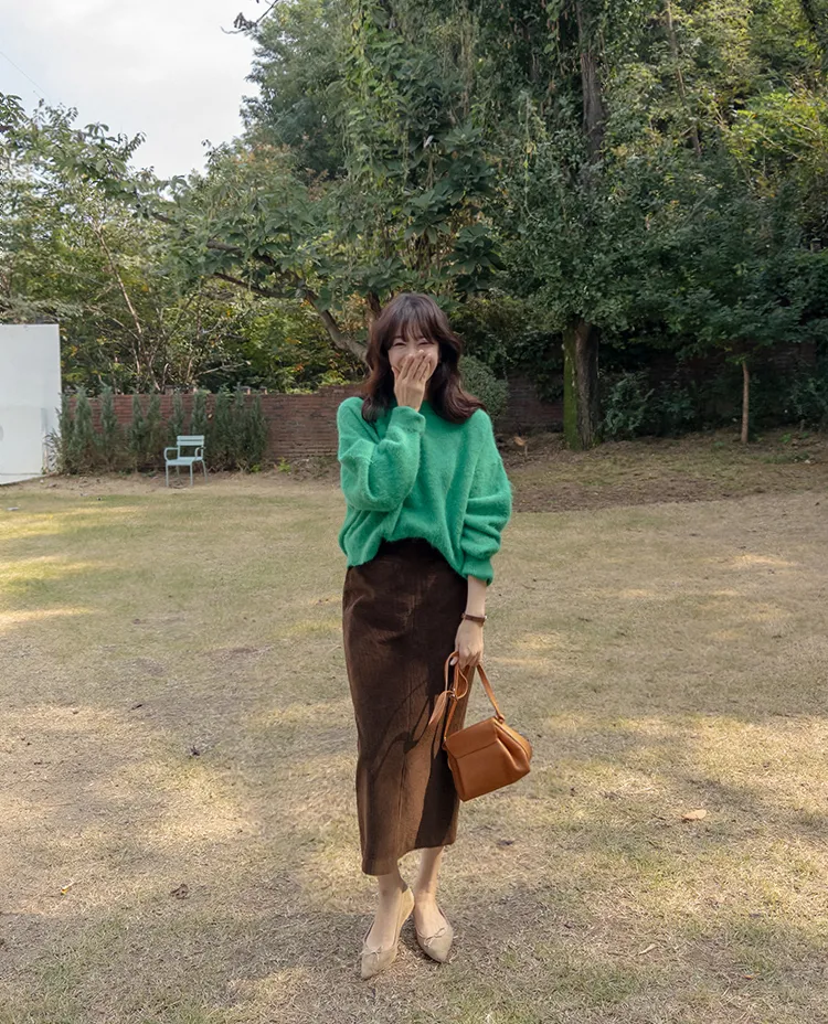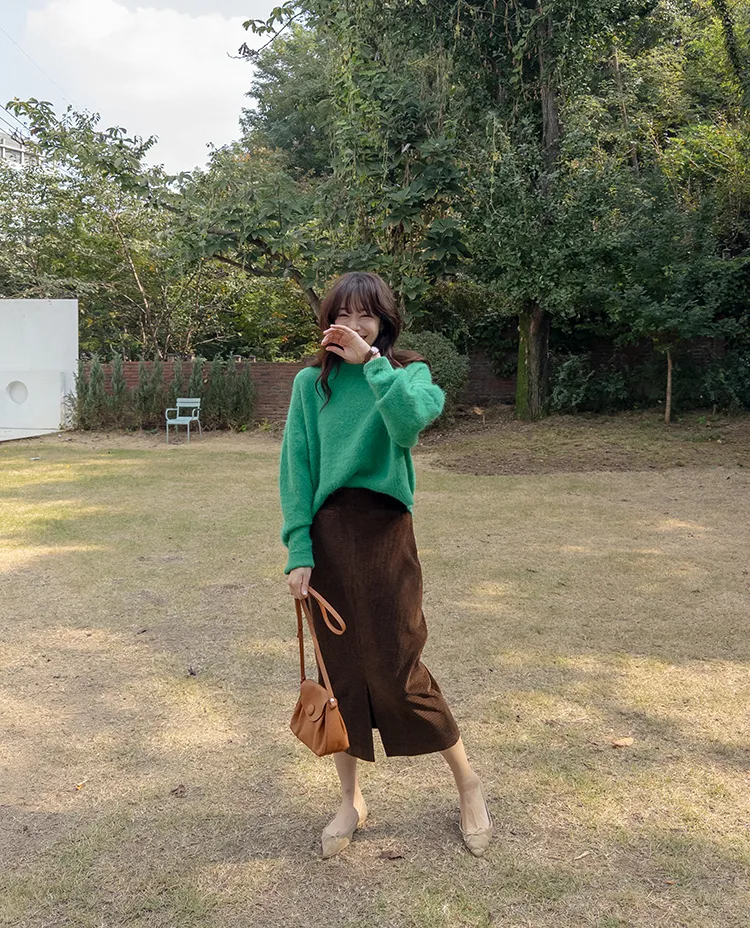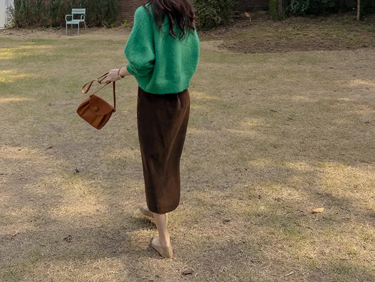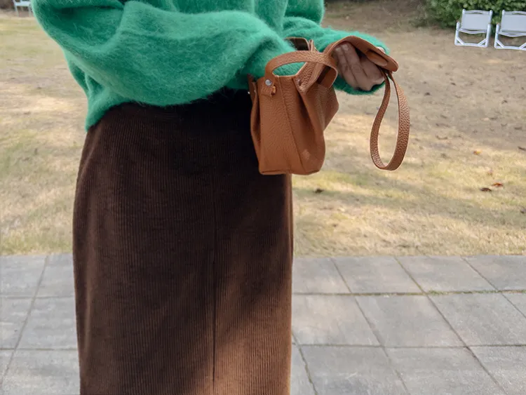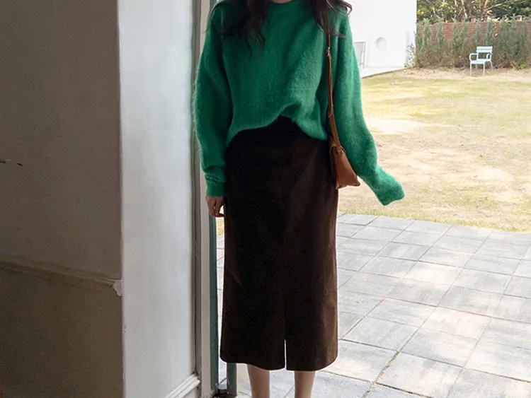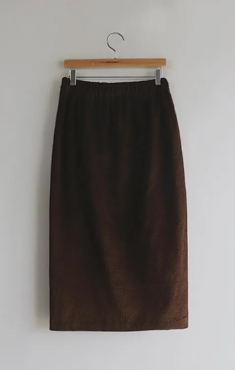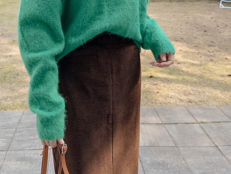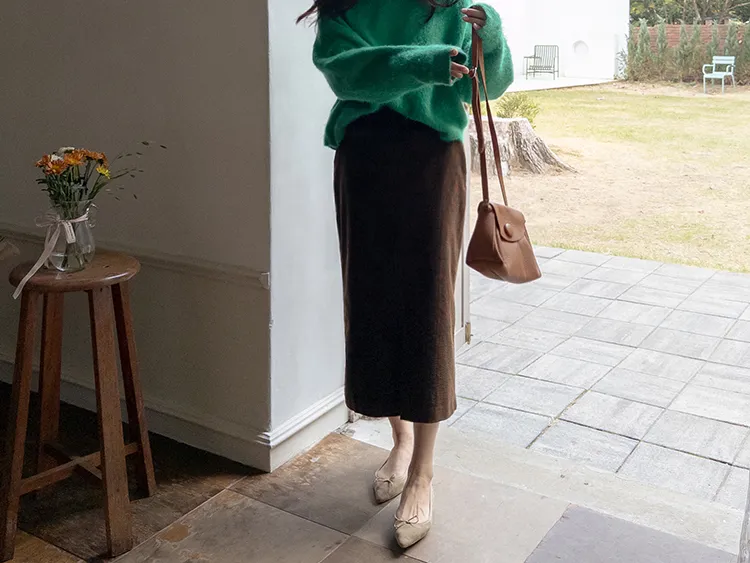 沉穩簡約H剪裁開衩燈芯絨中長裙