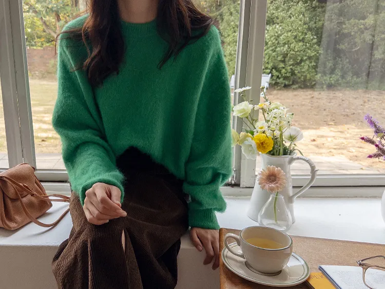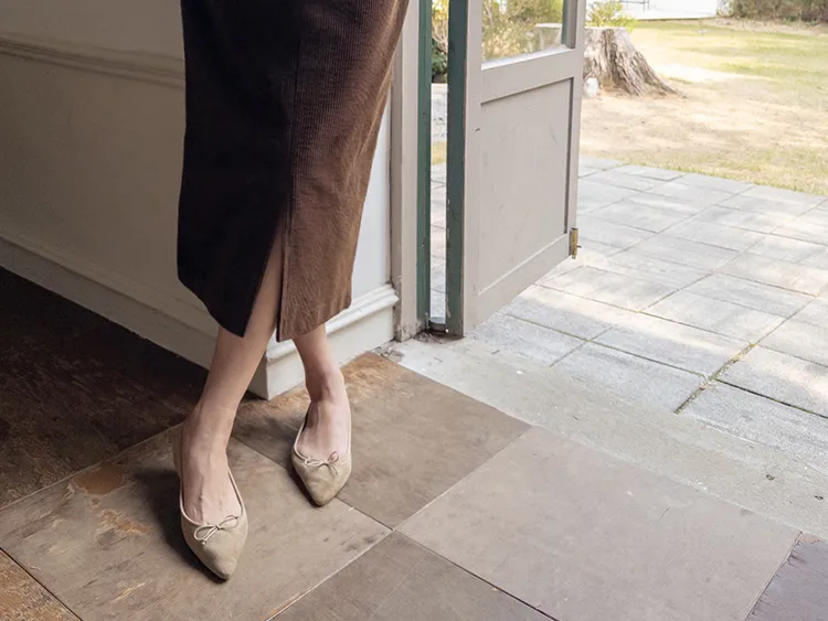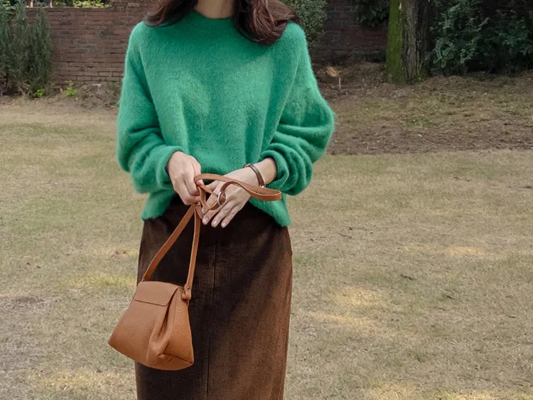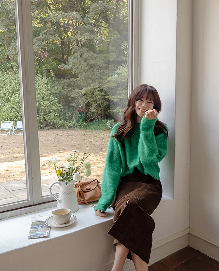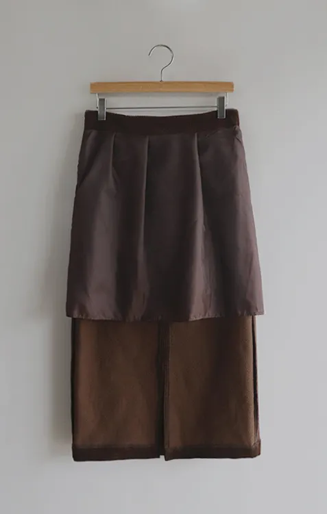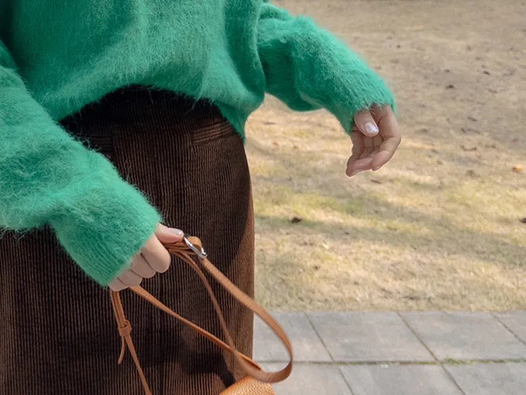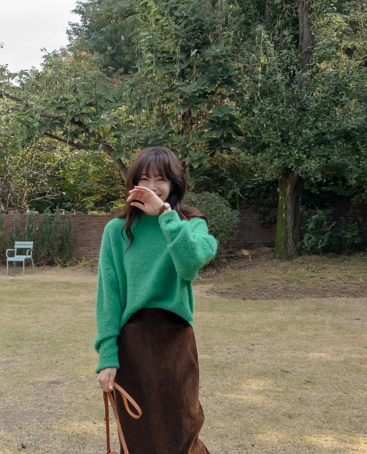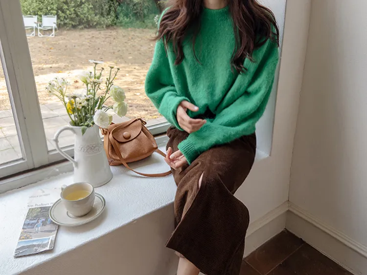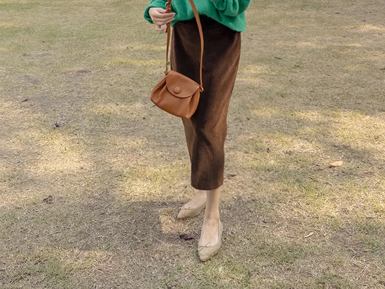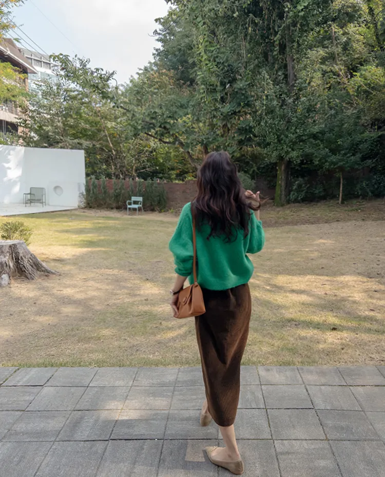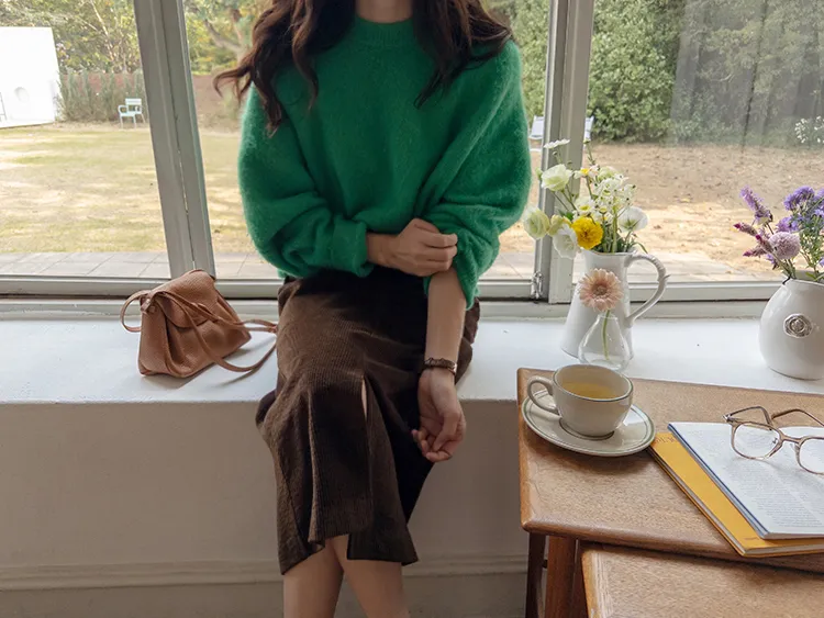 沉穩簡約H剪裁開衩燈芯絨中長裙