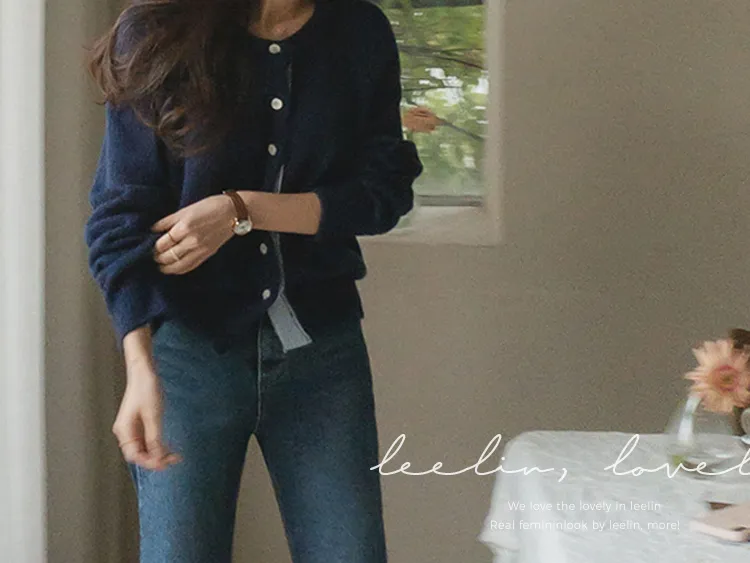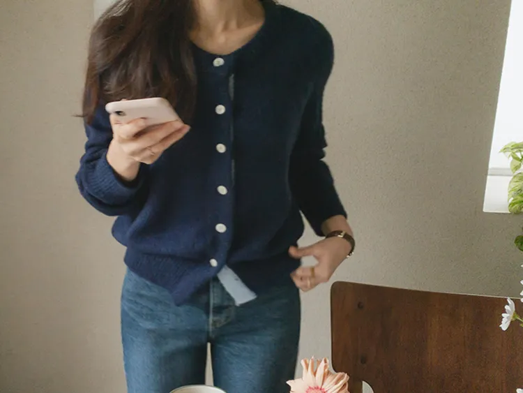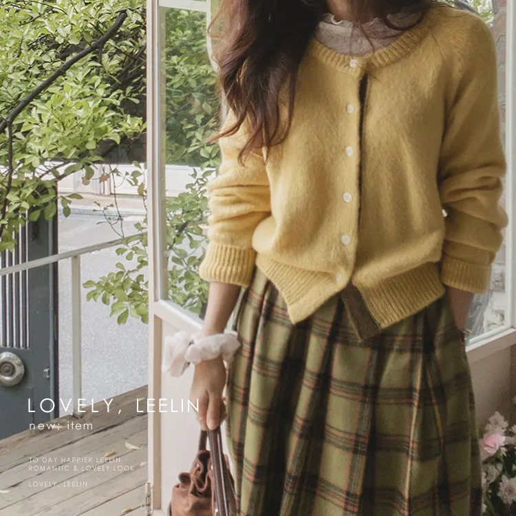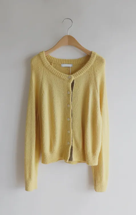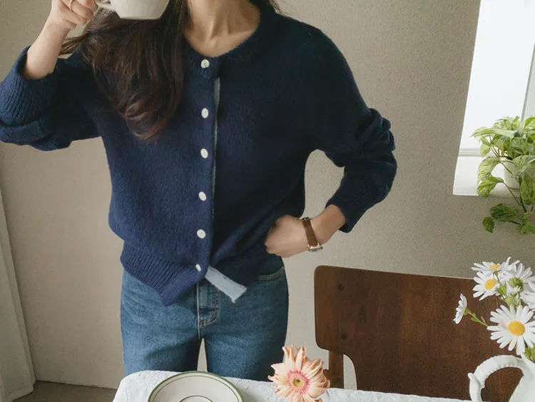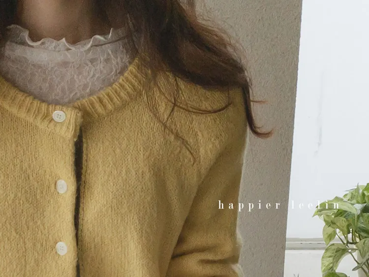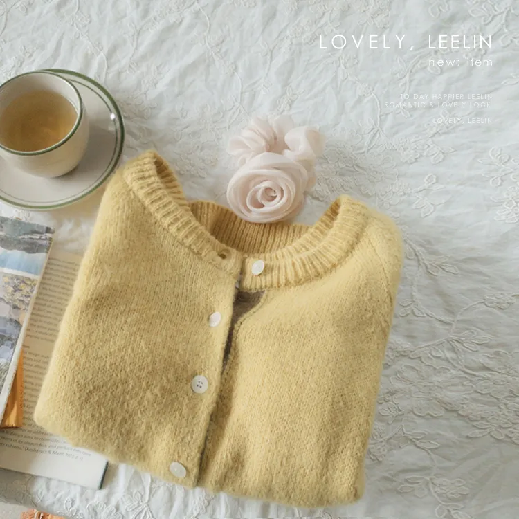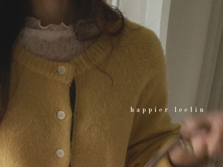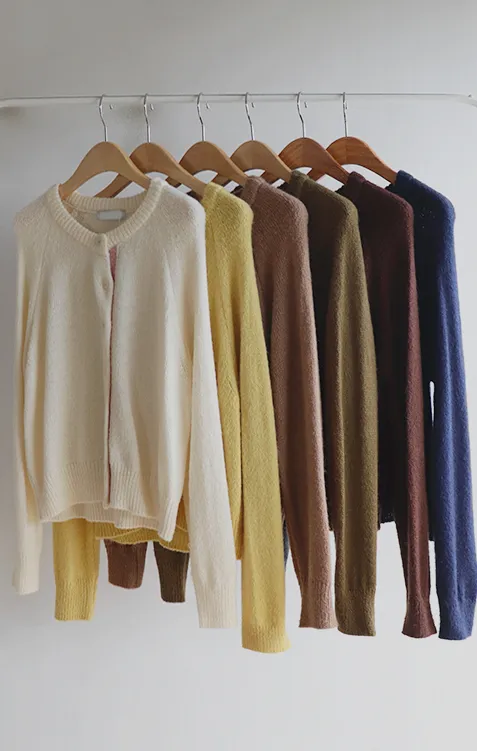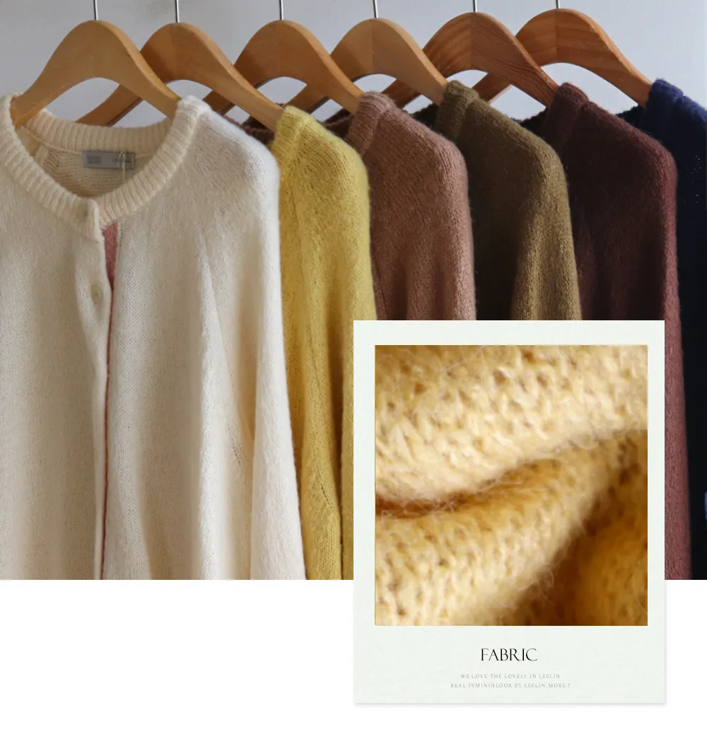 【材質柔軟有彈性的開衫♡】【紐扣線顏色組合的獨特細節UP!】【寬鬆廓形,充滿女人味】【羊駝毛材質,溫暖又柔軟】
