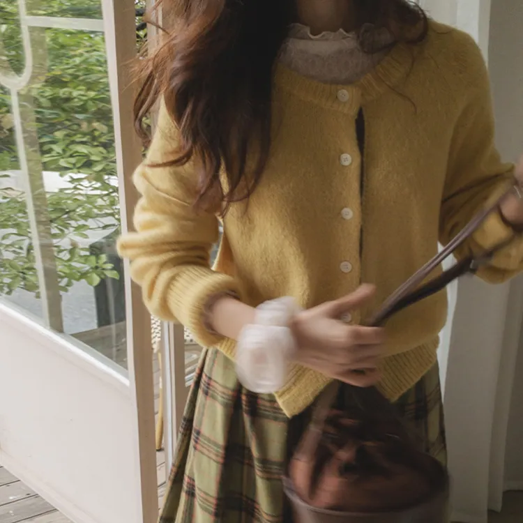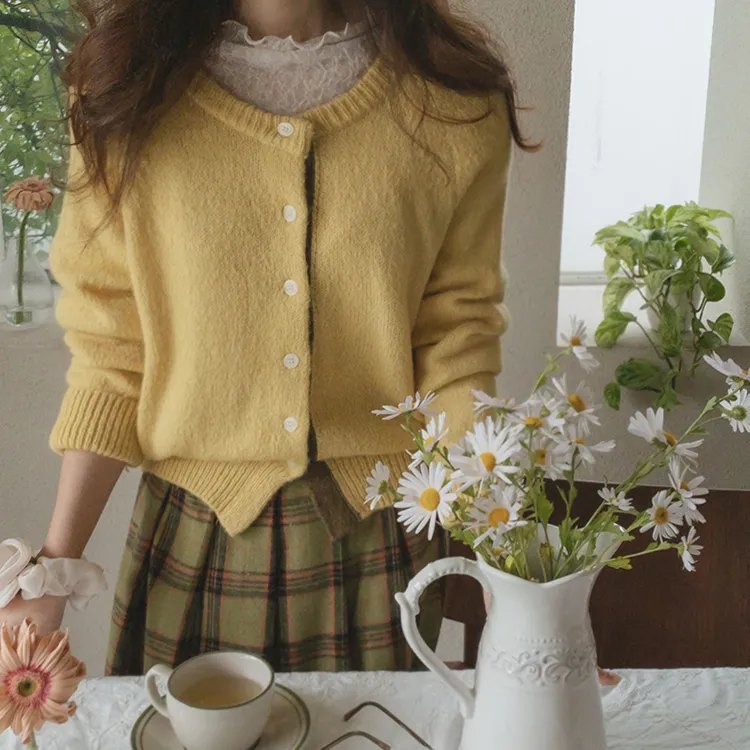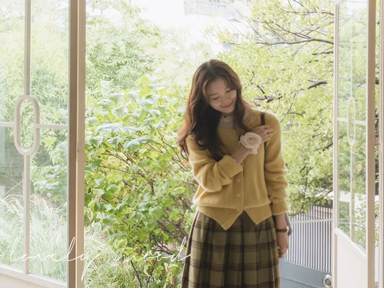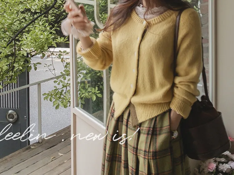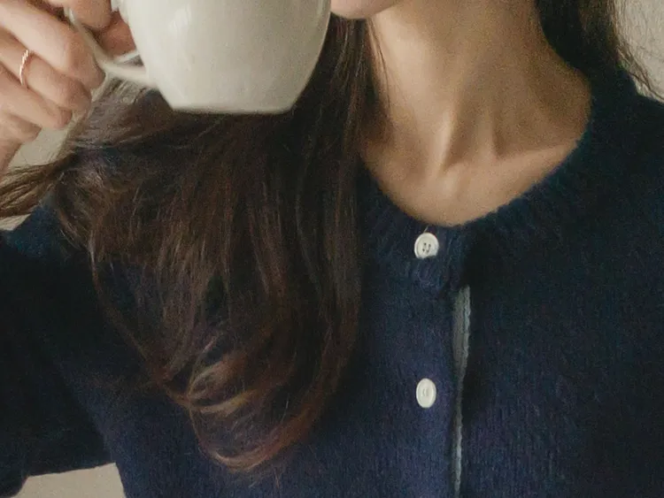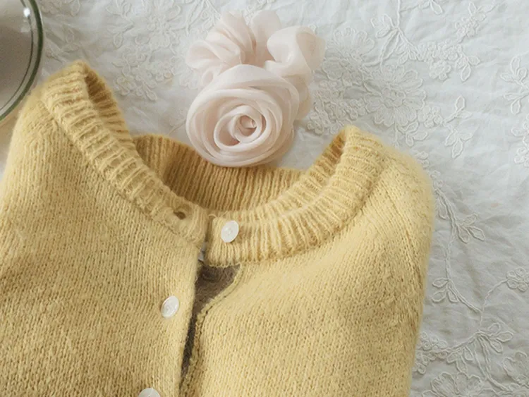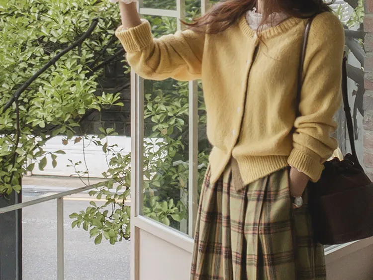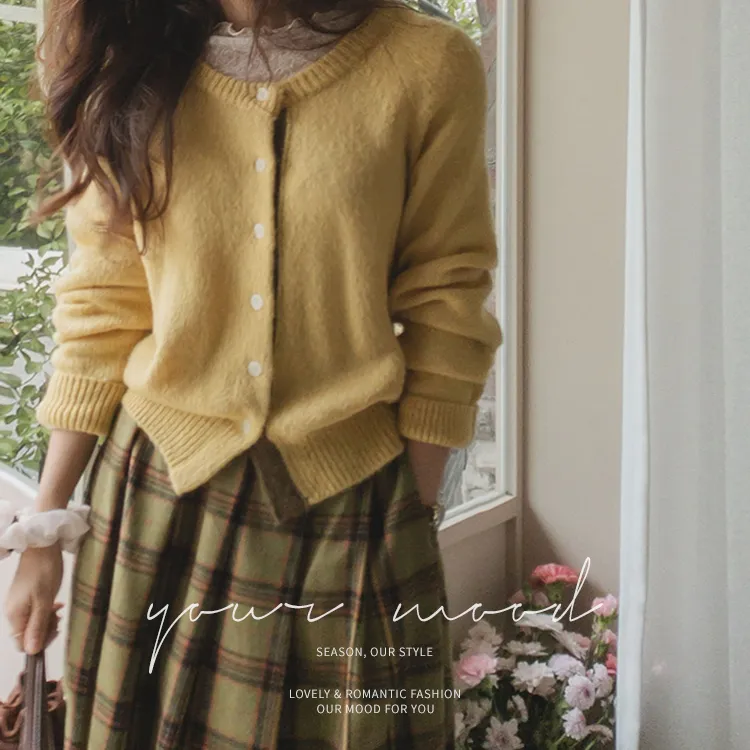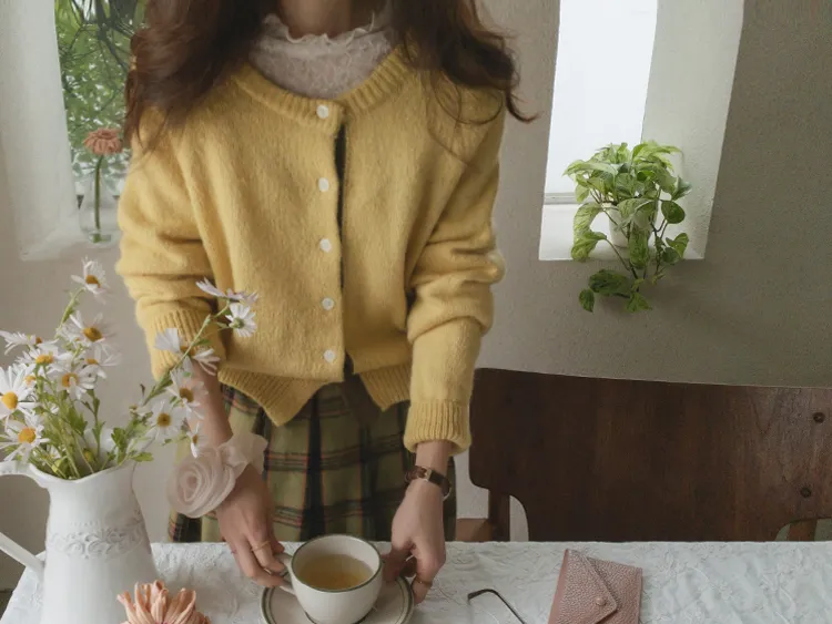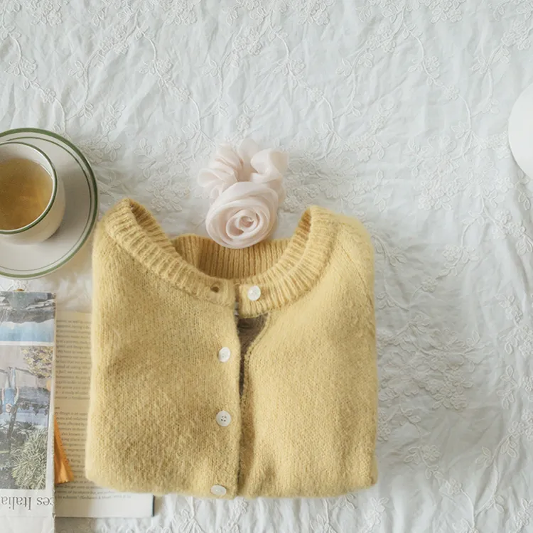 【材質柔軟有彈性的開衫♡】【紐扣線顏色組合的獨特細節UP!】【寬鬆廓形,充滿女人味】【羊駝毛材質,溫暖又柔軟】