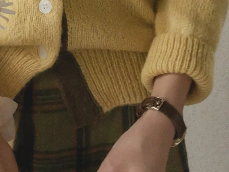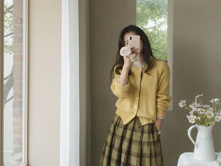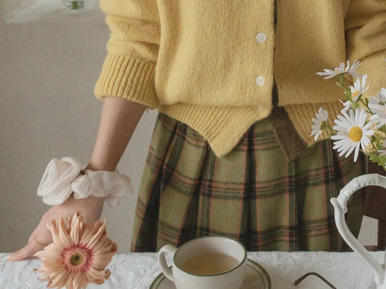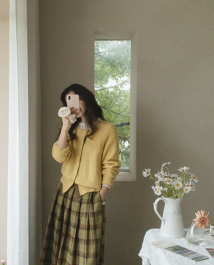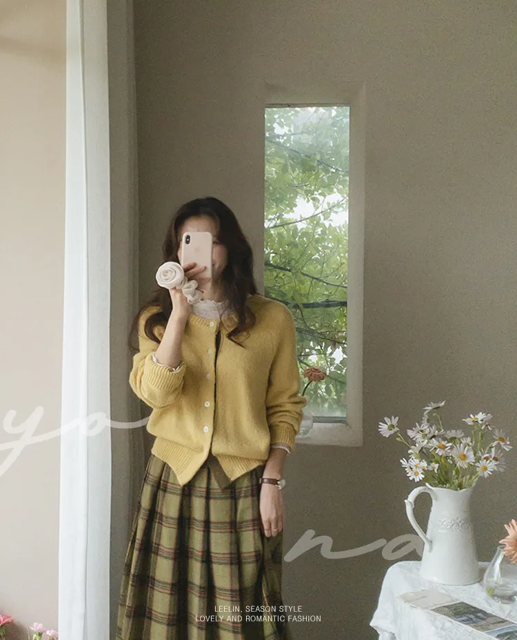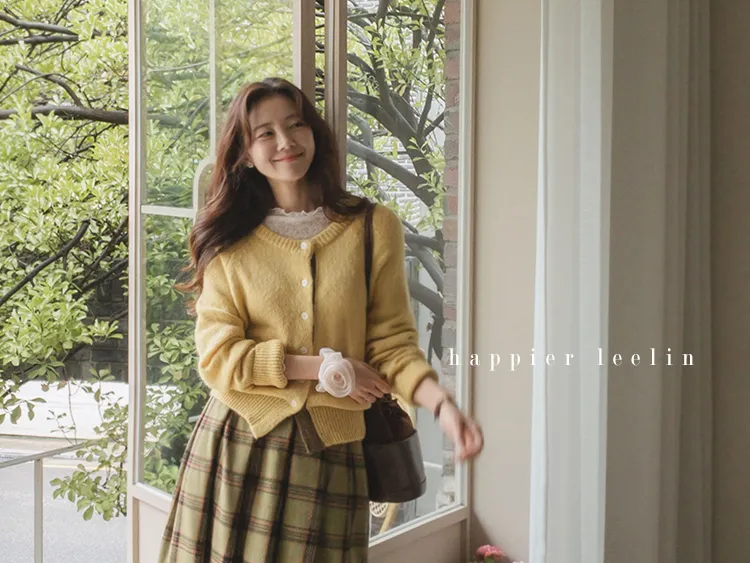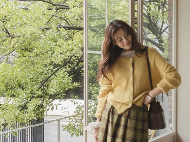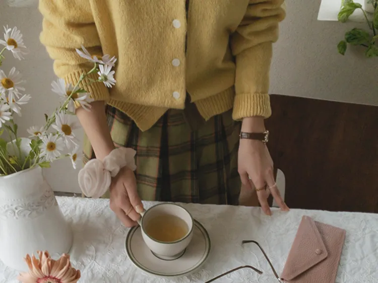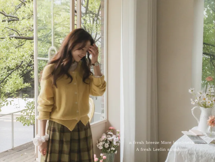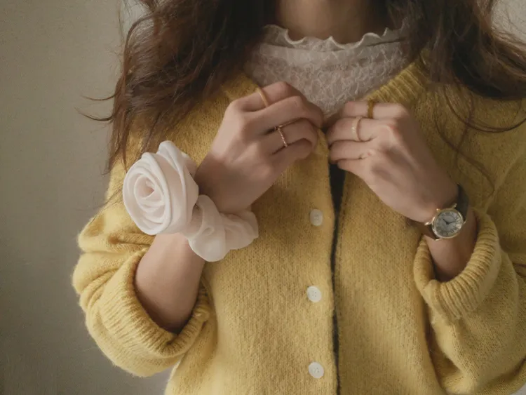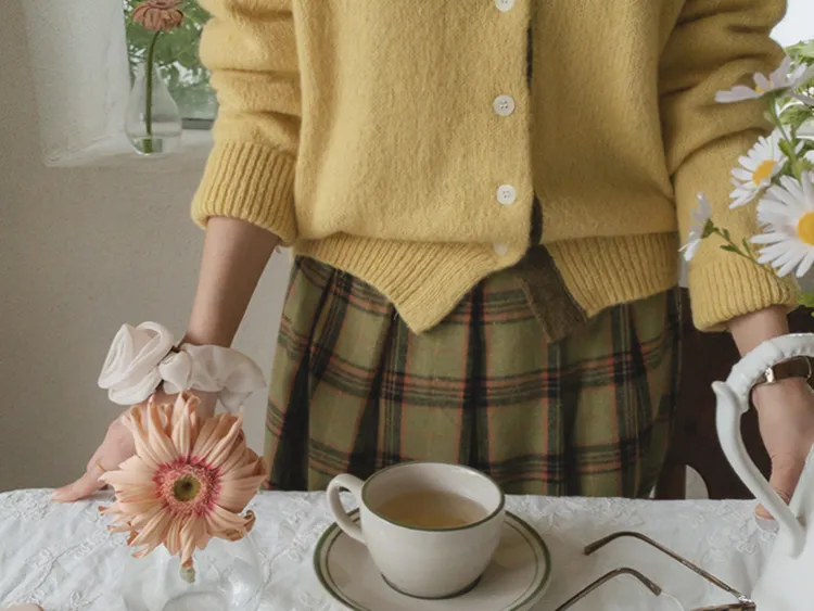【材質柔軟有彈性的開衫♡】【紐扣線顏色組合的獨特細節UP!】【寬鬆廓形,充滿女人味】【羊駝毛材質,溫暖又柔軟】
