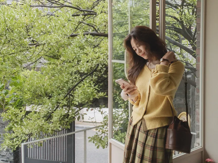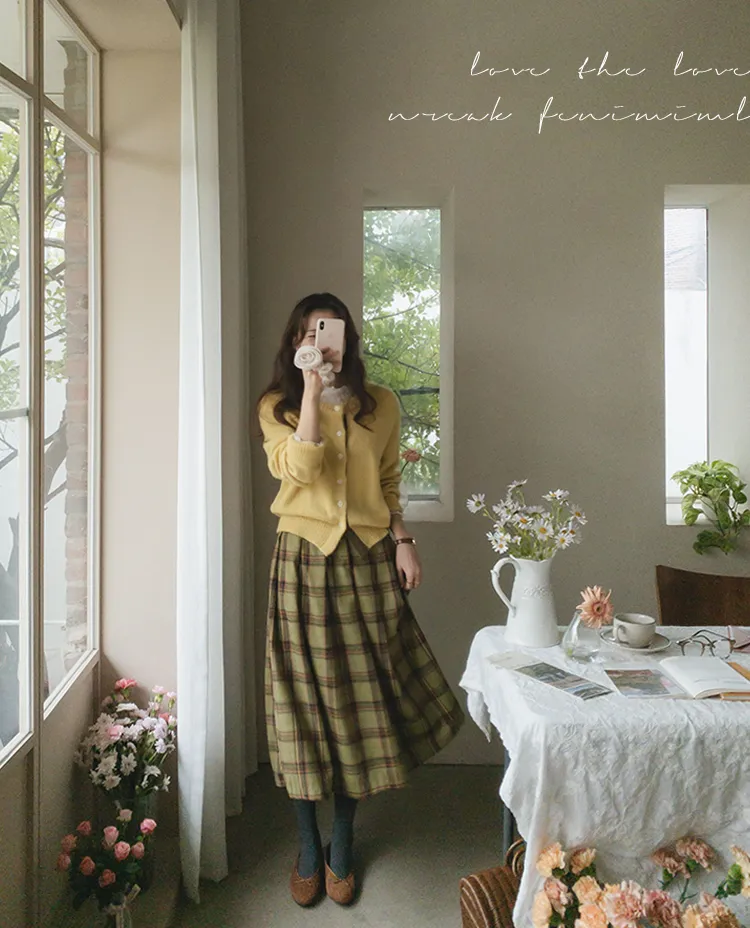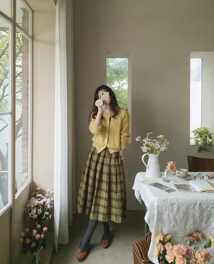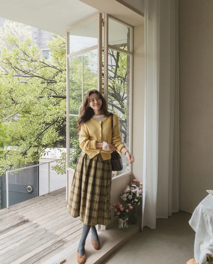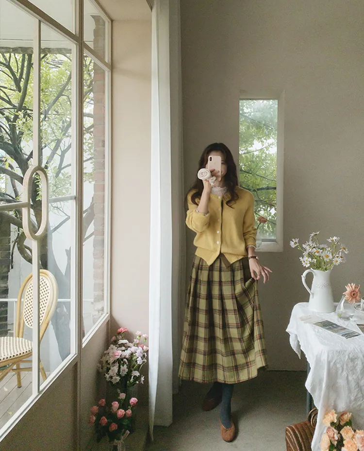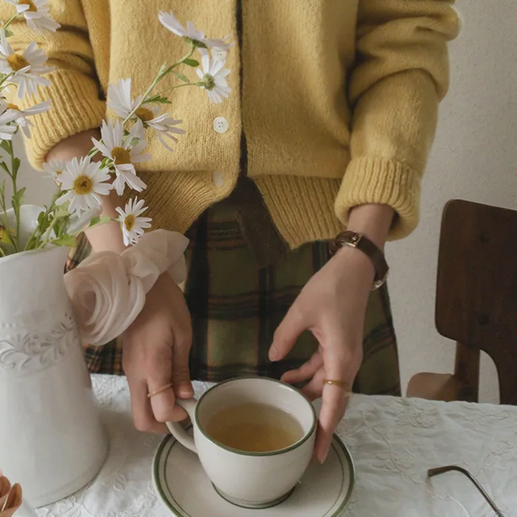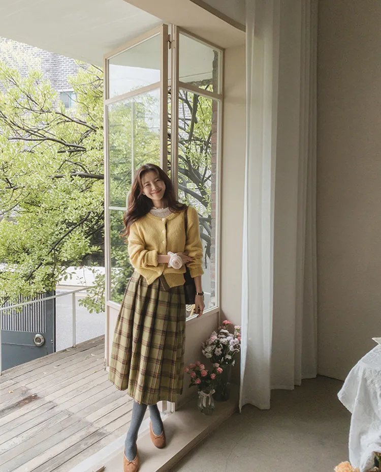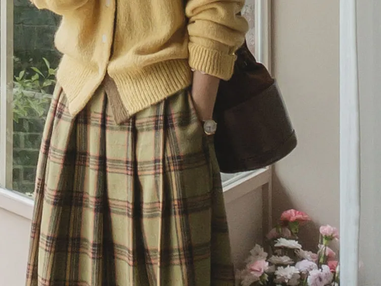 【材質柔軟有彈性的開衫♡】【紐扣線顏色組合的獨特細節UP!】【寬鬆廓形,充滿女人味】【羊駝毛材質,溫暖又柔軟】