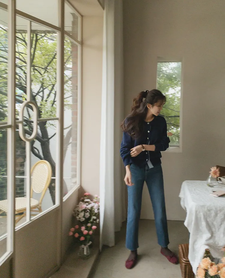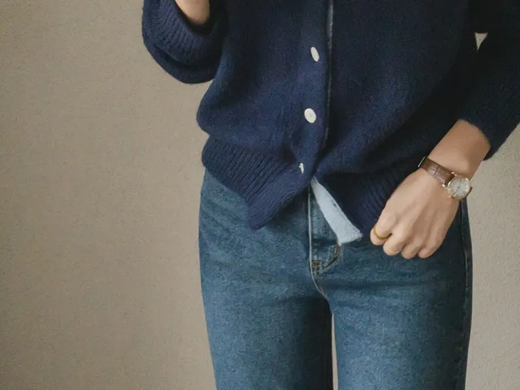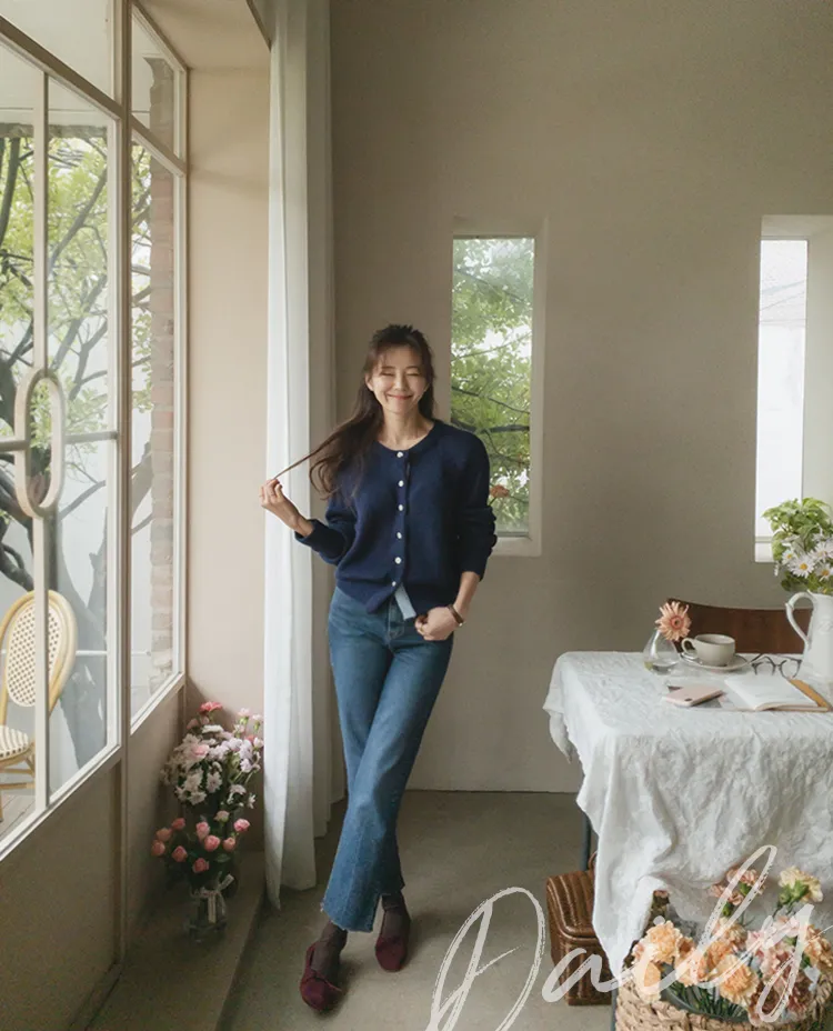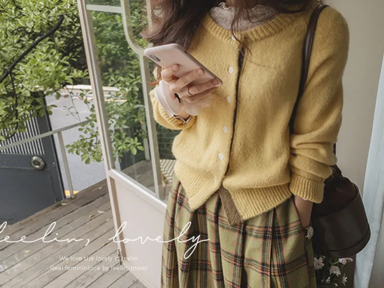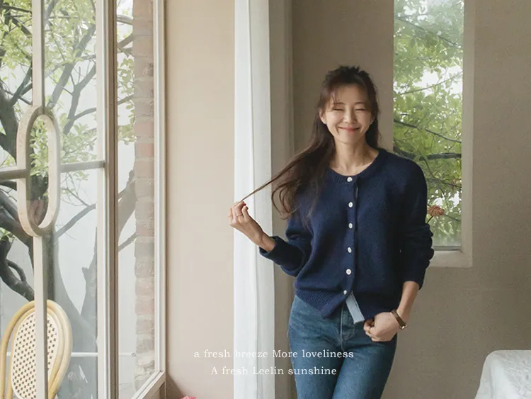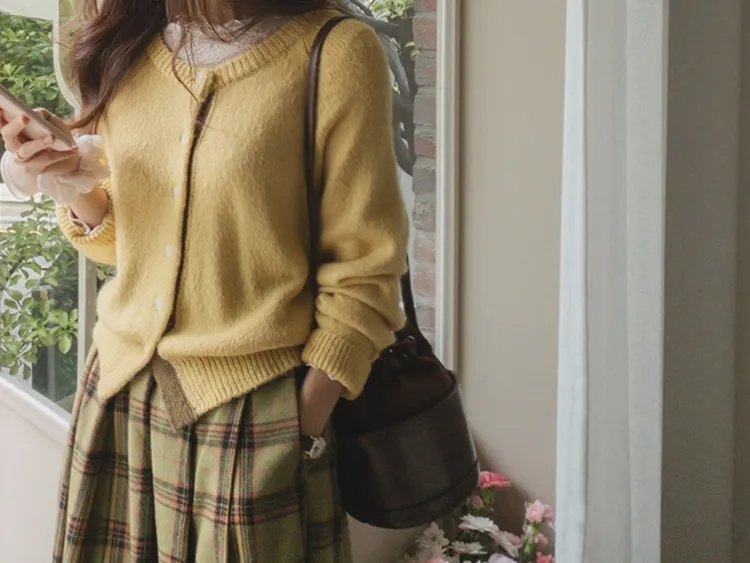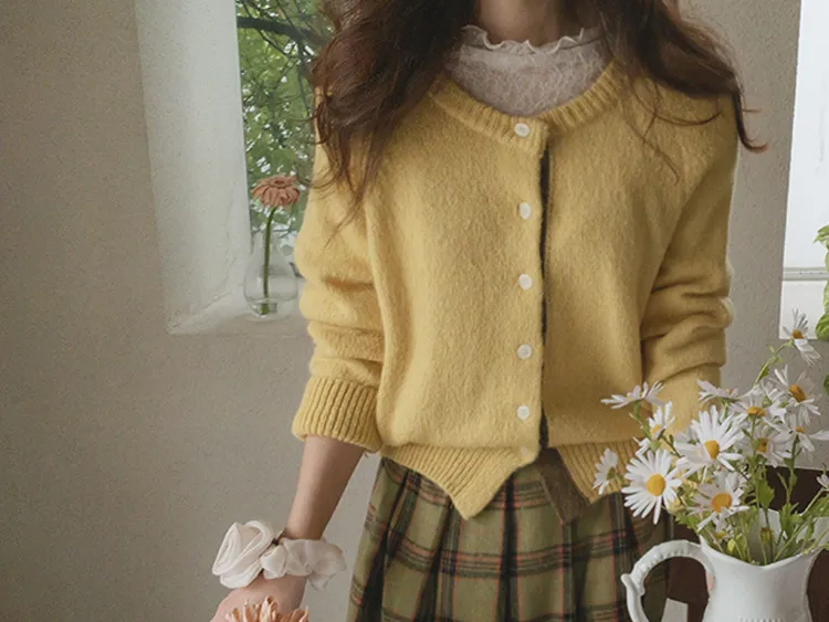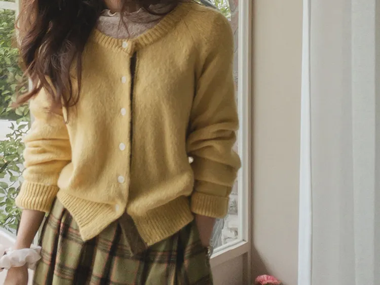 可愛鈕扣行配色設計柔軟彈性開衫