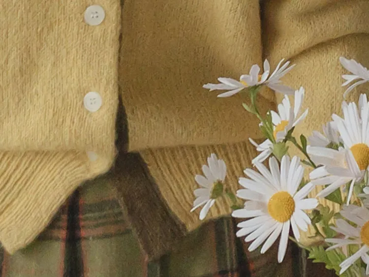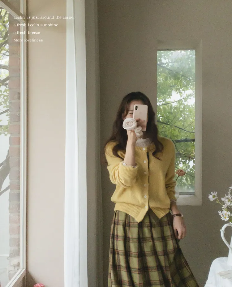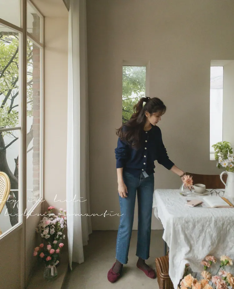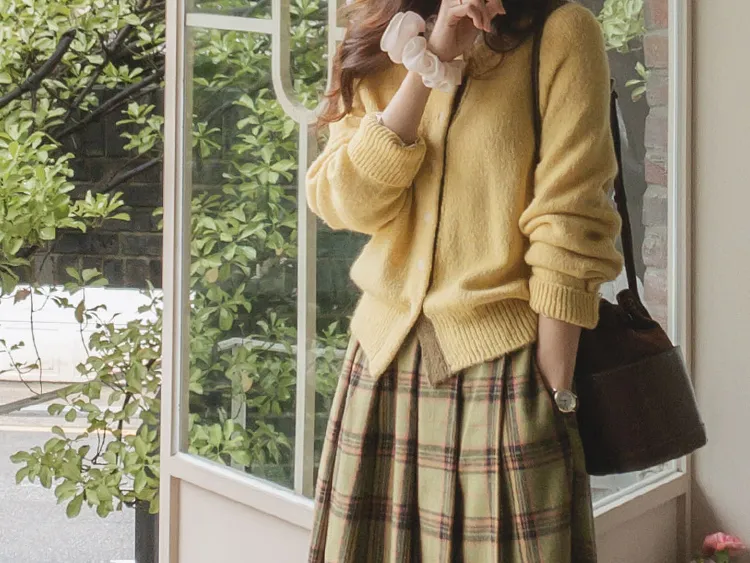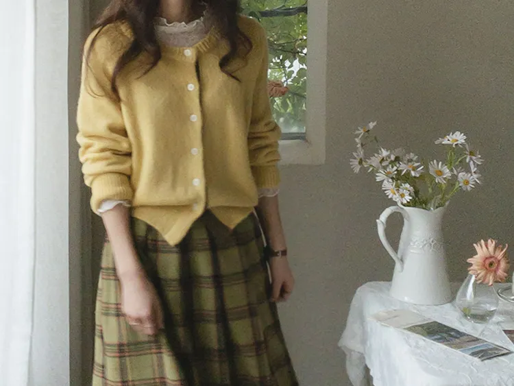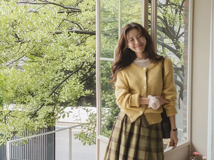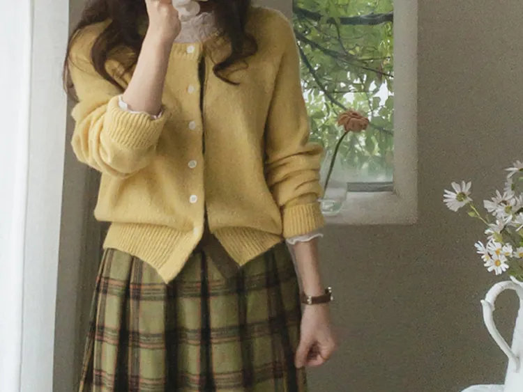 可愛鈕扣行配色設計柔軟彈性開衫