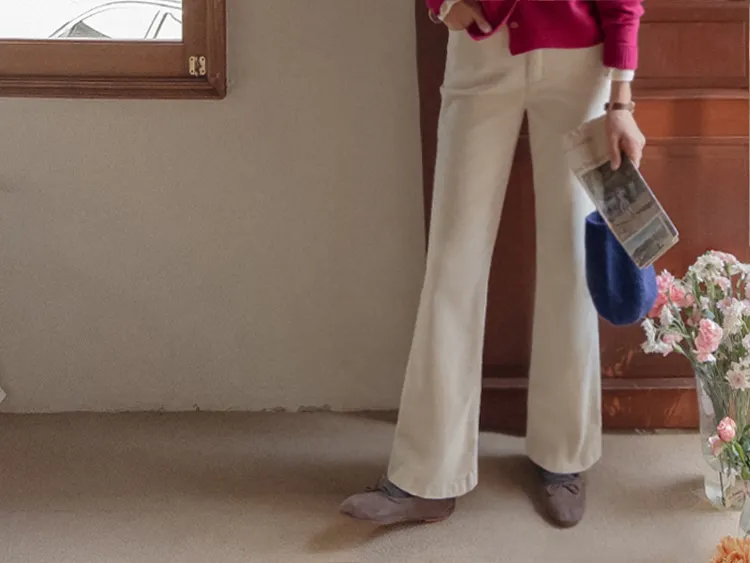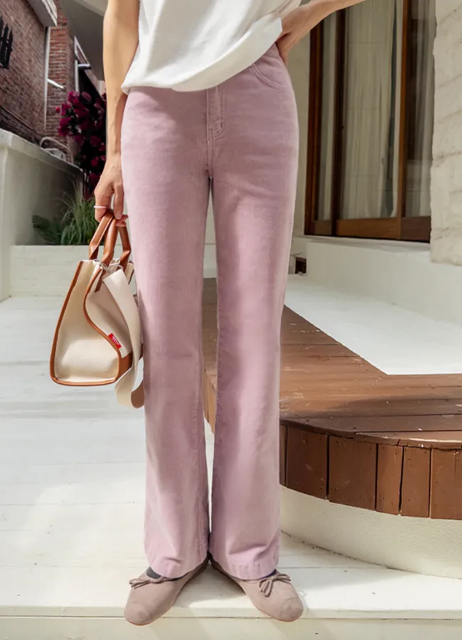 漂亮色感舒適隱藏鬆緊微靴剪裁修身燈芯絨休閒褲