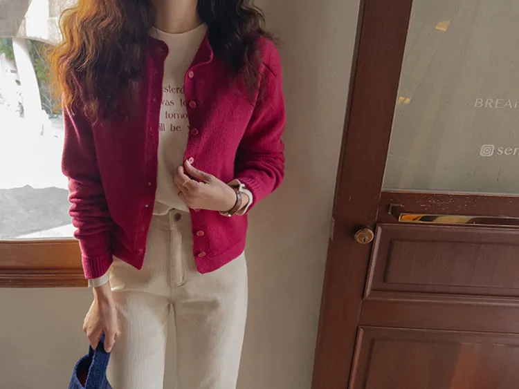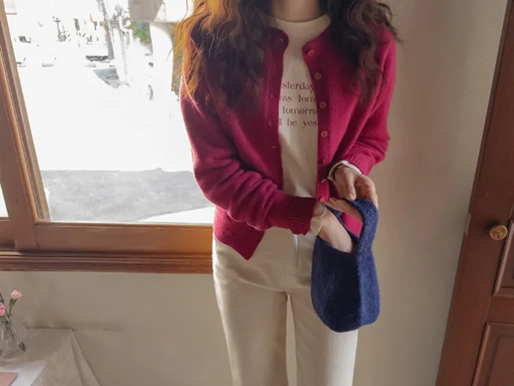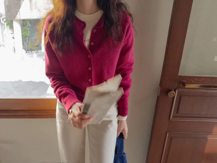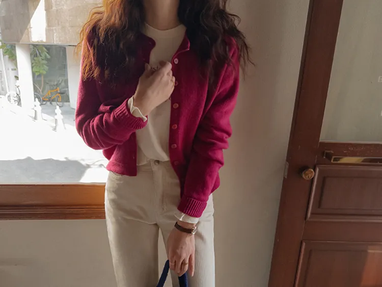 鮮豔色彩精緻輪廓連肩袖柔軟開衫