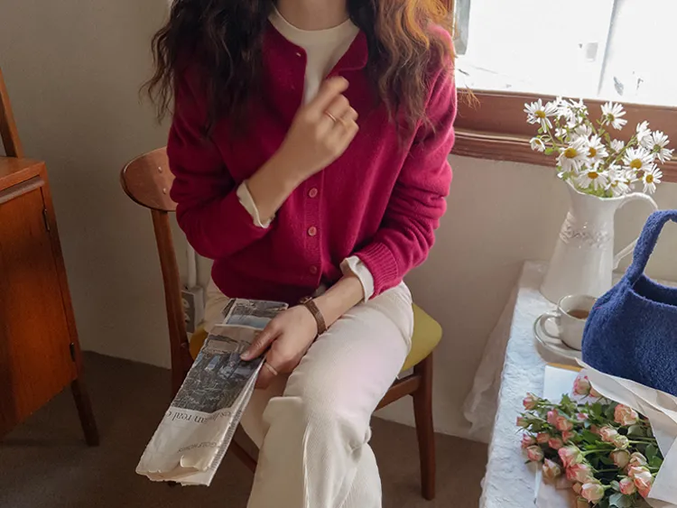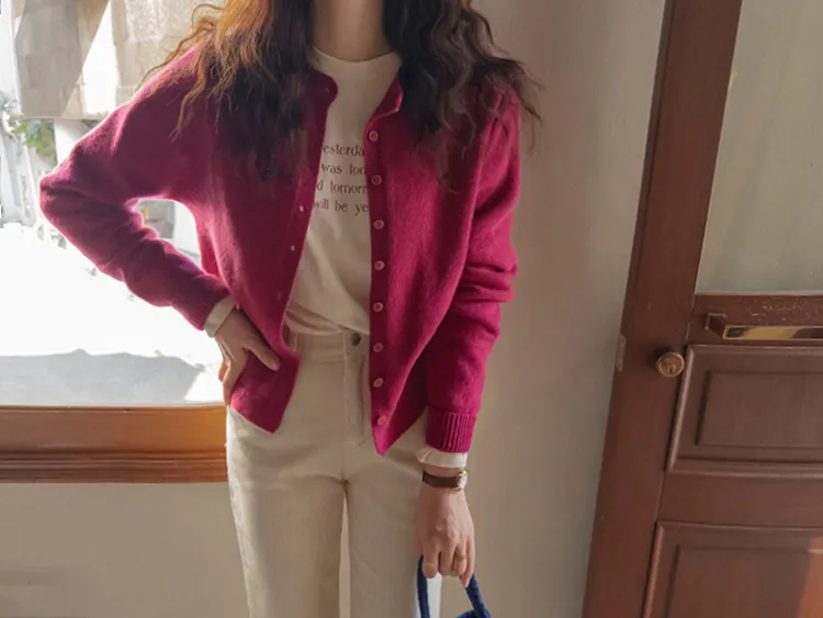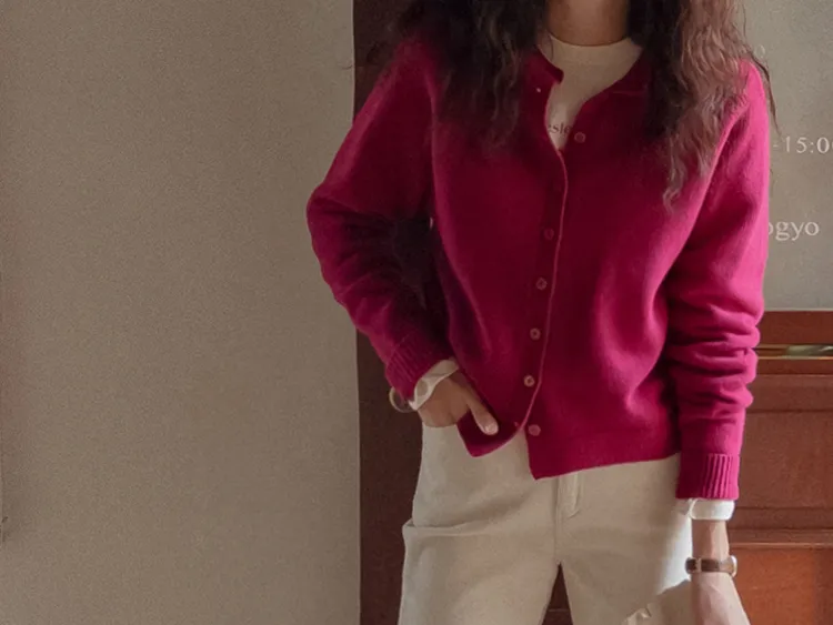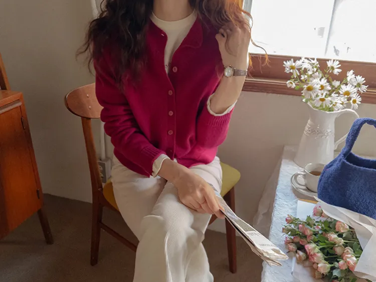 [100%細羊毛紗提高品質+保暖性!][基本設計帶有色彩點綴,充滿收藏價值的開衫][整件衣服縫製舒適~][作為跨季節開衫,可以每日穿搭]