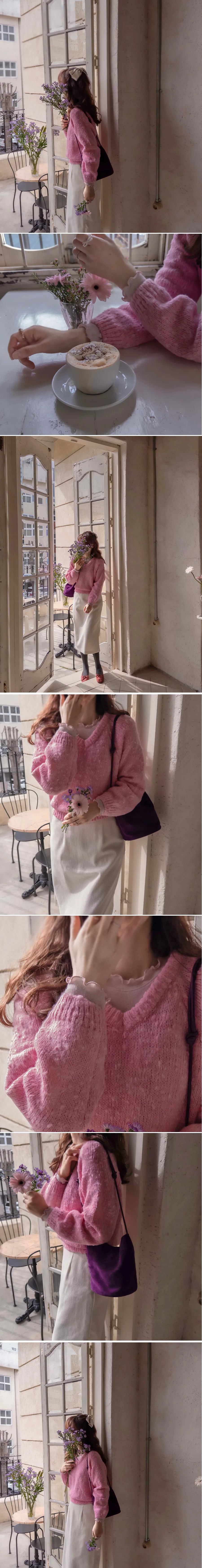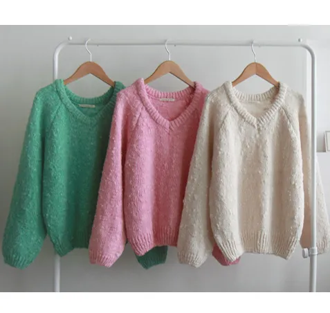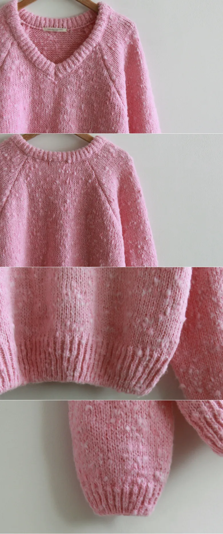 【時尚合身,柔軟彈性針織】【是一種像泡泡一樣有立體感的布料,好漂亮】【柔軟保暖,厚度適中,適合新季節日常穿著】【溫暖、柔軟的針織品,時尚V領