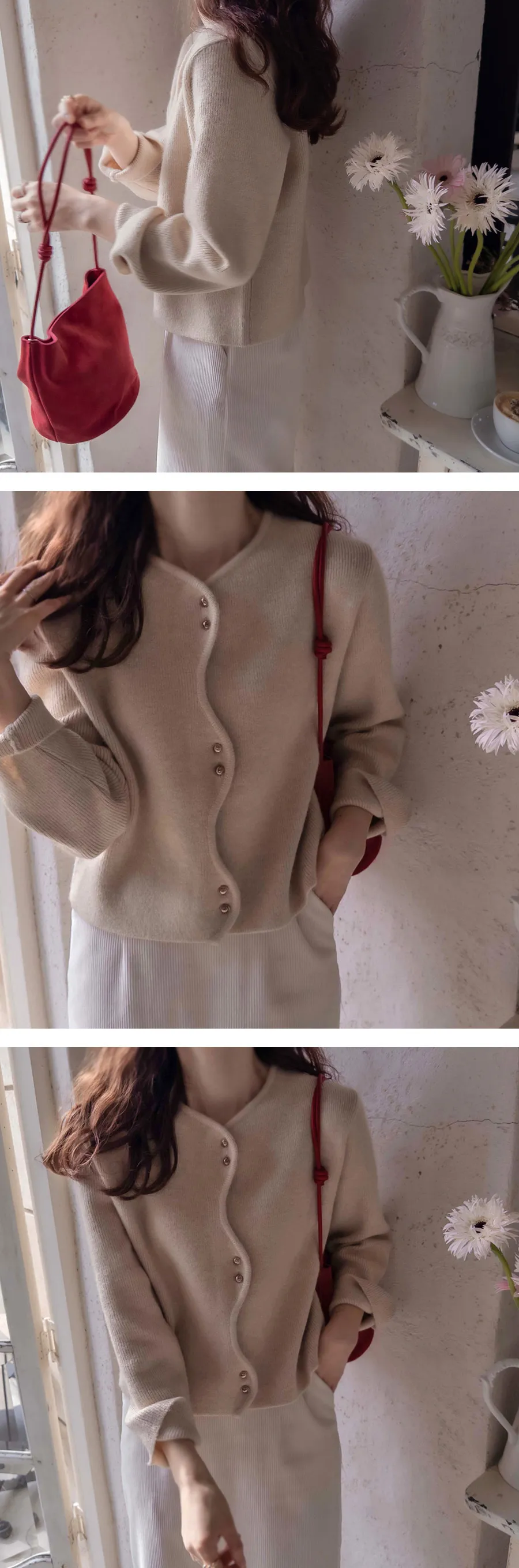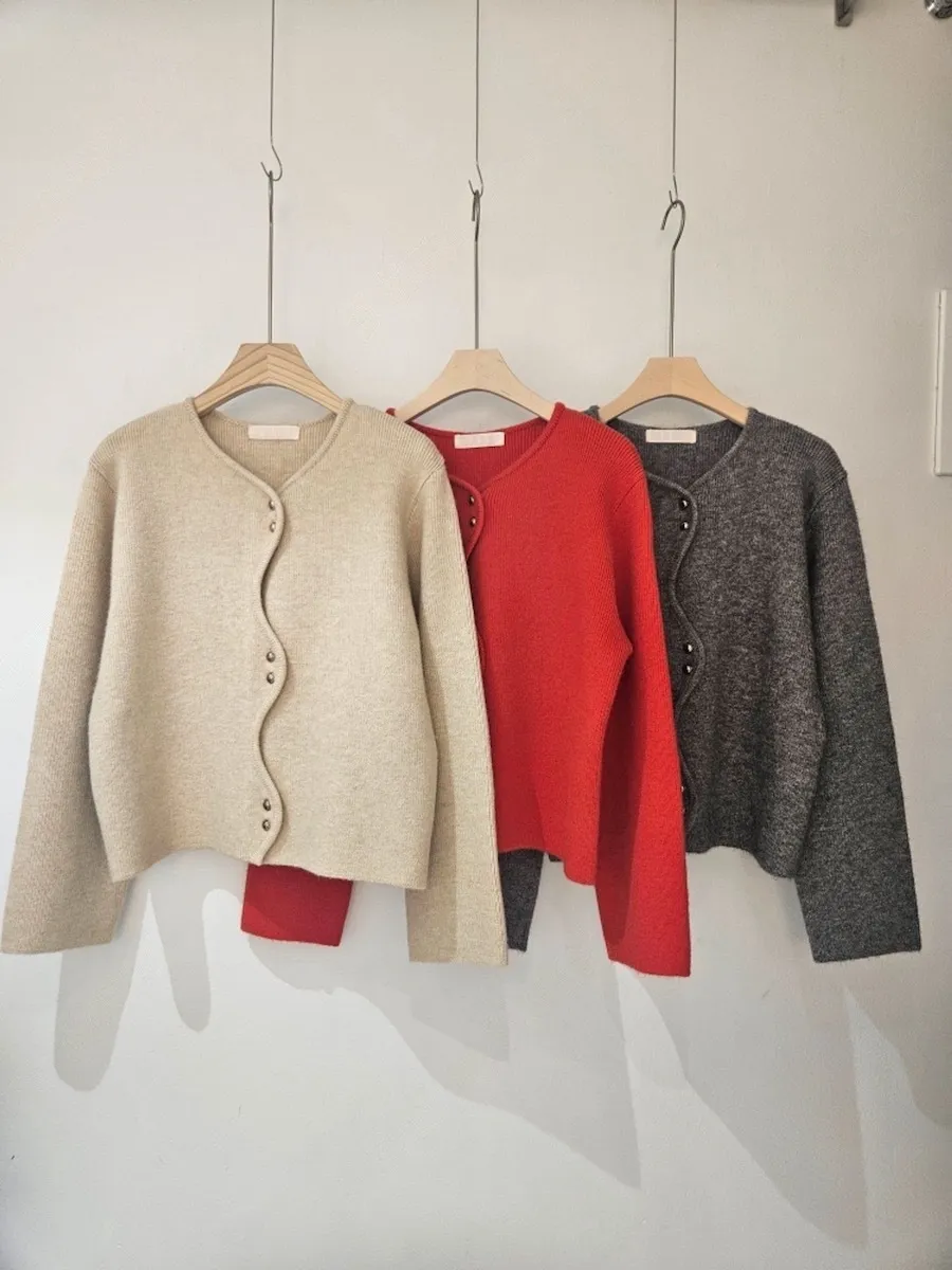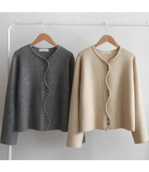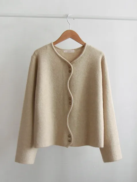 [品牌品質][手感柔軟的高品質開衫][充滿秋意的柔和色彩][可愛的波浪造型和鈕扣營造出奢華的氛圍][溫暖柔軟的觸感,非常適合日常穿著] [ 推薦作為很好