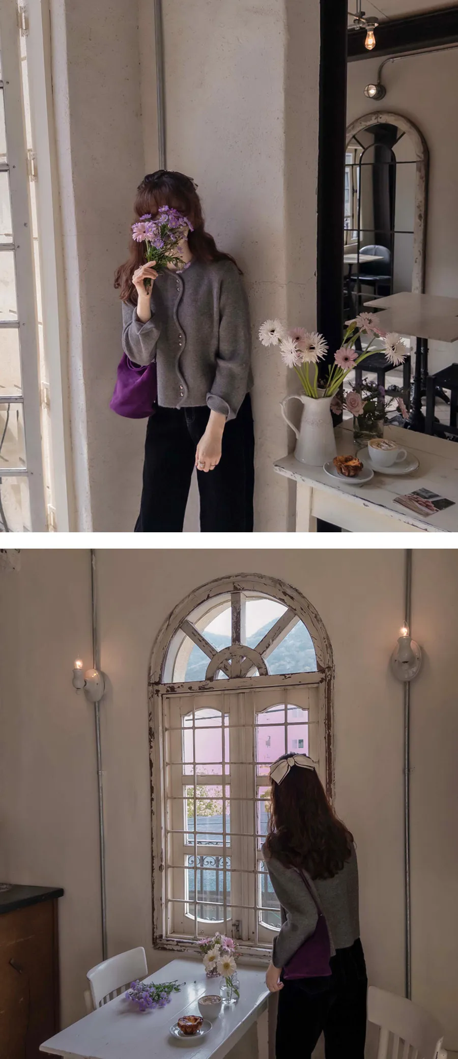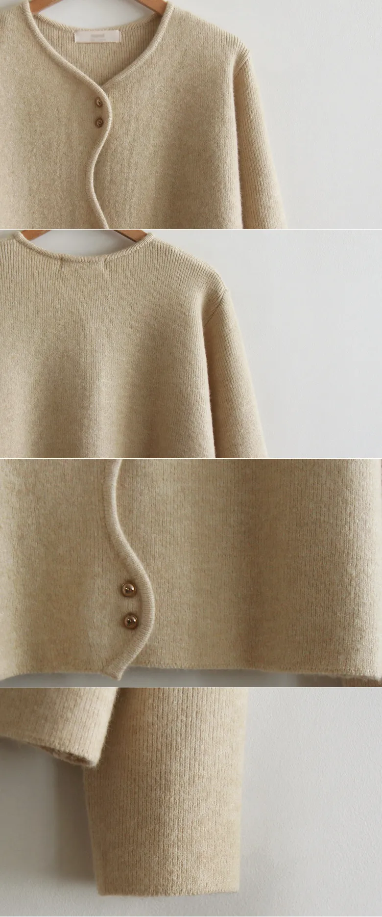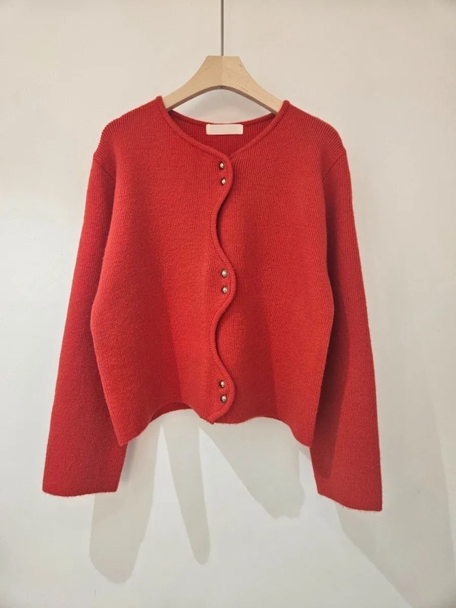 [品牌品質][手感柔軟的高品質開衫][充滿秋意的柔和色彩][可愛的波浪造型和鈕扣營造出奢華的氛圍][溫暖柔軟的觸感,非常適合日常穿著] [ 推薦作為很好