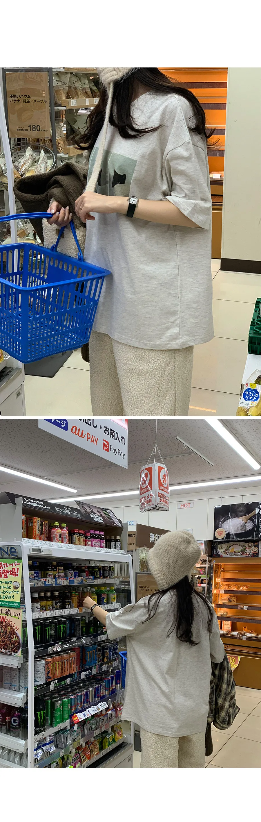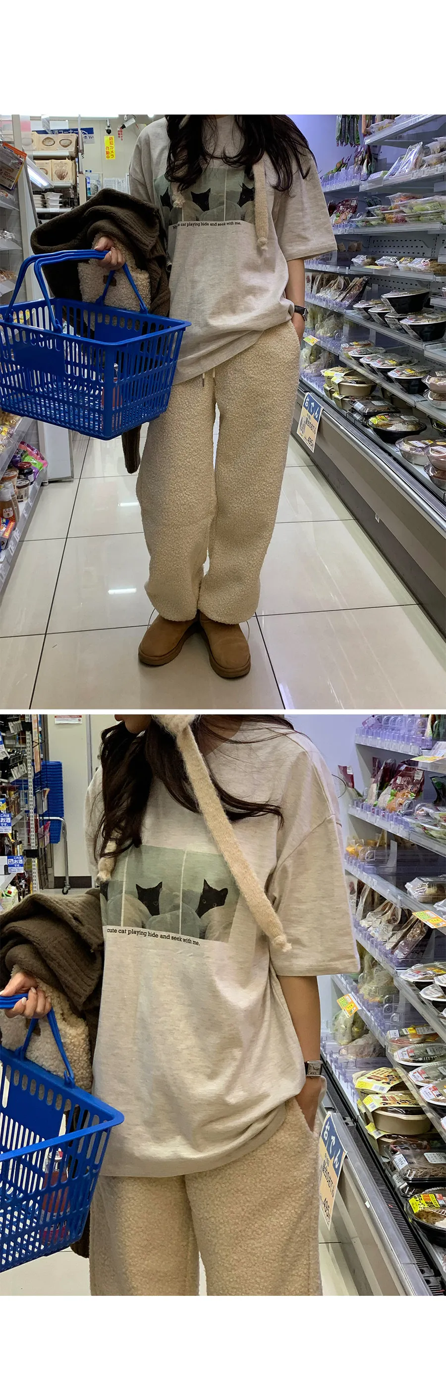 可愛貓咪印花寬鬆剪裁棉質上衣