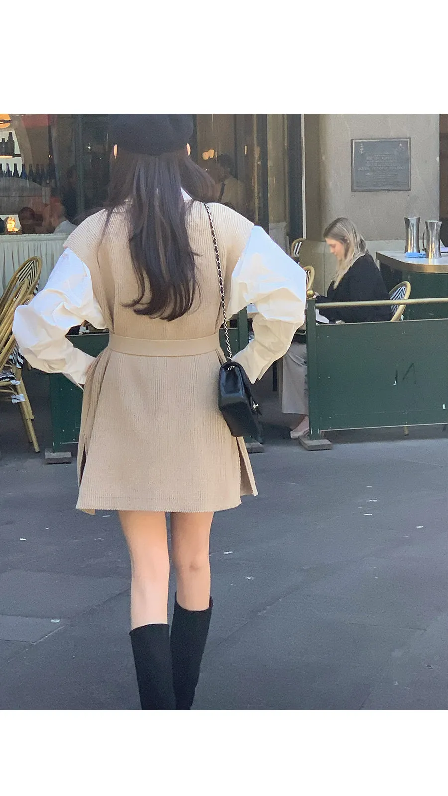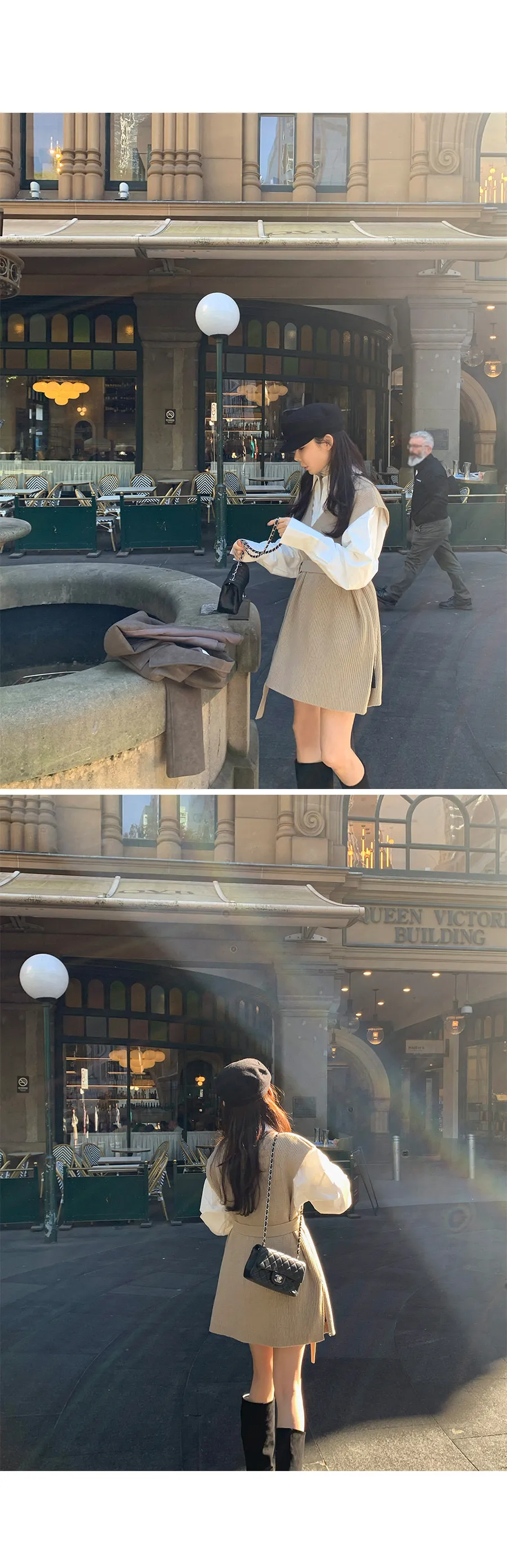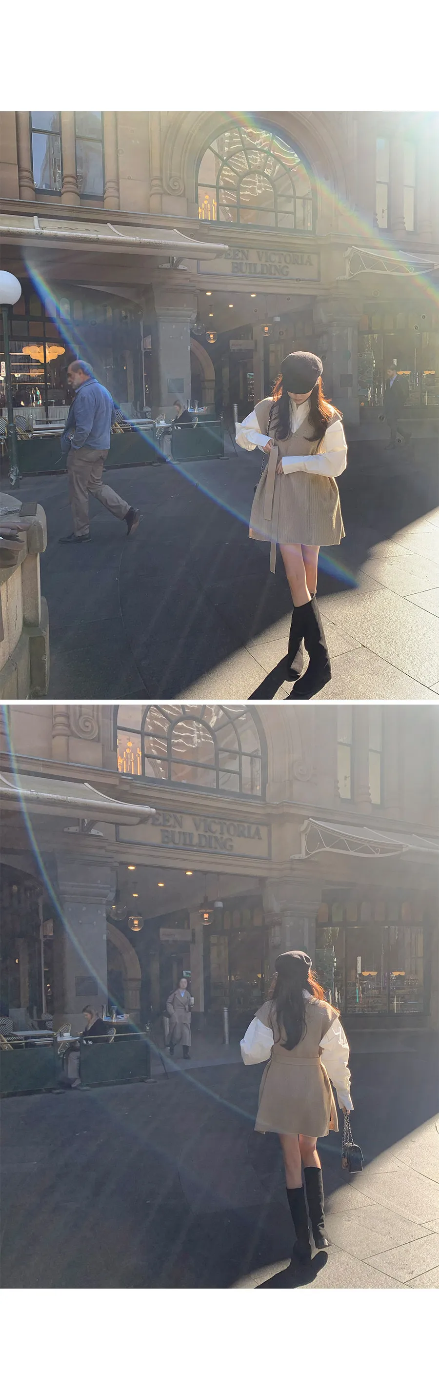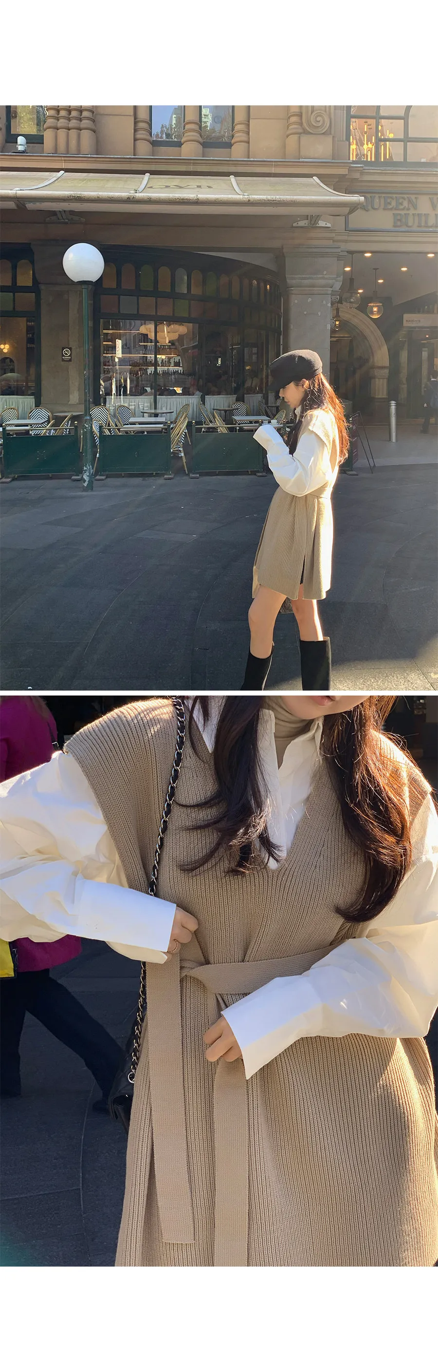 精緻氣息分層穿搭附綁帶背心針織連身裙