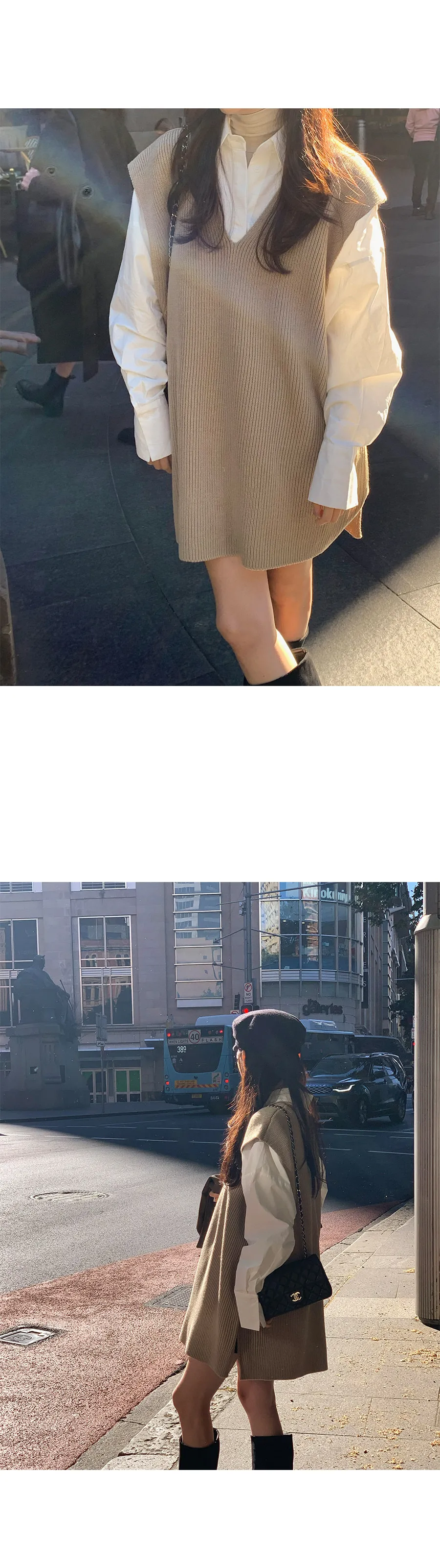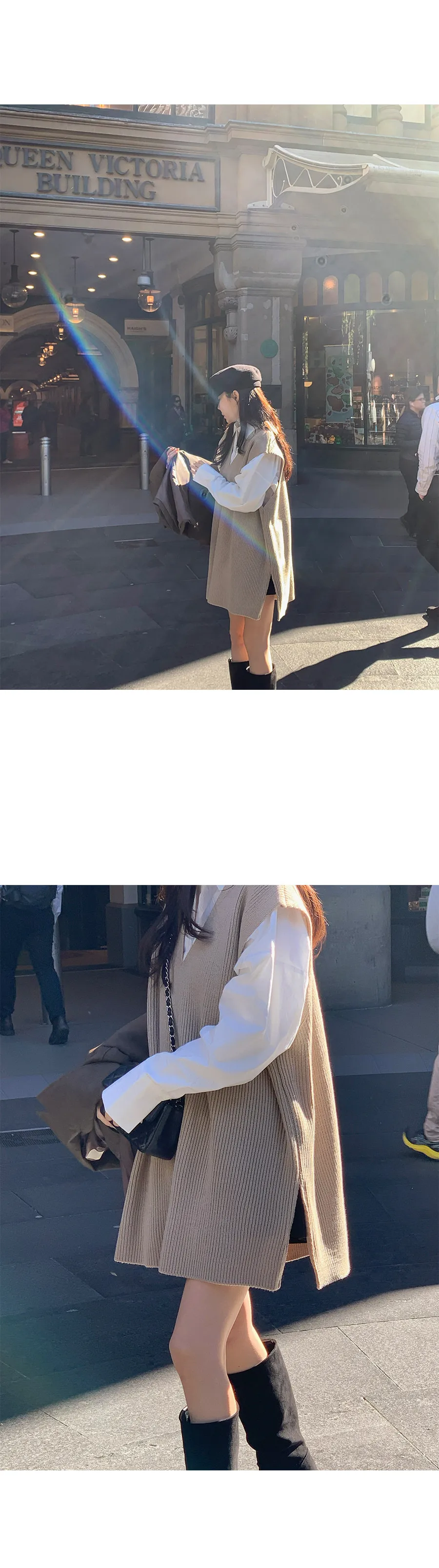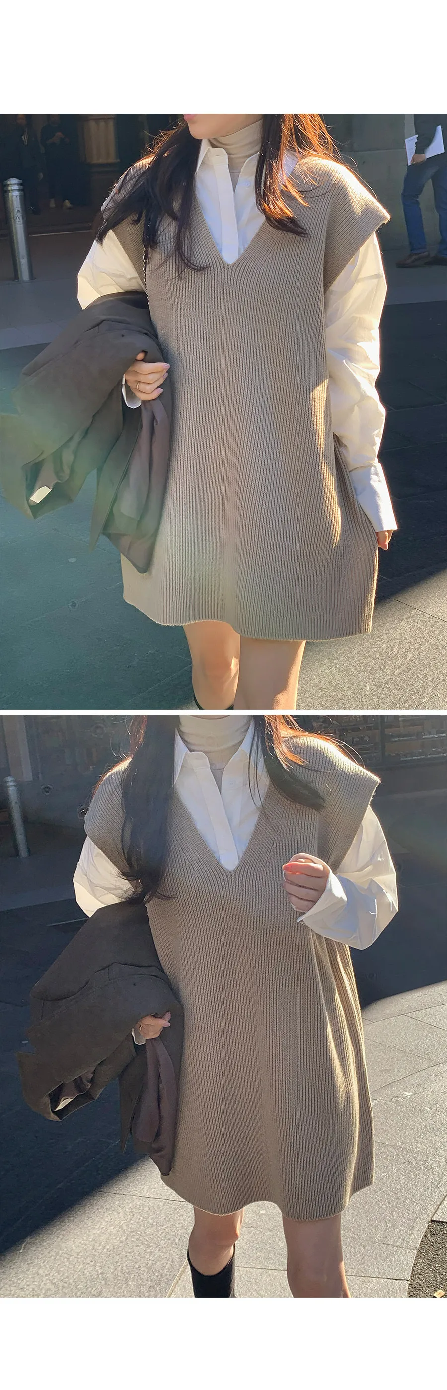 精緻氣息分層穿搭附綁帶背心針織連身裙
