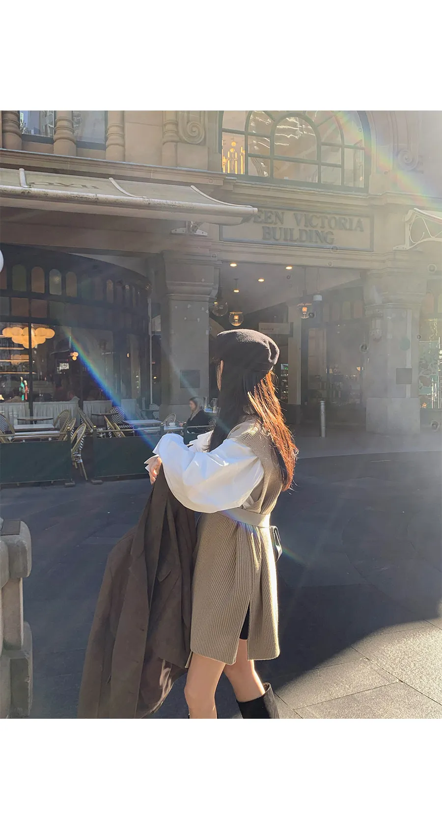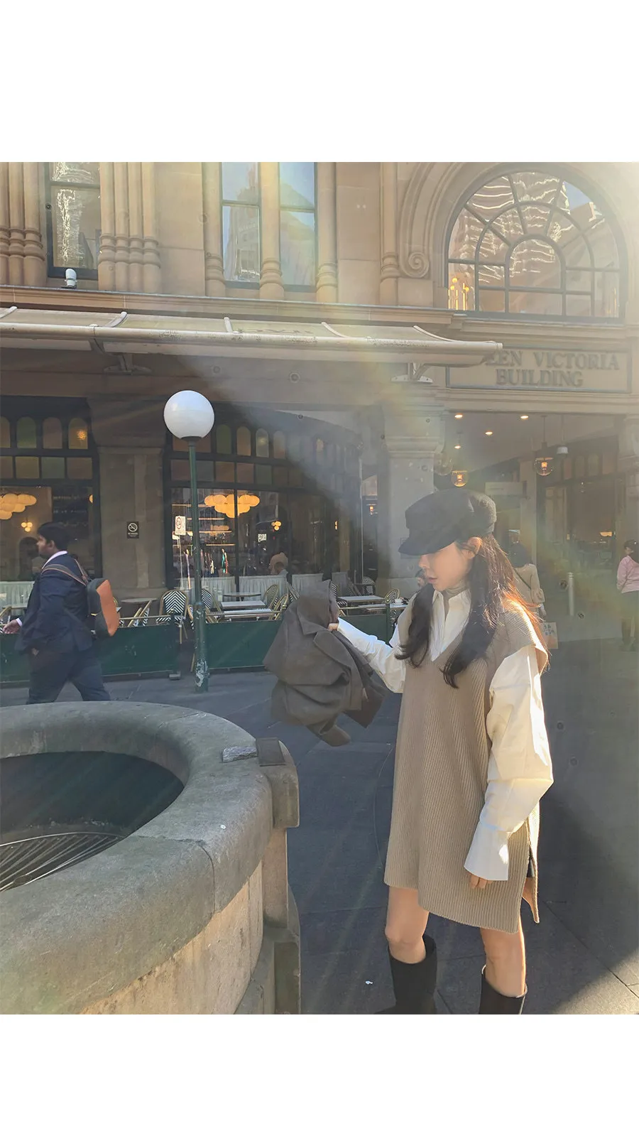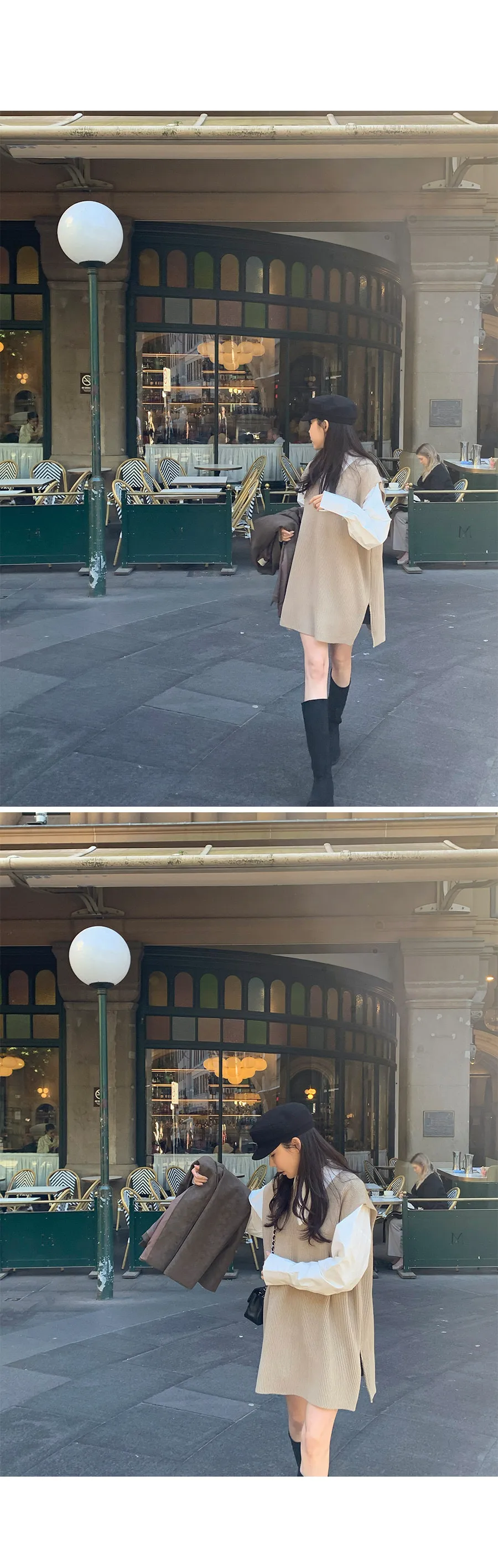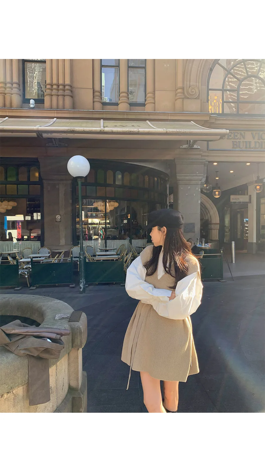 精緻氣息分層穿搭附綁帶背心針織連身裙