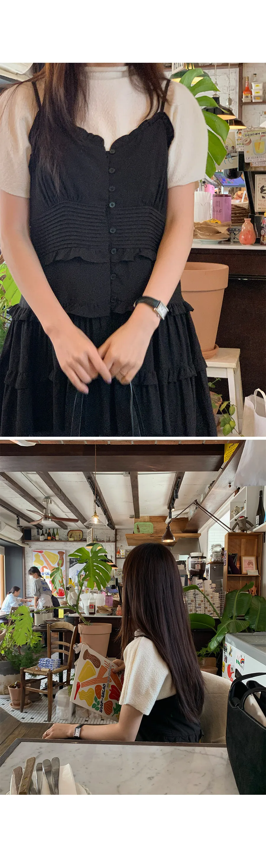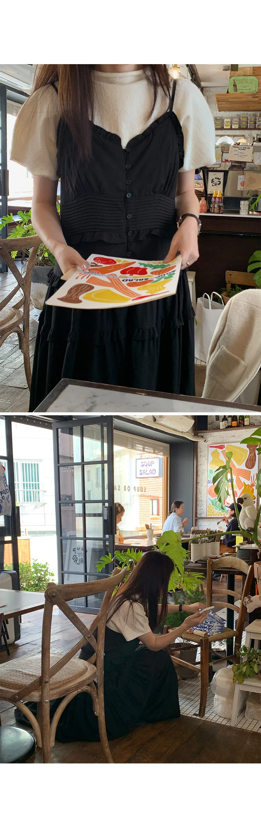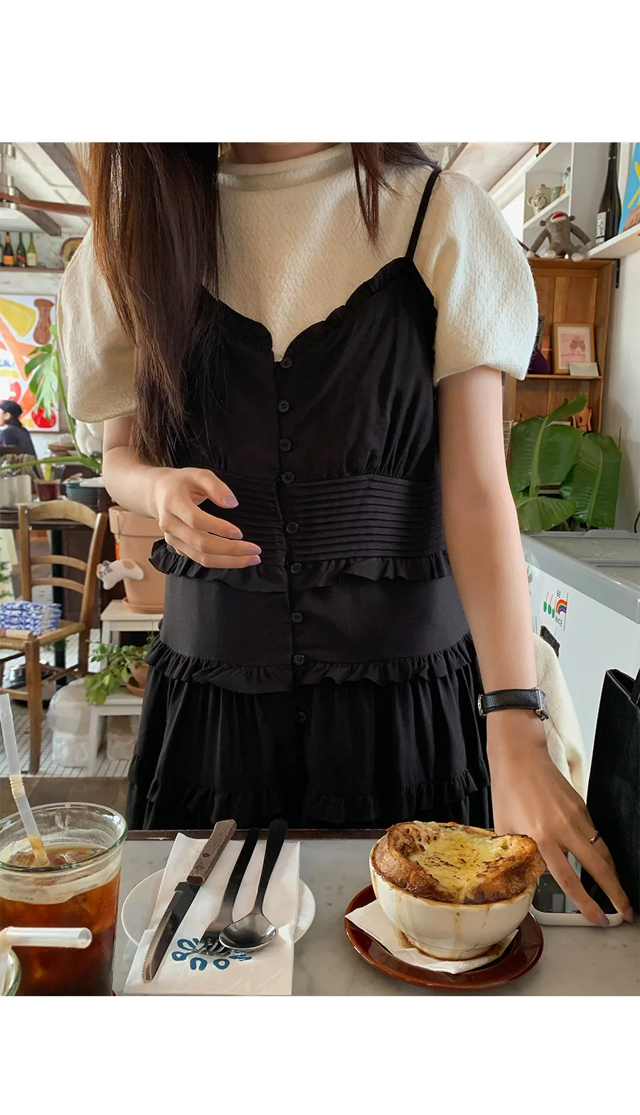 可愛疊穿摺邊針摺排扣層次感連身裙