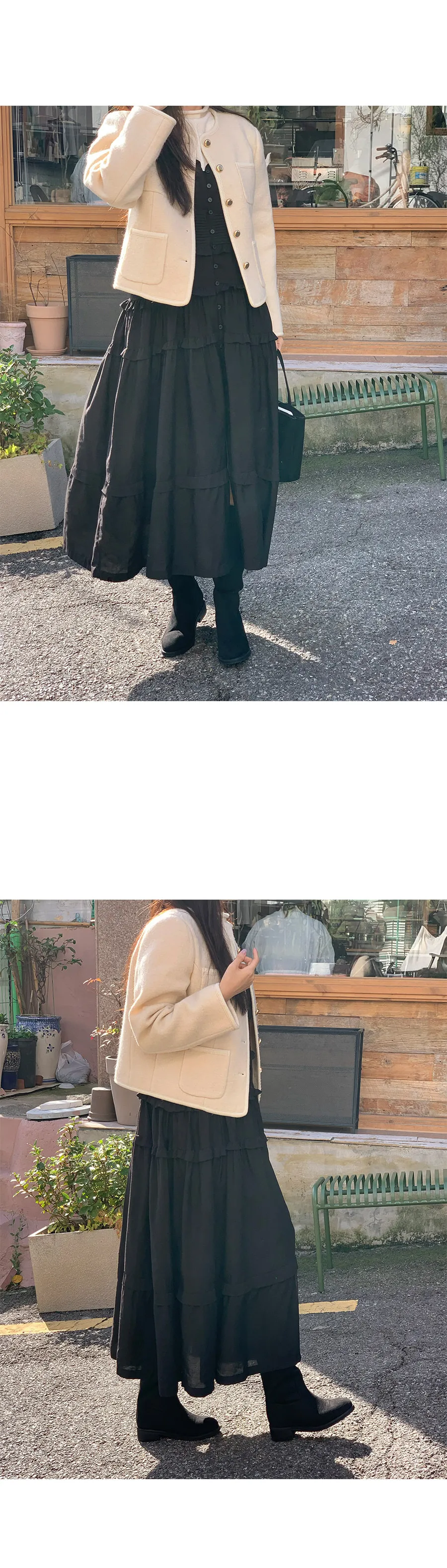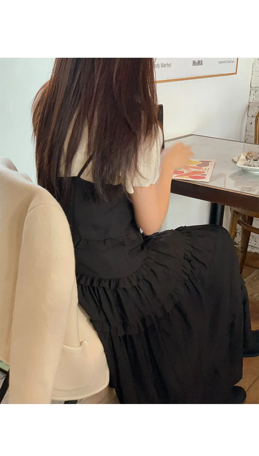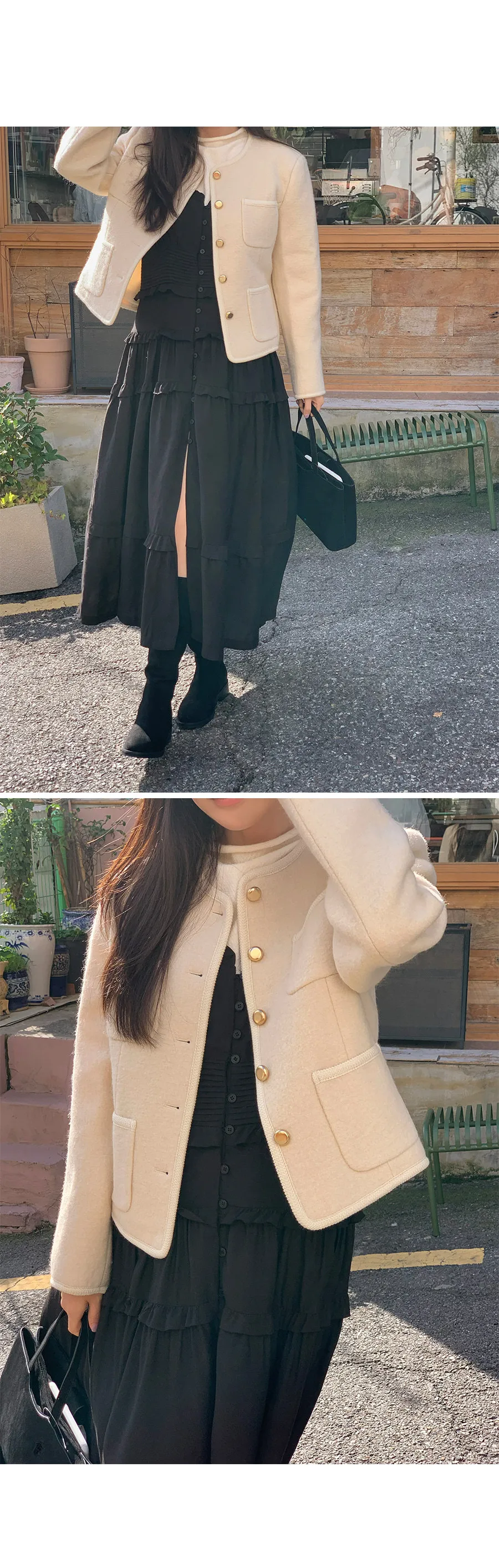 可愛疊穿摺邊針摺排扣層次感連身裙