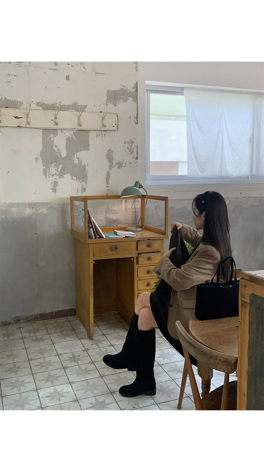 簡潔輪廓微妙人字紋標準設計羊毛外套