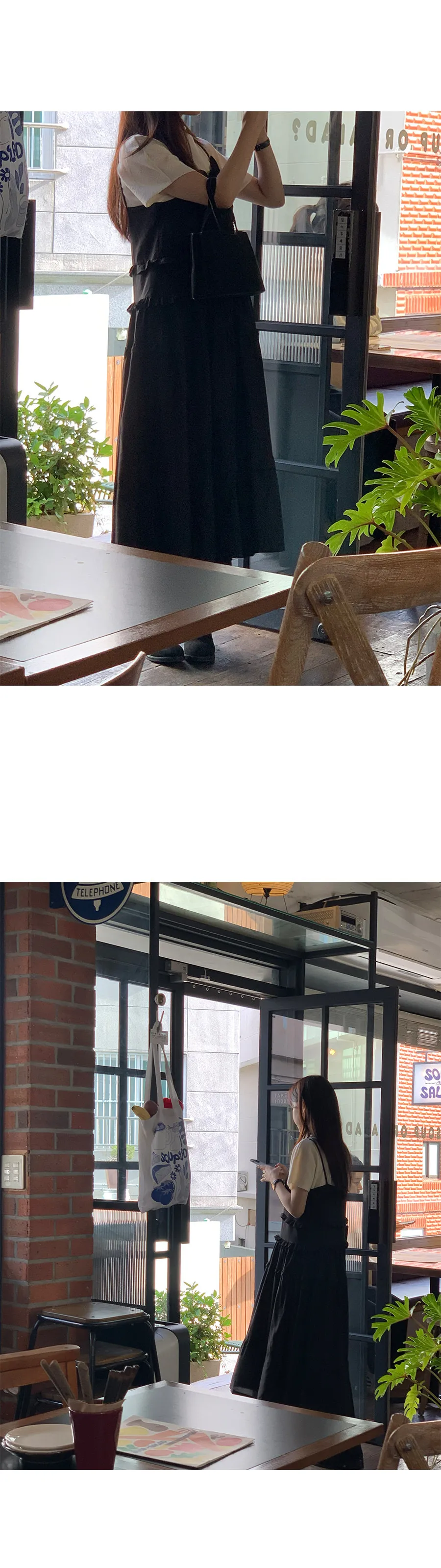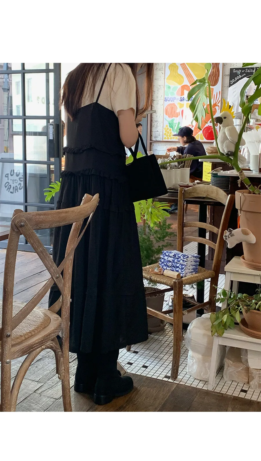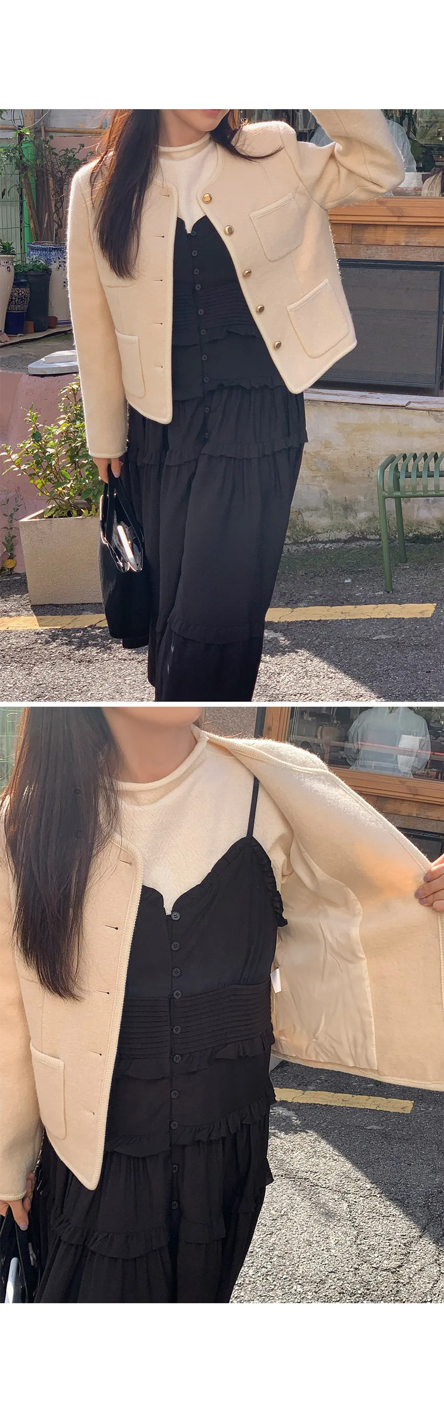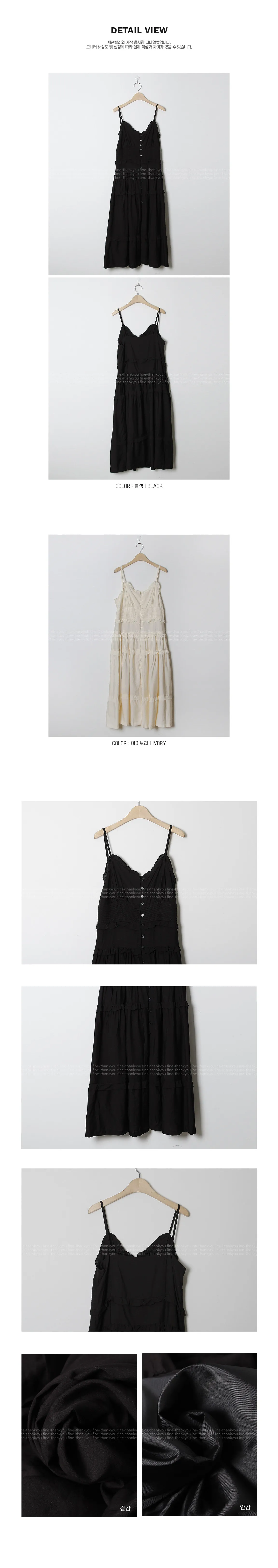 可愛疊穿摺邊針摺排扣層次感連身裙