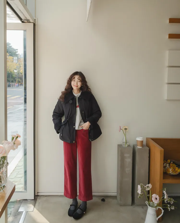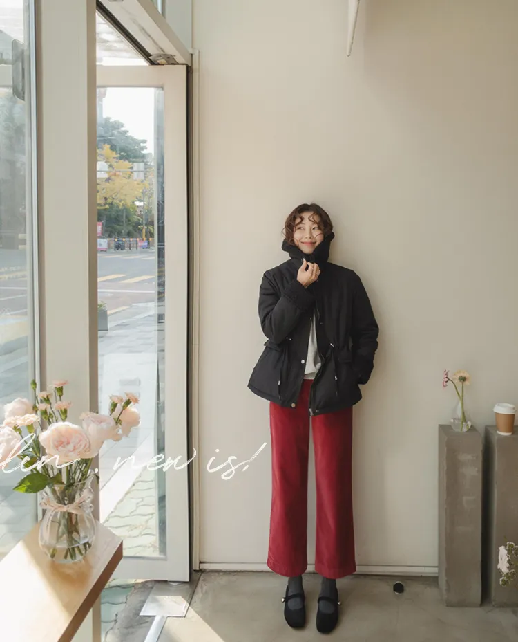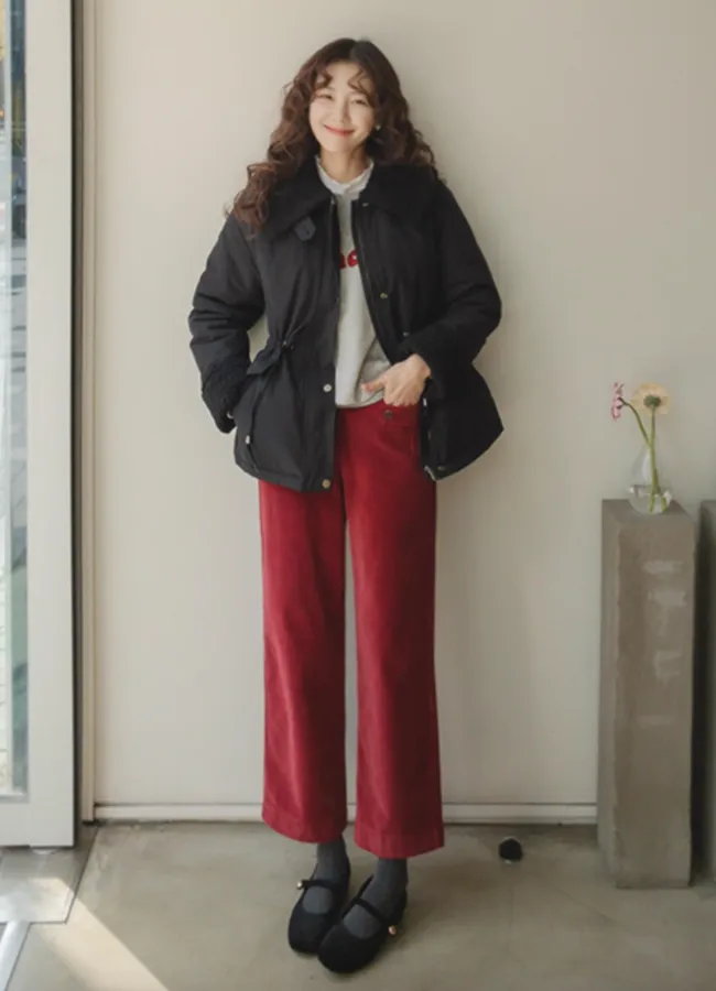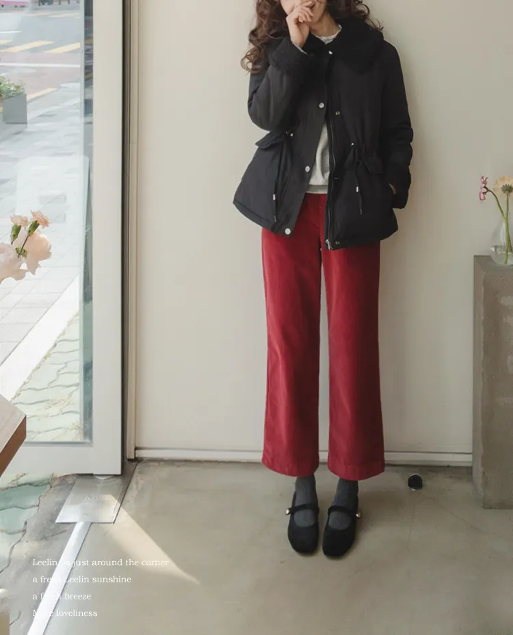 獨特鈕扣口袋設計半寬直筒燈芯絨休閒褲