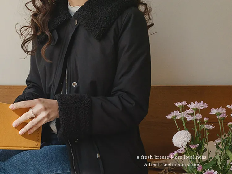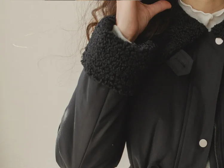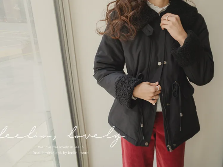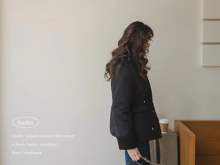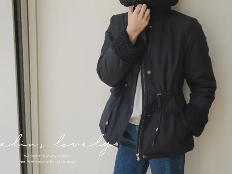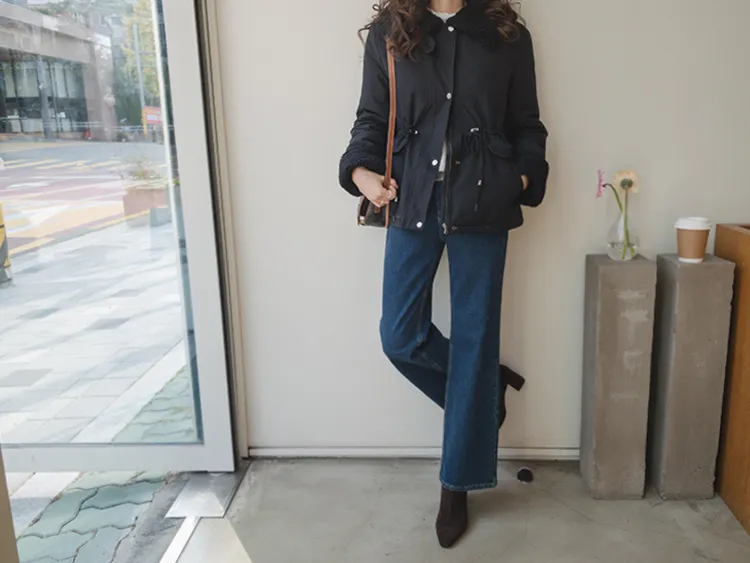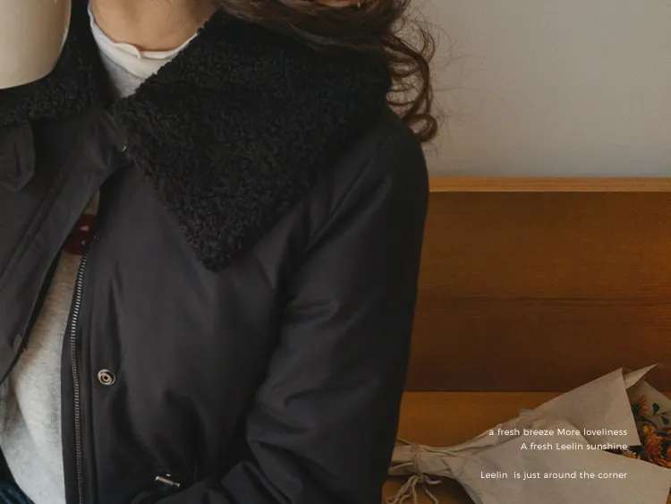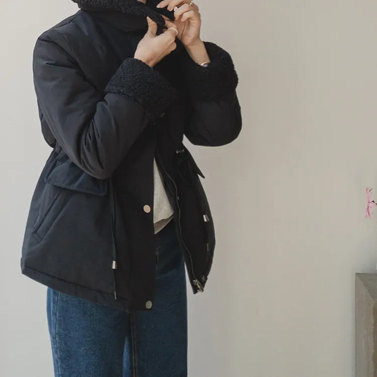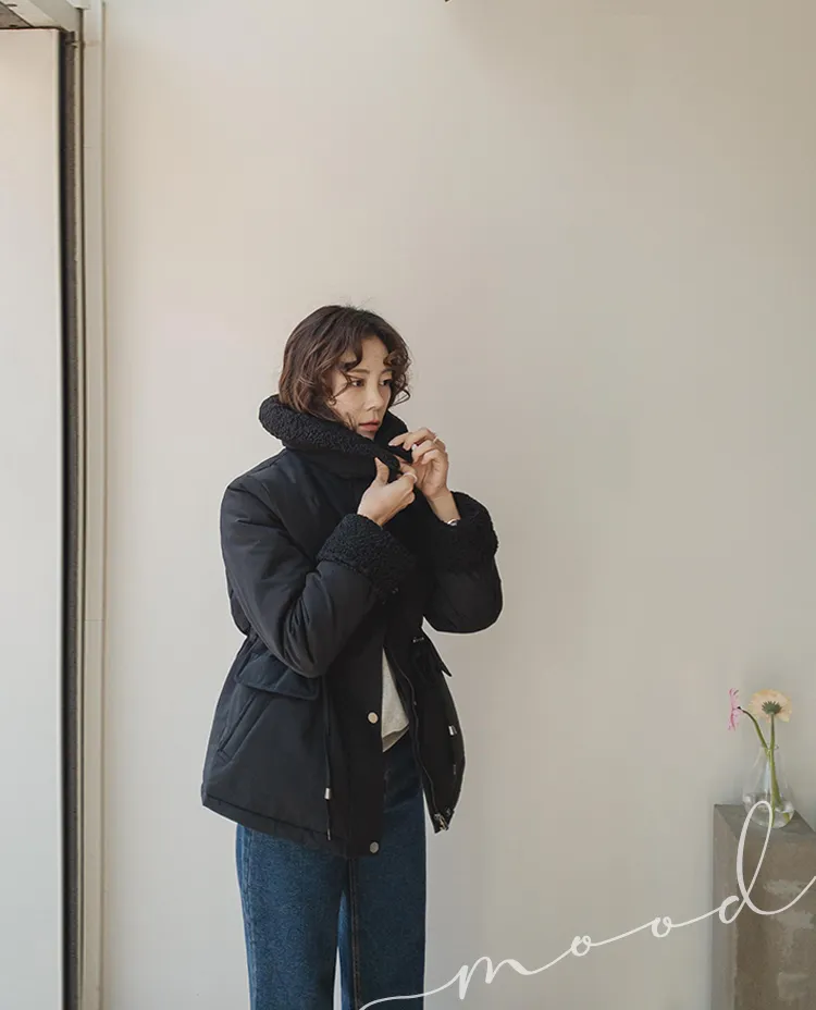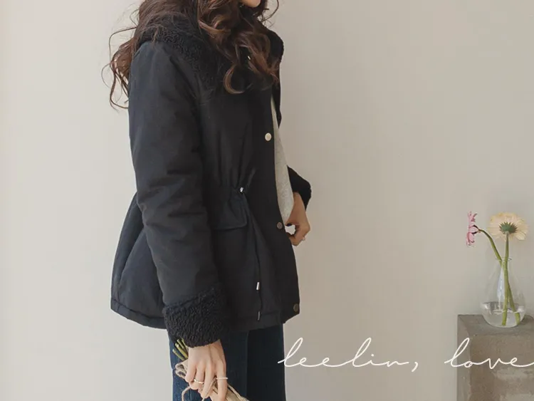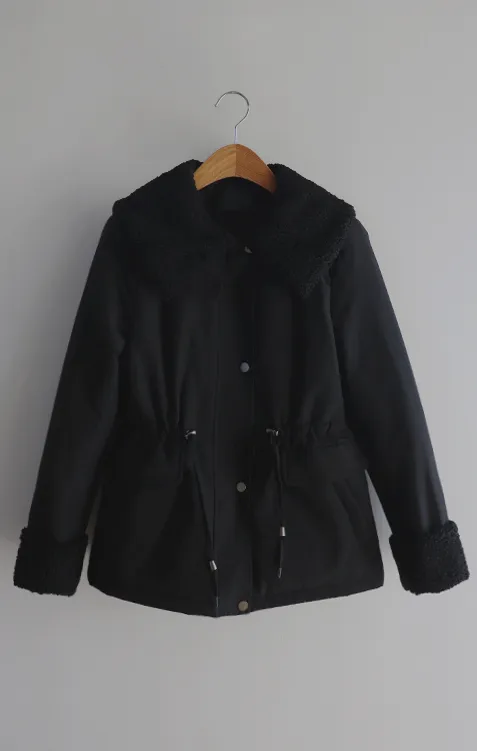 溫暖配色領口袖末毛絨抽繩收腰外套