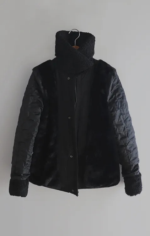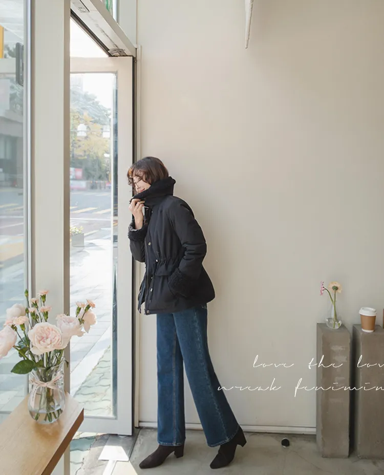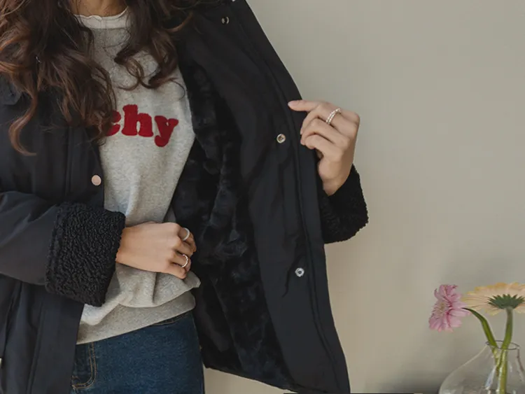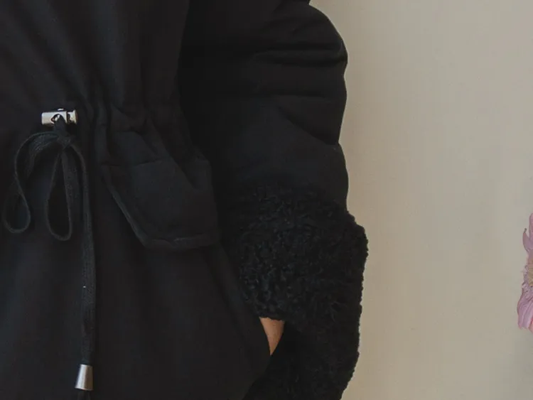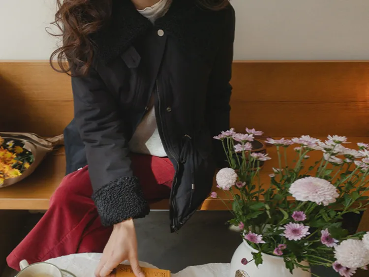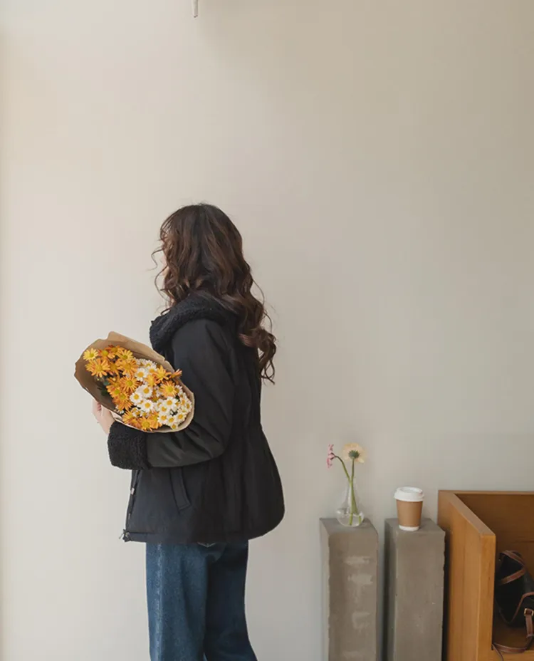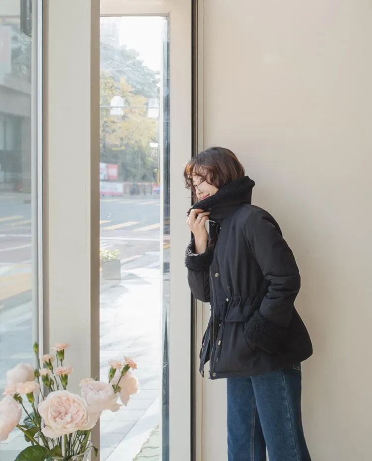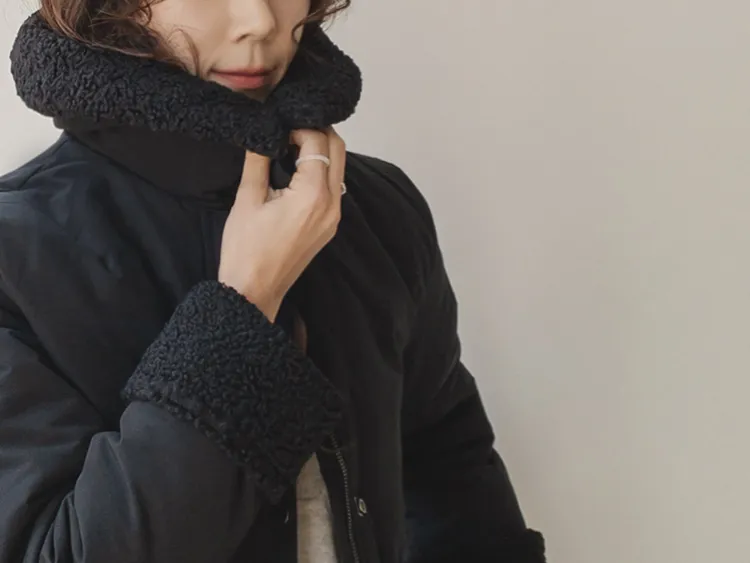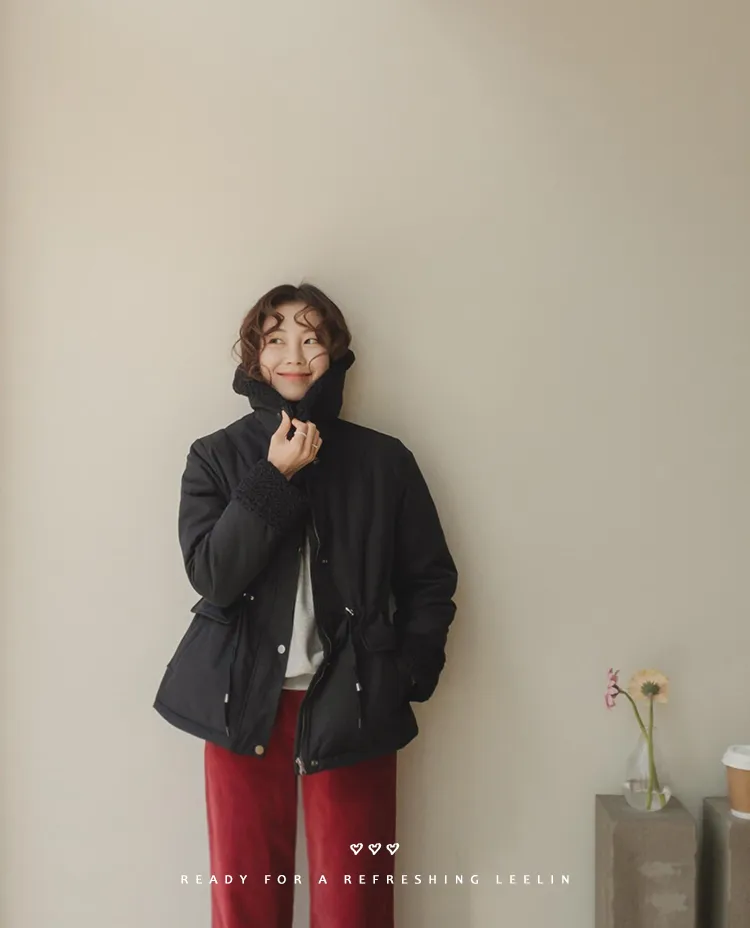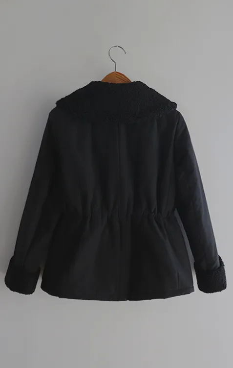 溫暖配色領口袖末毛絨抽繩收腰外套